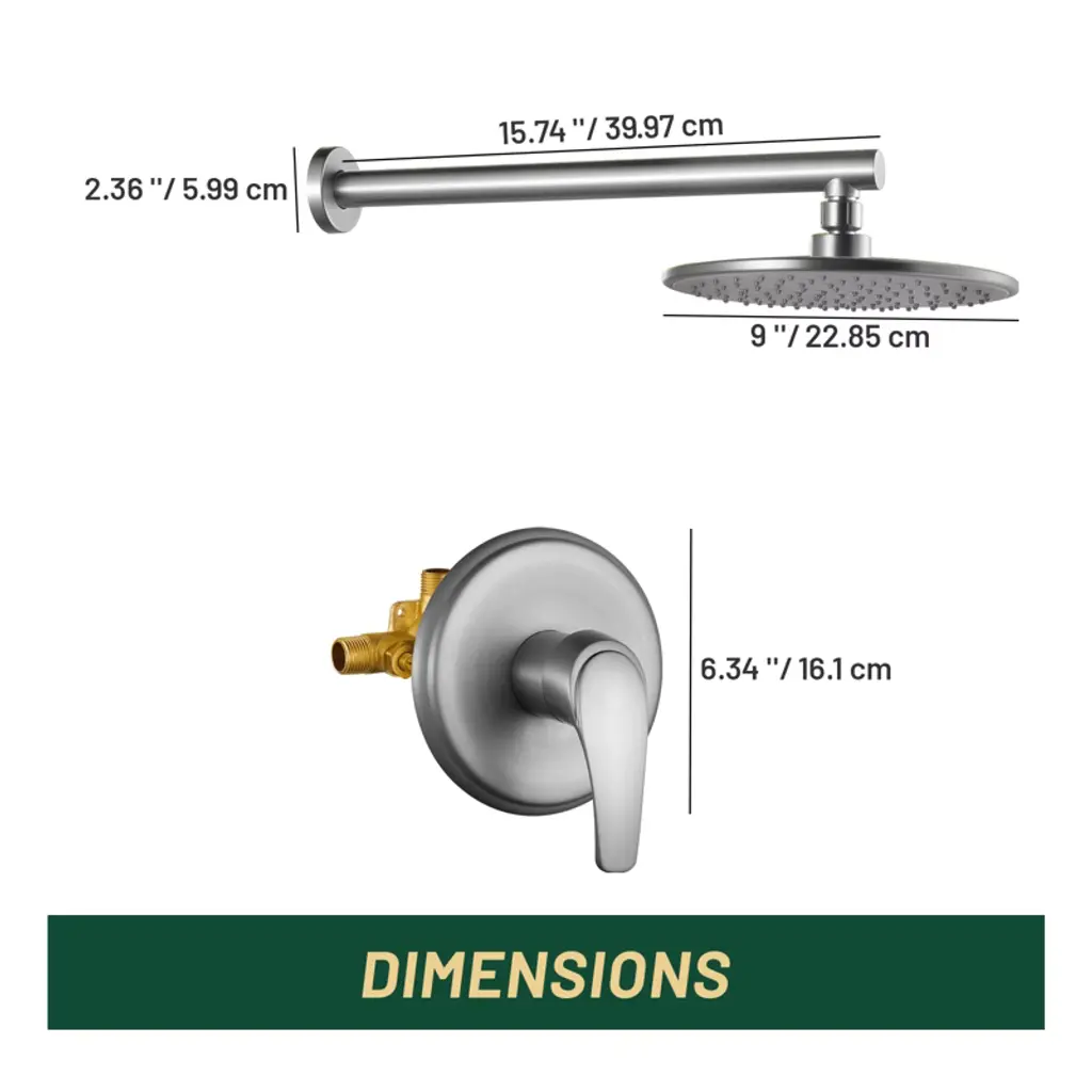 Cobbe Brushed Nickel 9-inch Round Rainfall Shower Faucet Single Handle Shower Faucet Accessory With 15.74-inch Shower Arm And Valve
