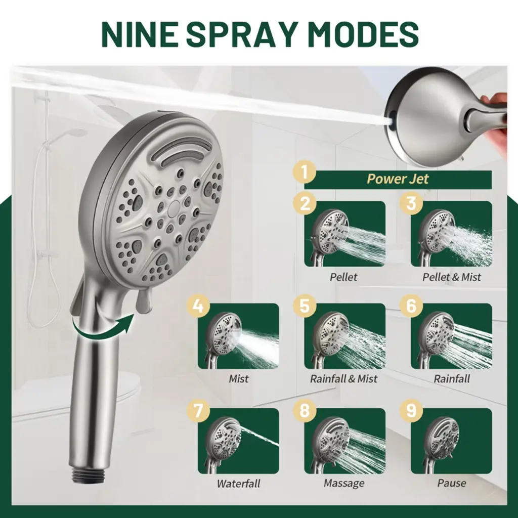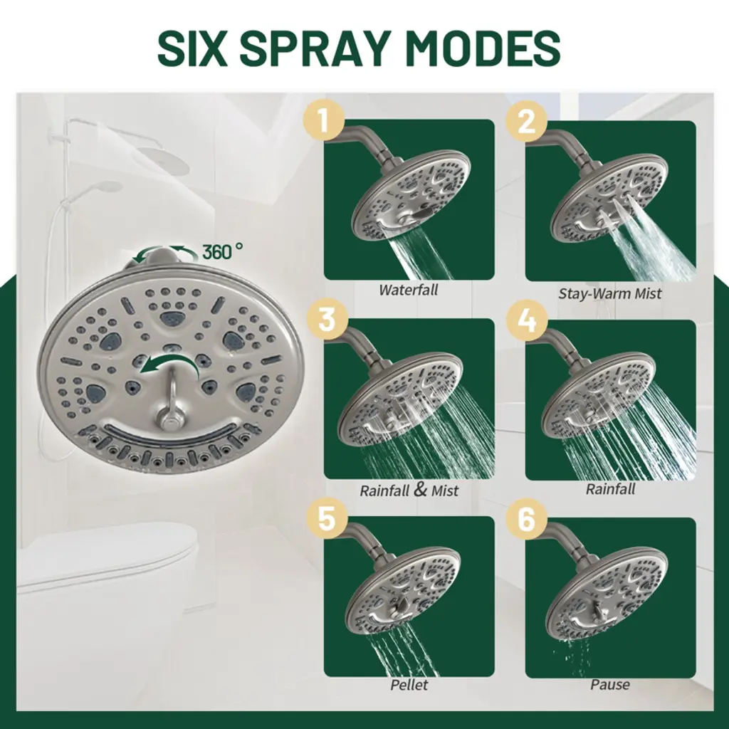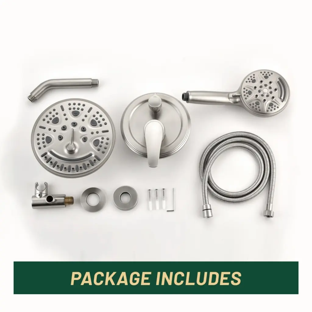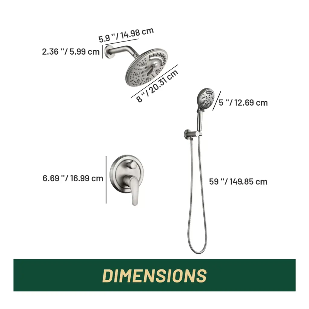 Cobbe Brushed Nickel Shower Faucet Combo Kit With 8-inch Round 6 Settings Shower Head And 9 Settings Handheld Shower Single Handle With 59-inch Hose