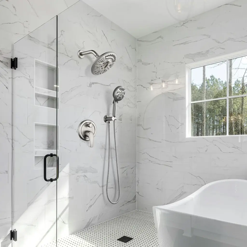 This shower system with modern minimalist design concept, smooth lines and stylish appearance can be easily adapted to a variety of bathroom styles, bringing you a refreshing bathing experience, while adding a sense of elegance and texture to your bathroom space.