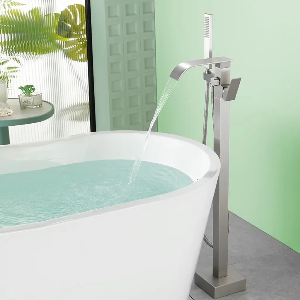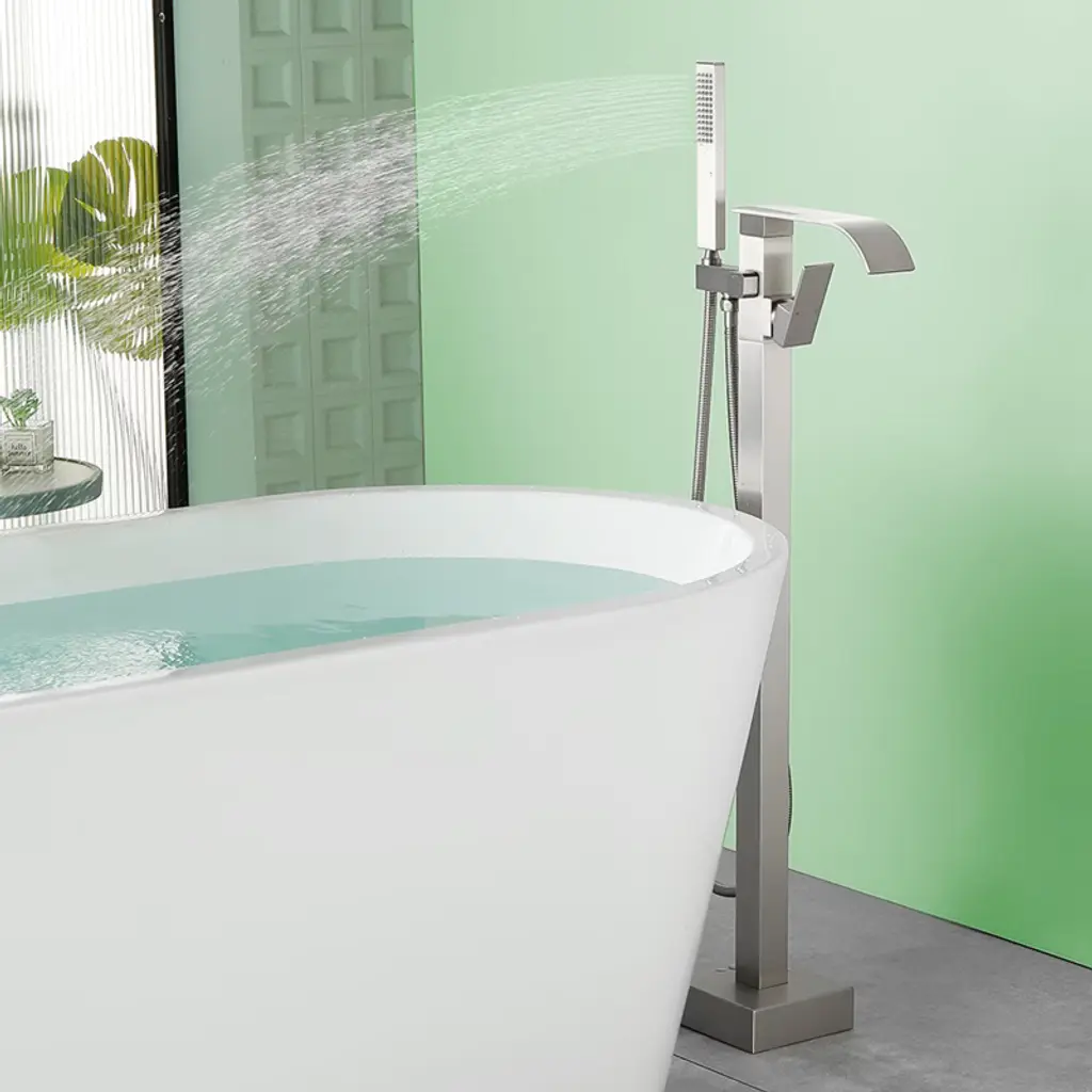 Cobbe Floor Standing Tub Faucet With Swivel Spout Handheld Shower Shower And 59-inch Hose Tub Filler Single Handle Brushed Nickel