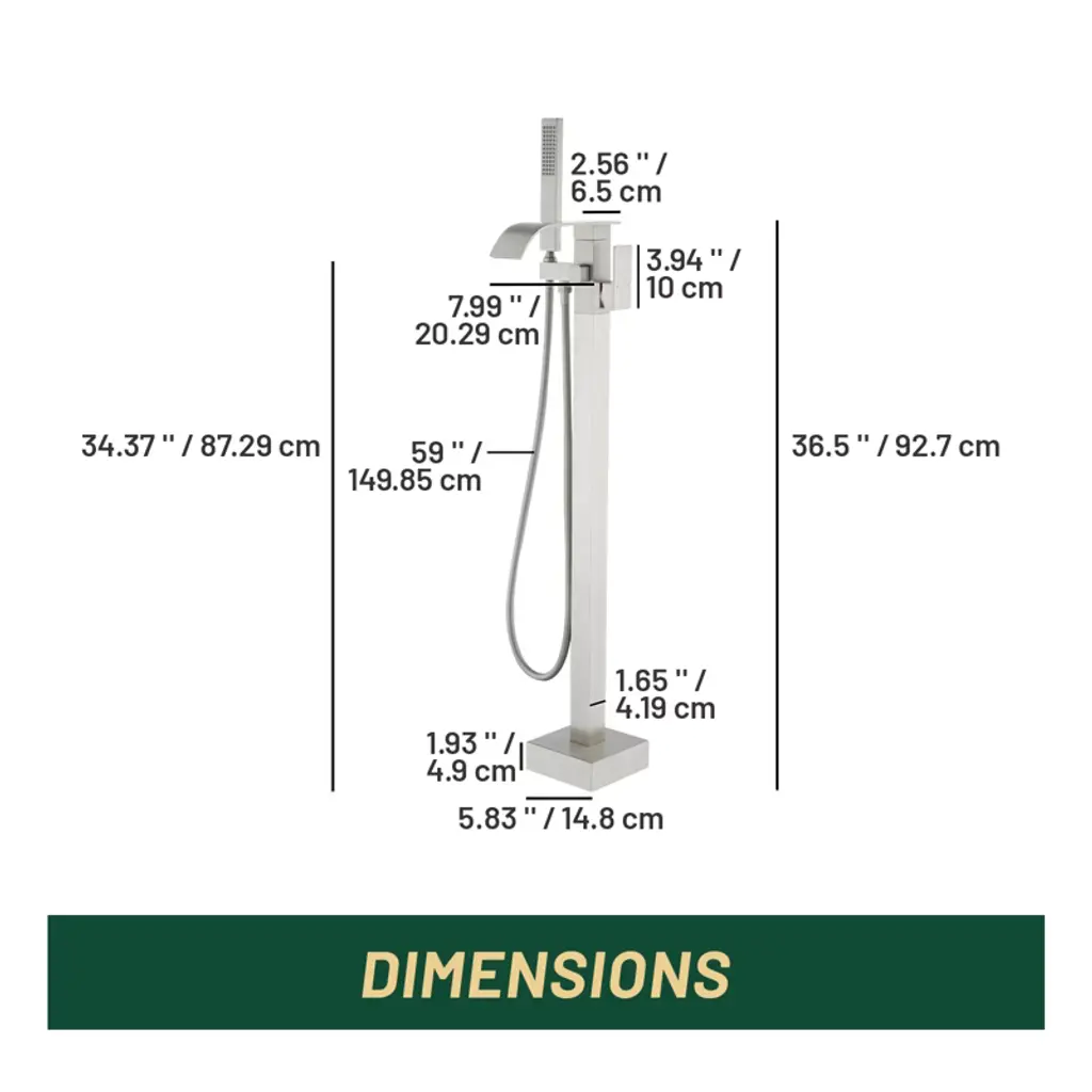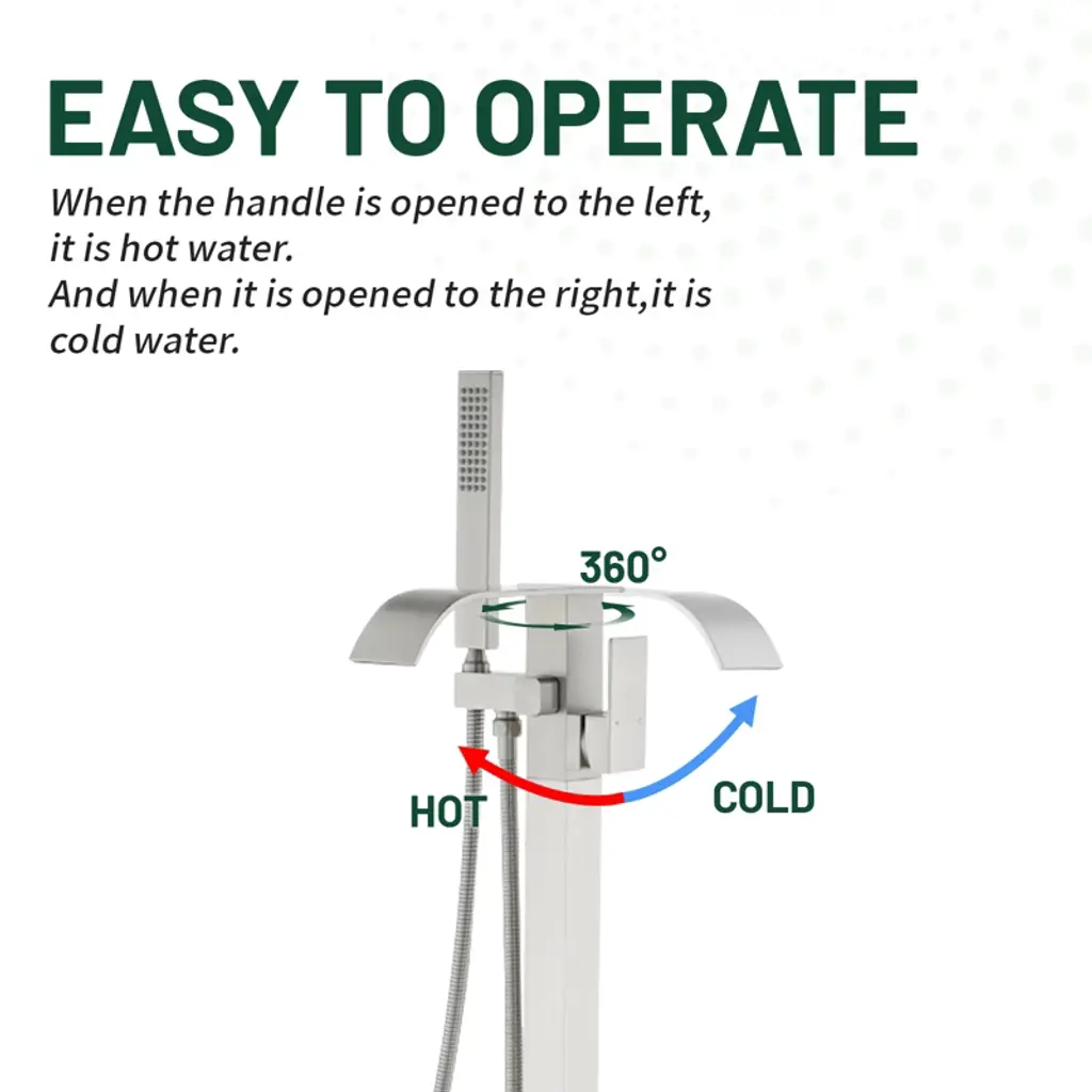This floor standing bathtub faucet is mainly made of high quality brass and stainless steel, which is beautiful, durable and reliable to extend the product life.It also has an elegant and stylish design that matches perfectly with most other fixtures and décor, allowing you to personalize your space.