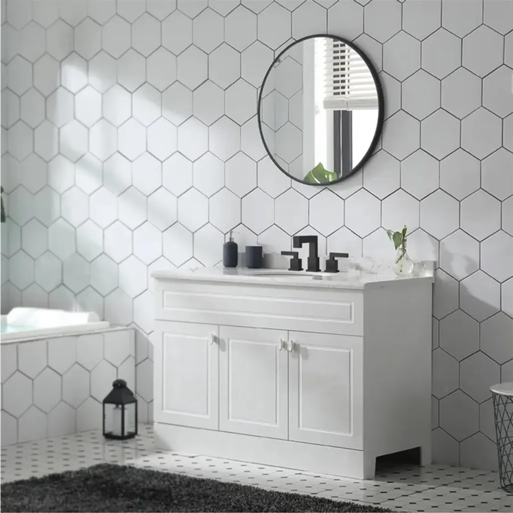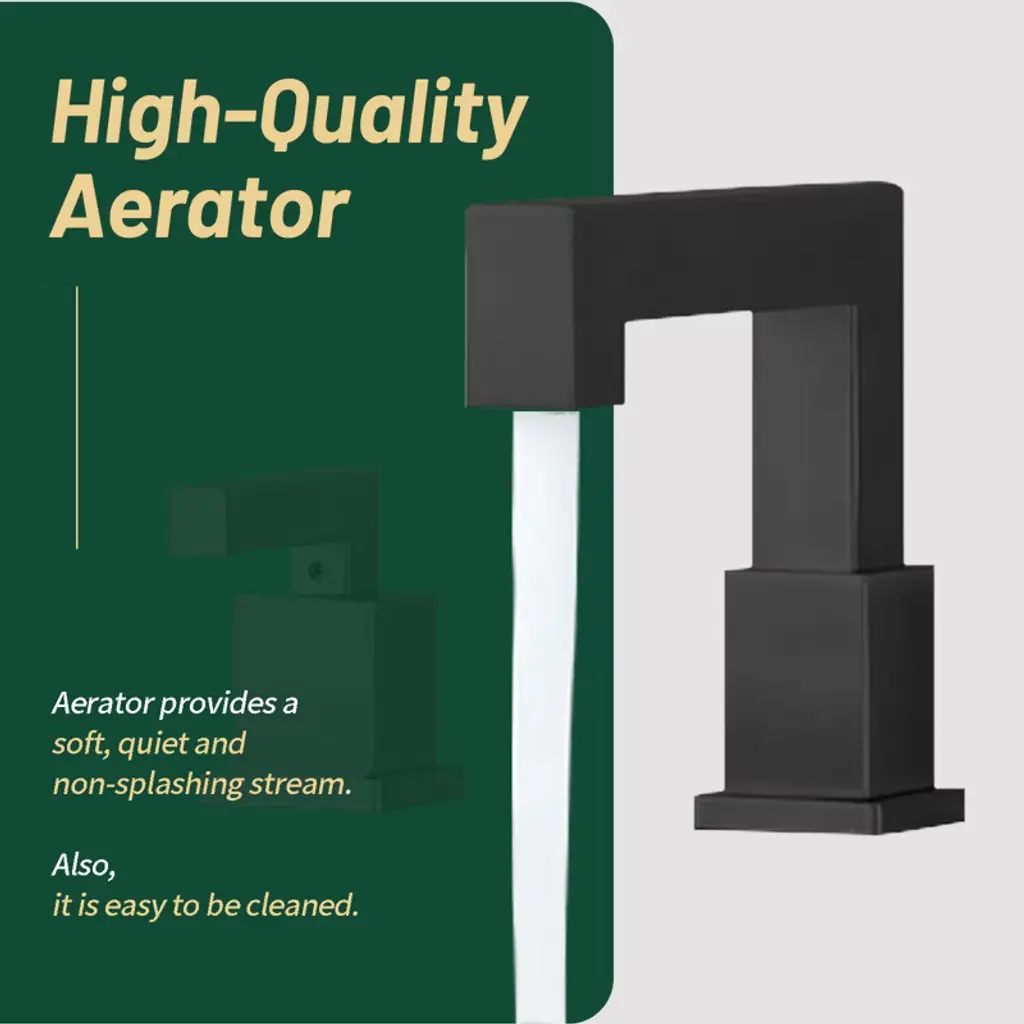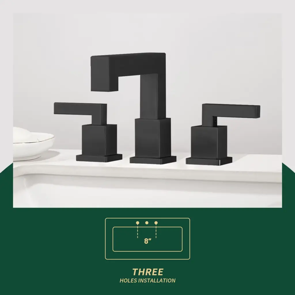This bathroom faucet is made of high quality material that is durable and corrosion resistant. The professionally tested ceramic cartridge ensures that the faucet will not leak or drip and is durable. Perfect for new house renovation, old house renovation, high-end villas, high-end apartments, luxury hotels, elite and middle class. The advanced ceramic cartridge prevents leaks and drips, and the efficient 1.5 GPM flow rate won't affect water pressure, so you can experience superior performance. High Quality Material & Design : Exquisite bathroom sink faucet is rust and corrosion resistant to ensure durability. Dual Handle: The dual handle handle bathroom faucet is designed for precise control of water volume and water temperature, and the advanced ceramic cartridge prevents leaks and drips. Water Conservation: Imported ABS aerator of 3-hole mount 8-inch widespread bathroom sink faucet enhances the dense foaming effect, the water flow is dense and soft without splashing, which improves water conservation efficiency. Product Guarantee: Rest easy knowing you have a professional after-sales team to ensure that you can use the product with confidence. Modern design: The bubble type water outlet is not easy to produce water splash, giving a soft and comfortable feeling, bringing a delicate feeling to your bathroom.
