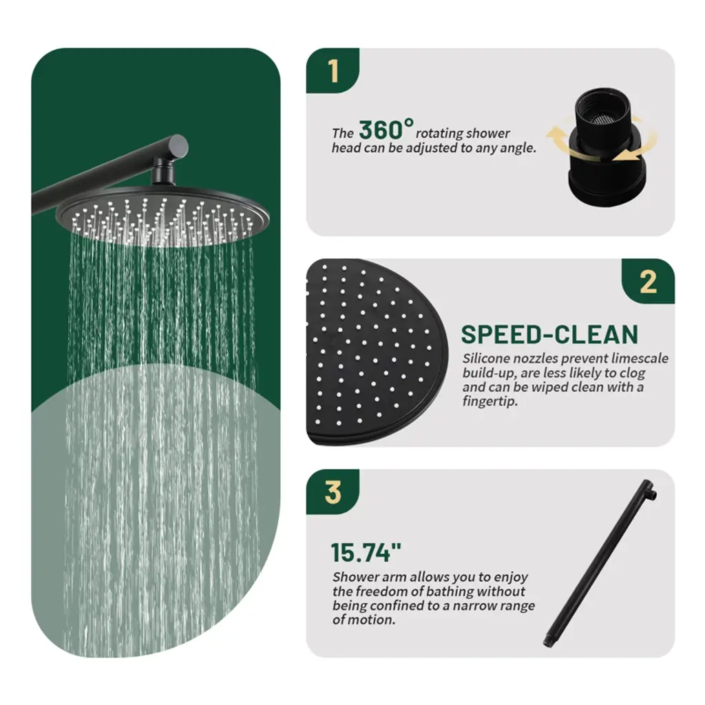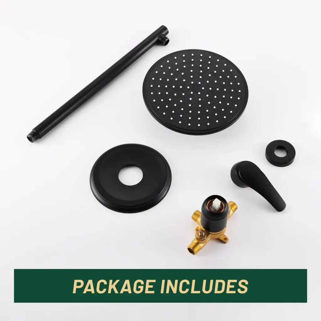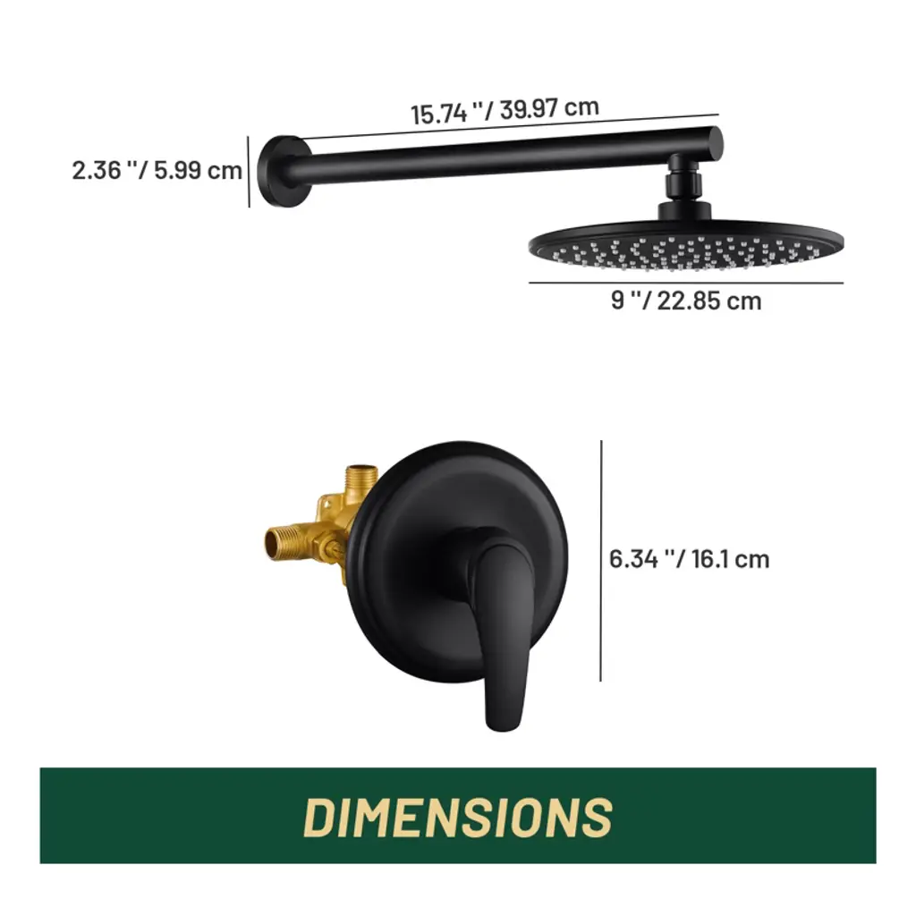 Cobbe Matte Black 9-inch Round Rainfall Shower Faucet Single Handle Shower Faucet Accessory With 15.74-inch Shower Arm And Valve