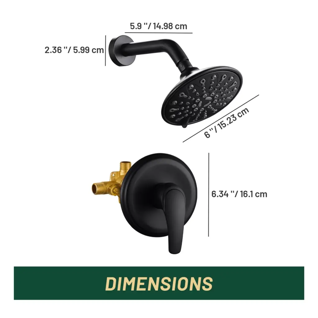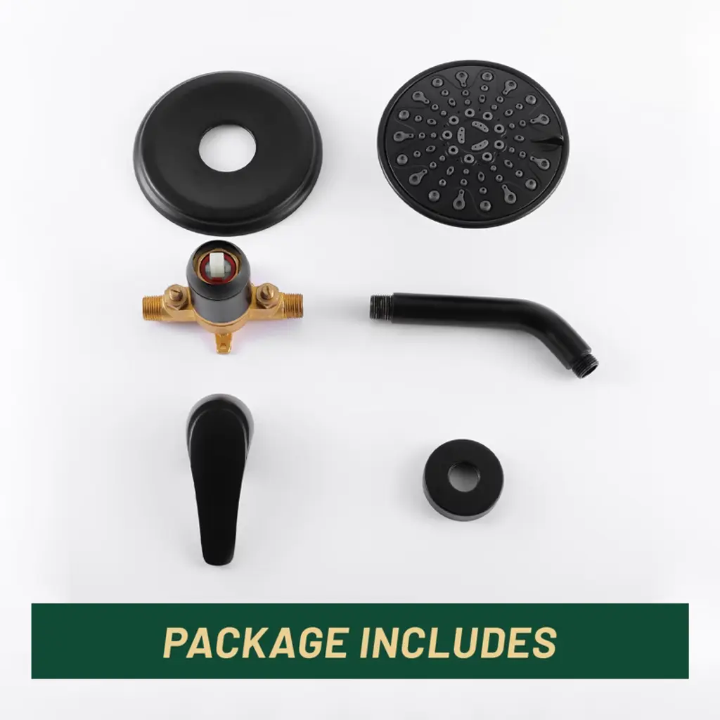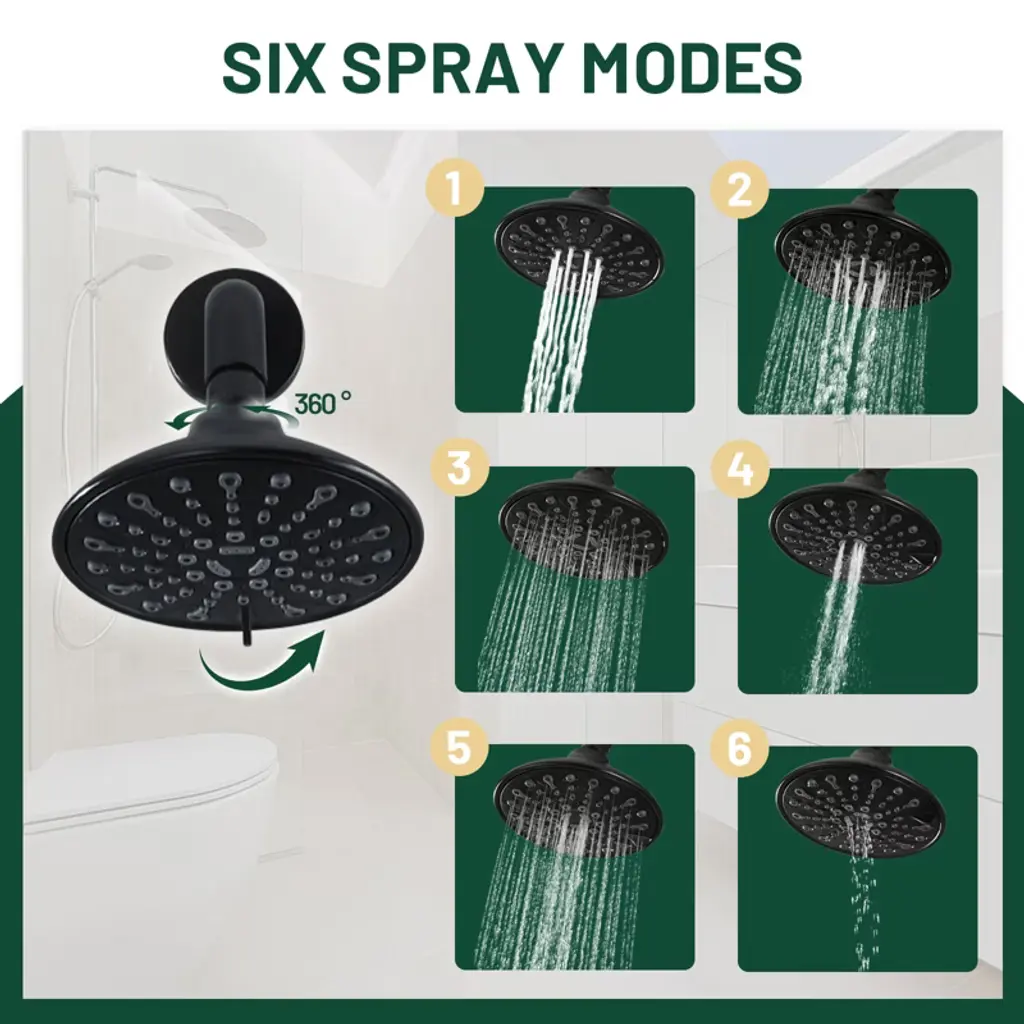 Cobbe Matte Black Round 6-inch 6 Settings Rain Showerhead Abs Wall Mount Shower Faucet Single Handle Include Valve