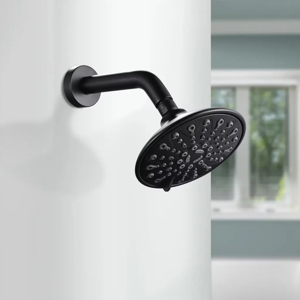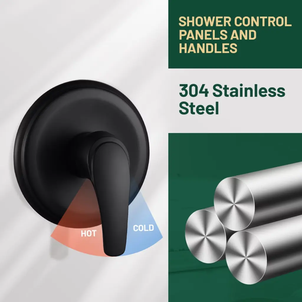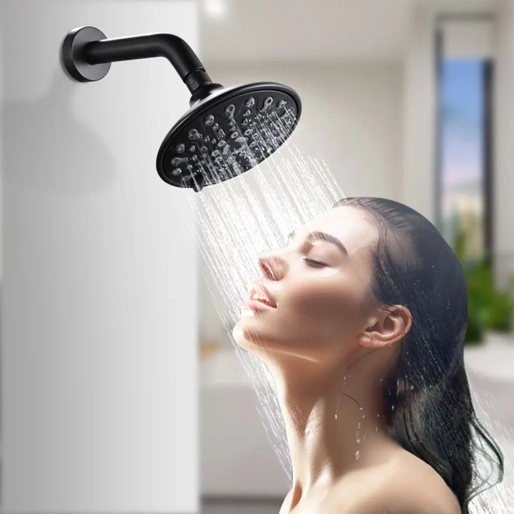 Cobbe Matte Black Round 6-inch 6 Settings Rain Showerhead Abs Wall Mount Shower Faucet Single Handle Include Valve