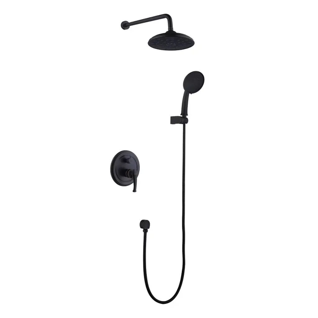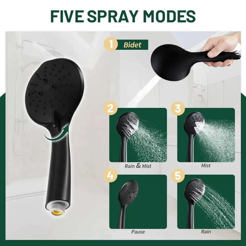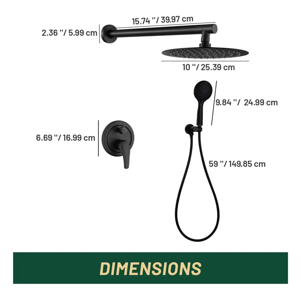 Cobbe Shower Faucet Set With 10-inch Rainshower Head 5 Settings Hand Shower And 15.74-inch Shower Arm Single Handle Wall Mount Matte Black