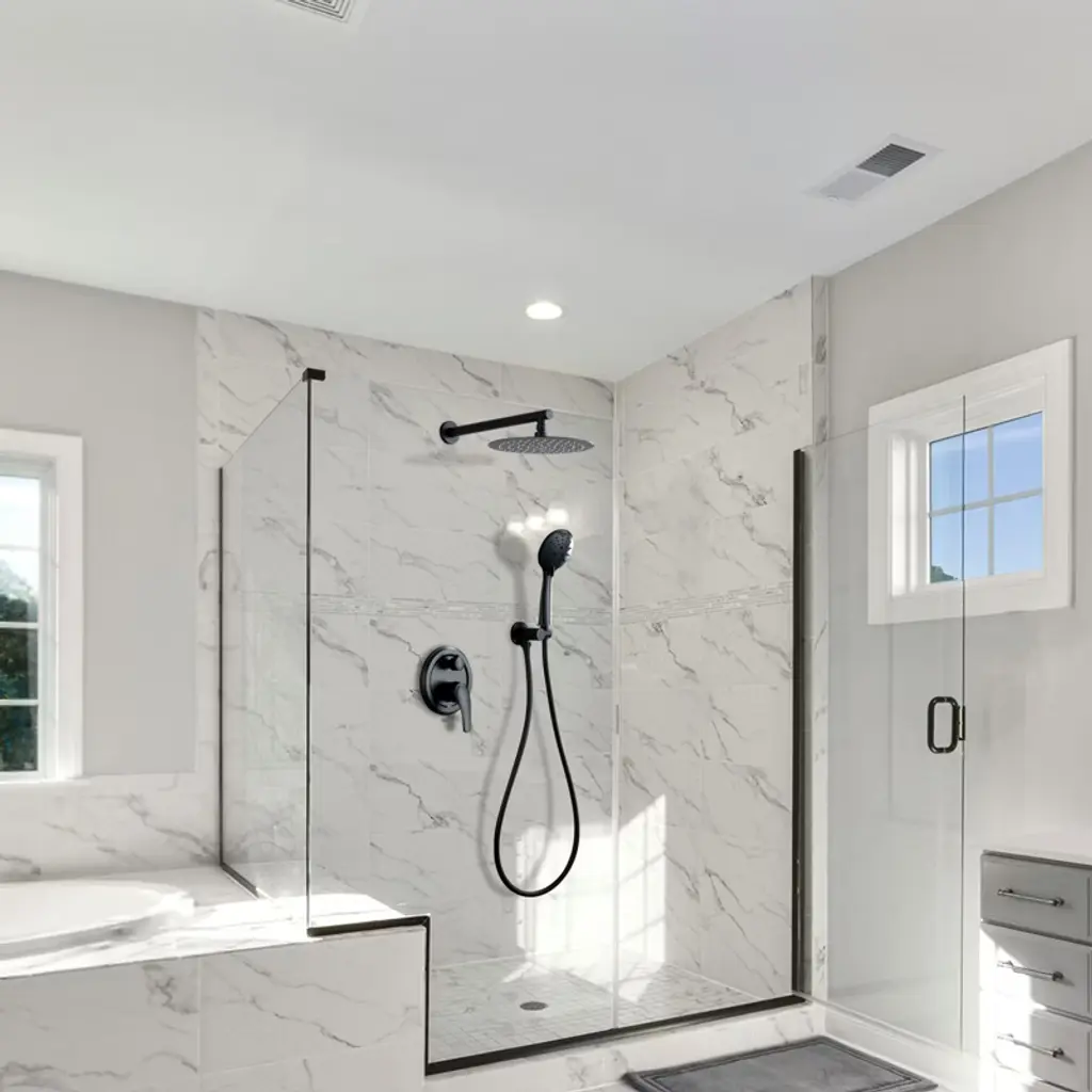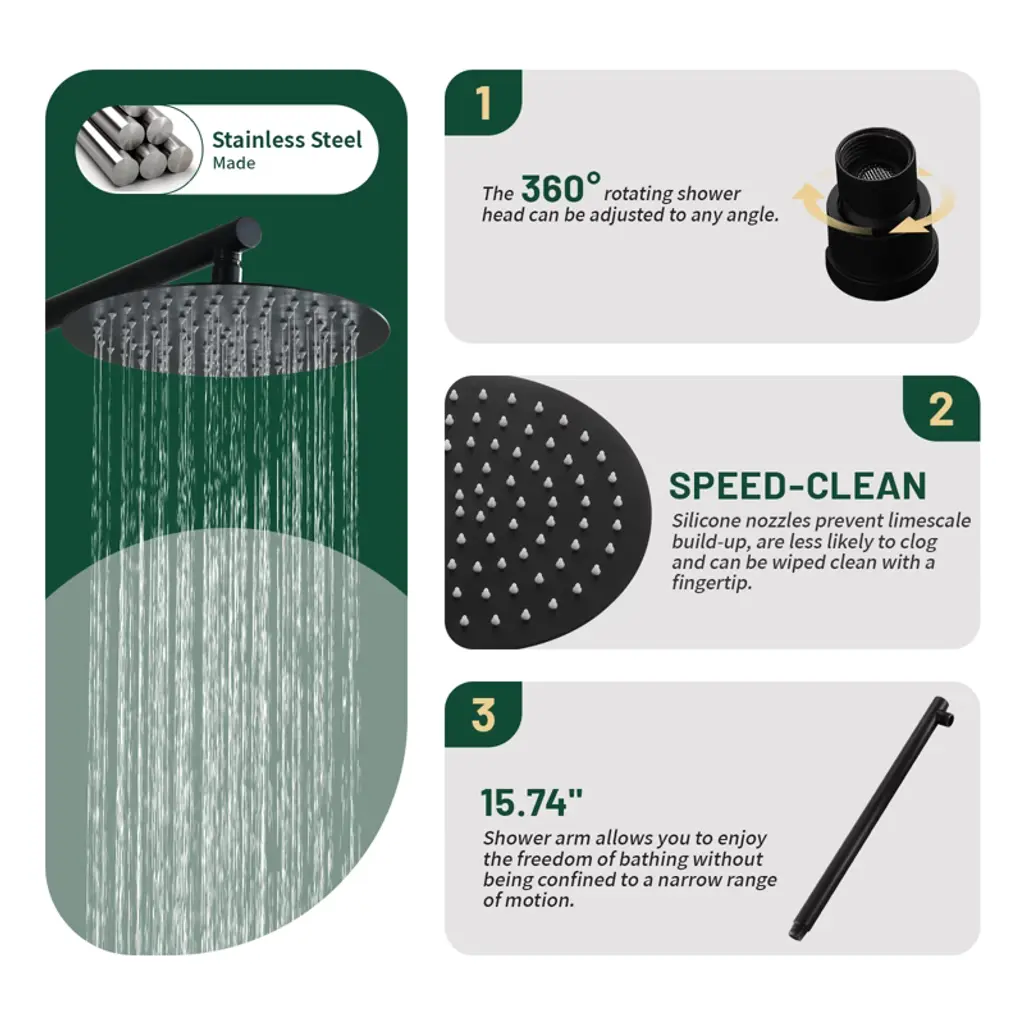 Modern Design: This shower system with modern minimalist design concept, smooth lines and stylish appearance can be easily adapted to a variety of bathroom styles, bringing you a refreshing bathing experience, while adding a sense of elegance and texture to your bathroom space.