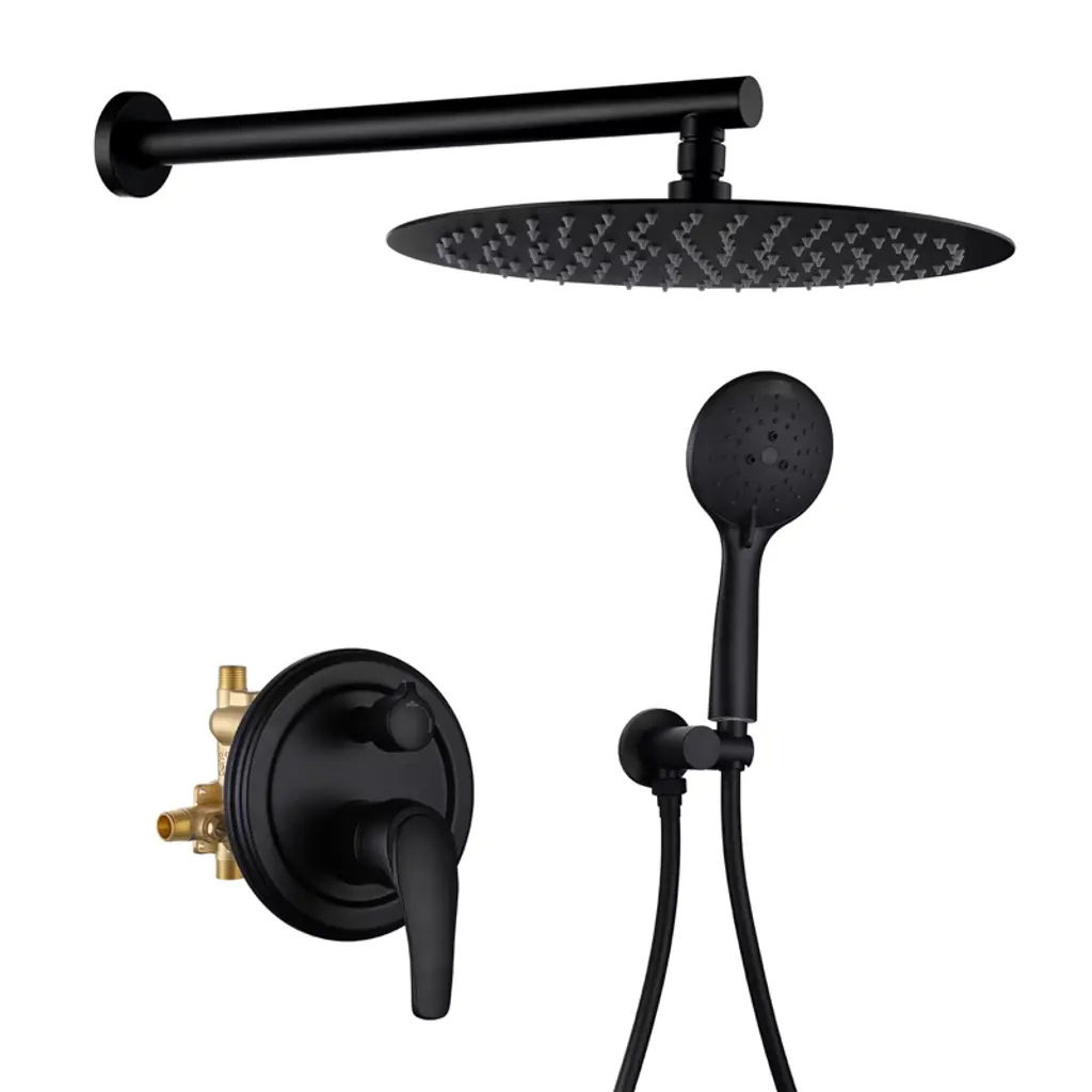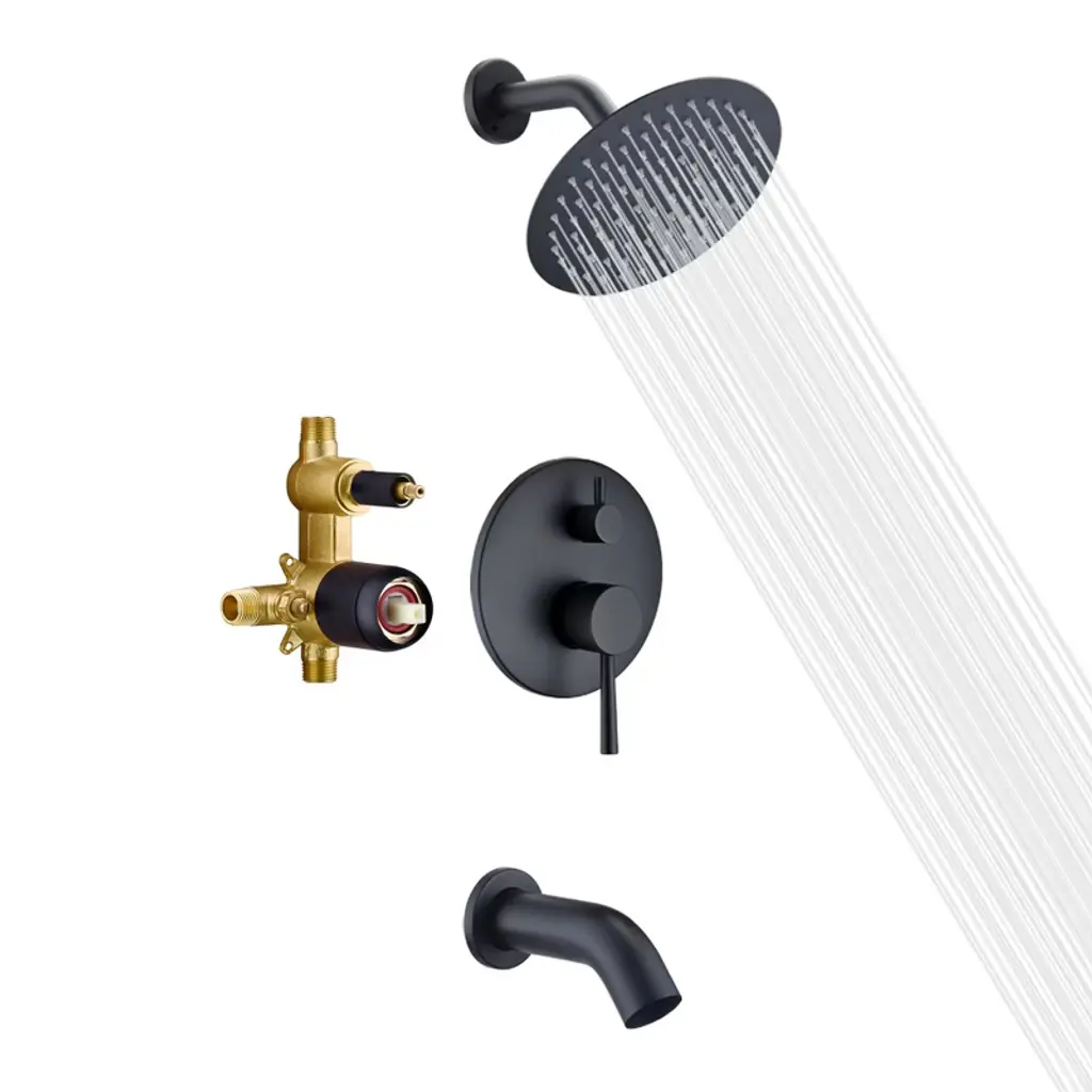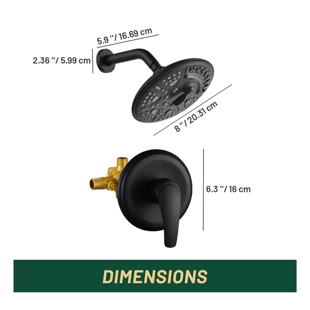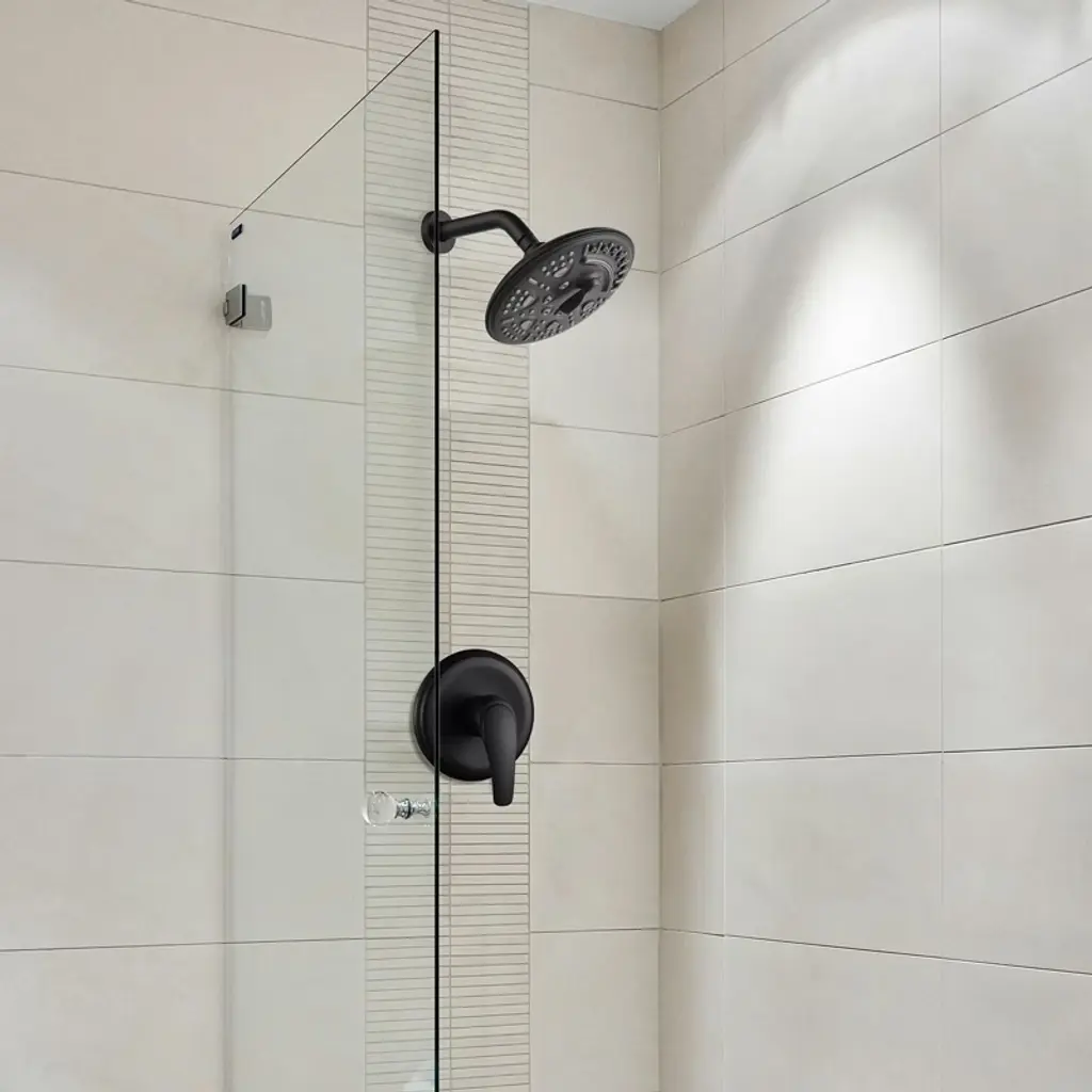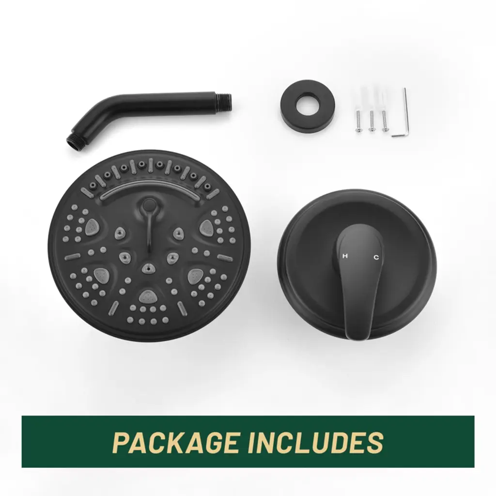 Cobbe Single Handle Bathroom Shower Set With 8-inch Round 6 Settings Abs Rainshower Showerhead Matte Black Valve Included
