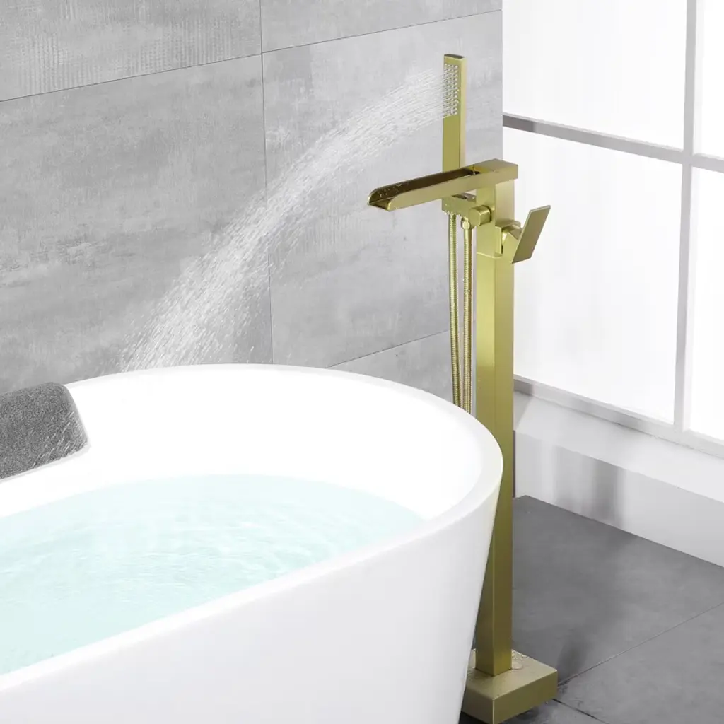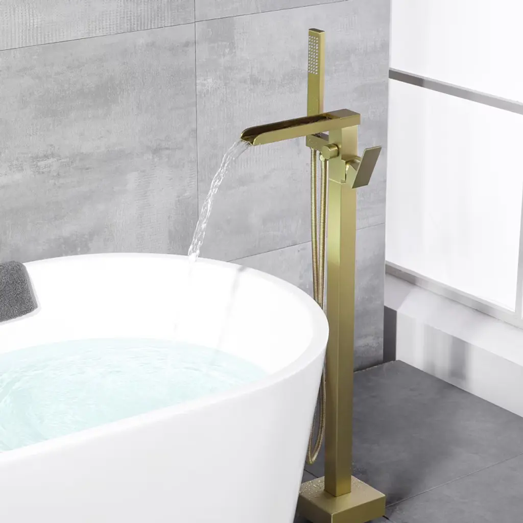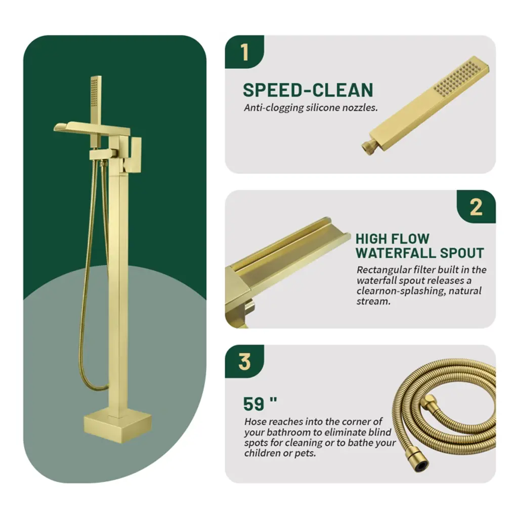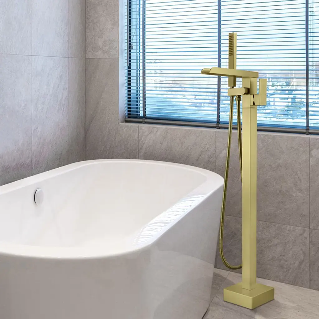 Cobbe Single Handle Floor Standing Tub Faucet Set, Freestanding Tub Filler With Handheld Shower, Tub Spout And 59-inch Hose, Brushed Gold
