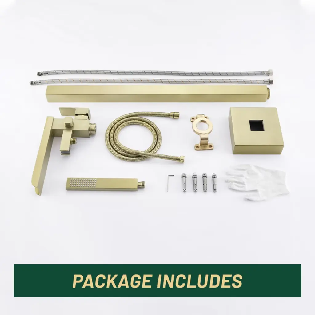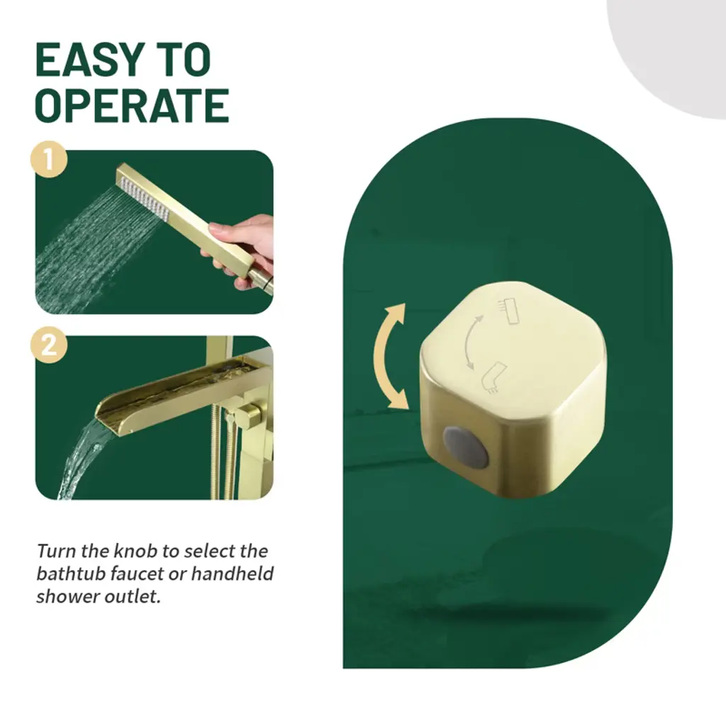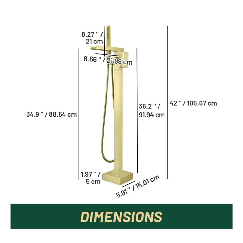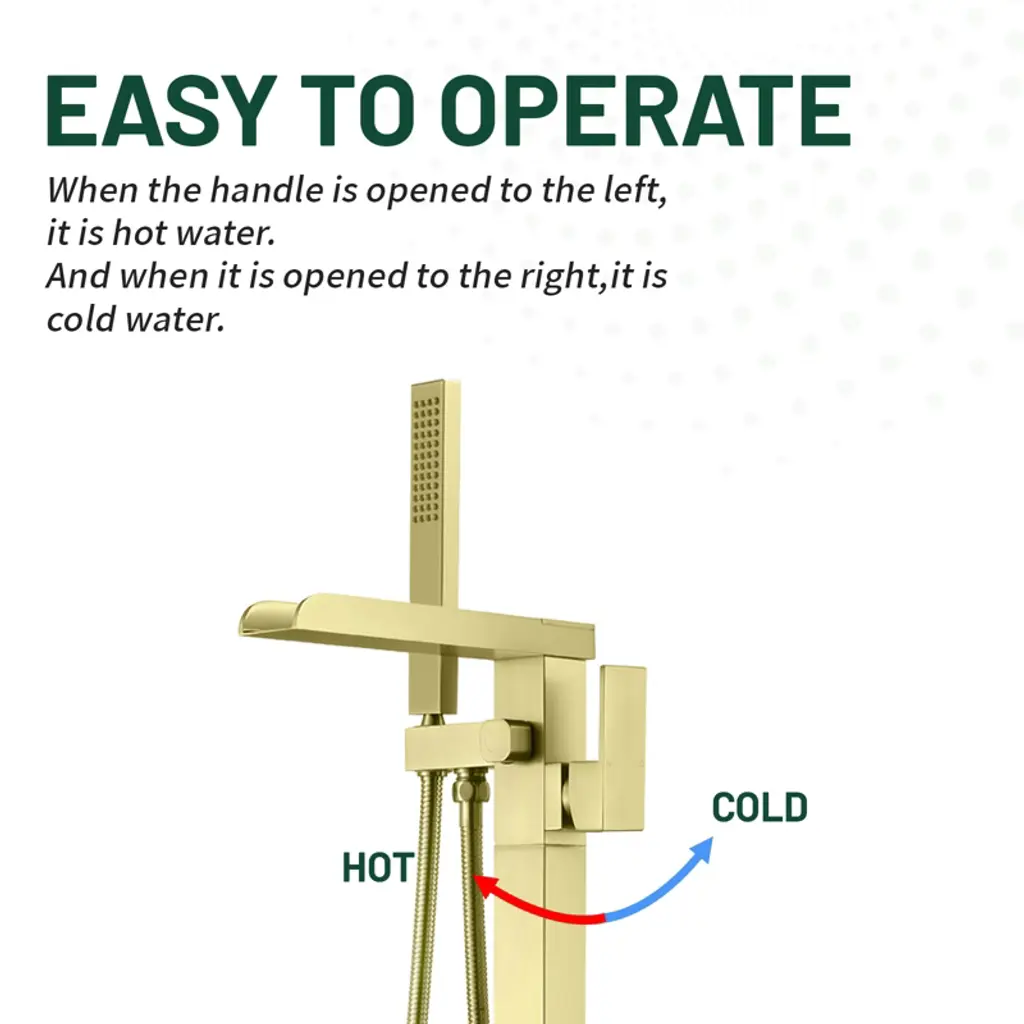 Cobbe Single Handle Floor Standing Tub Faucet Set, Freestanding Tub Filler With Handheld Shower, Tub Spout And 59-inch Hose, Brushed Gold