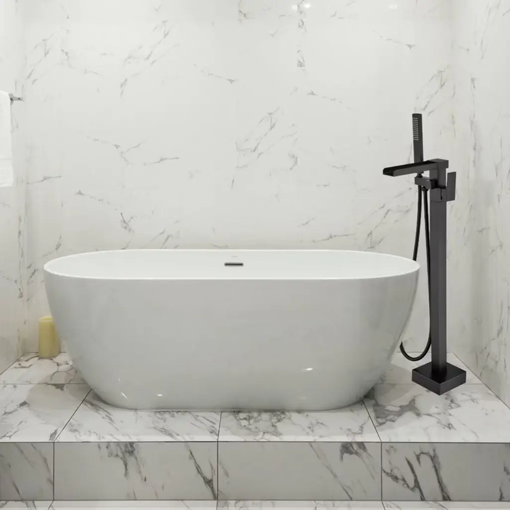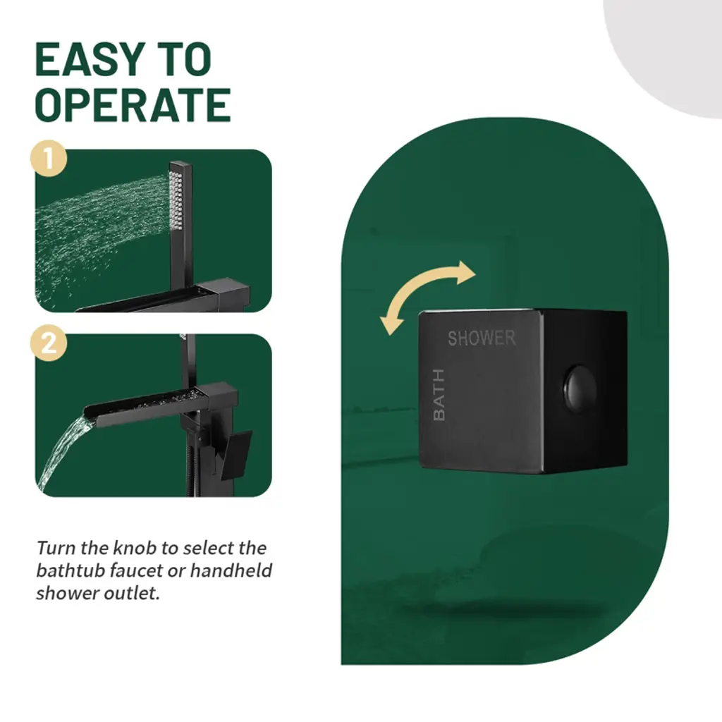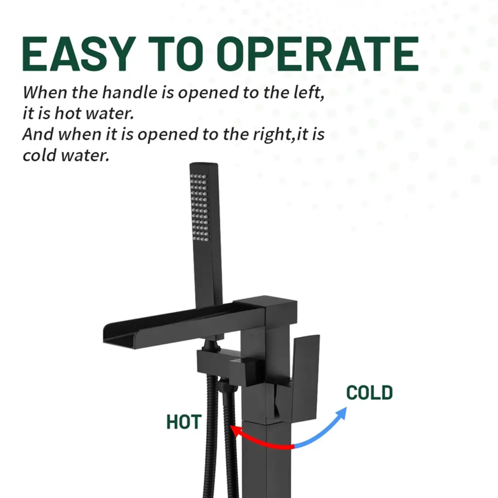 The main parts of this freestanding bathtub faucet are made of copper material for durability and stable performance.Meanwhile, the design is elegant, stylish and aesthetically pleasing, which can be perfectly matched with most other fixtures and decorations to make your space personalized and suitable for most bathrooms with bathtubs.