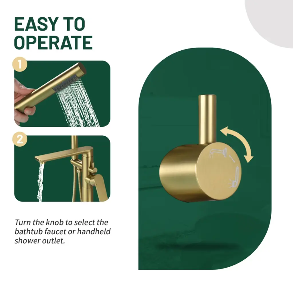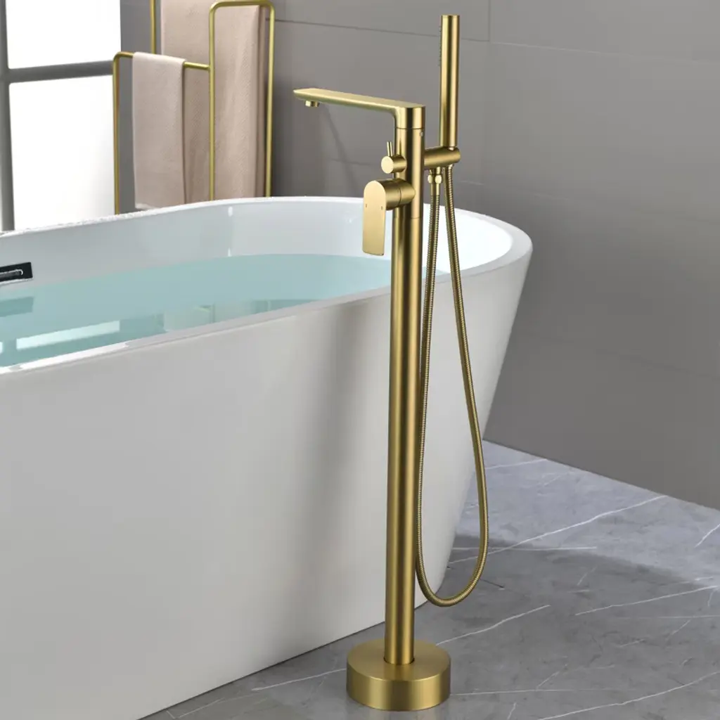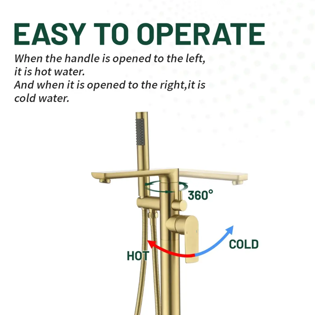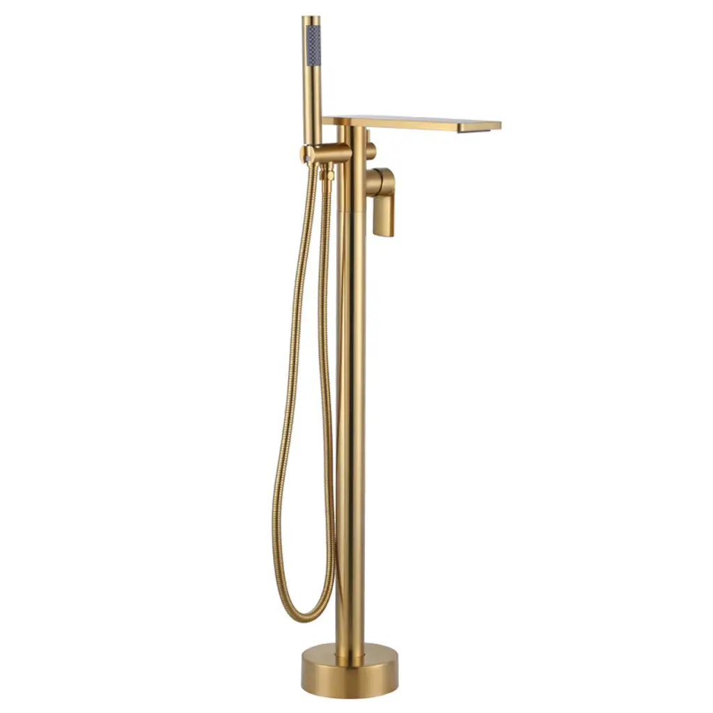 Cobbe Single Handle Freestanding Floor Standing Tub Faucet With Swivel Spout, Handheld Showerhead And 59-inch Hose Shower Faucet Brushed Gold