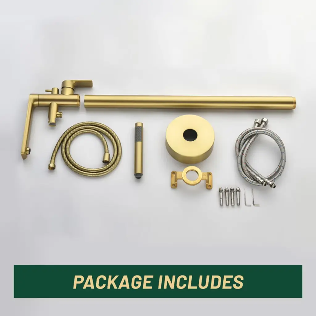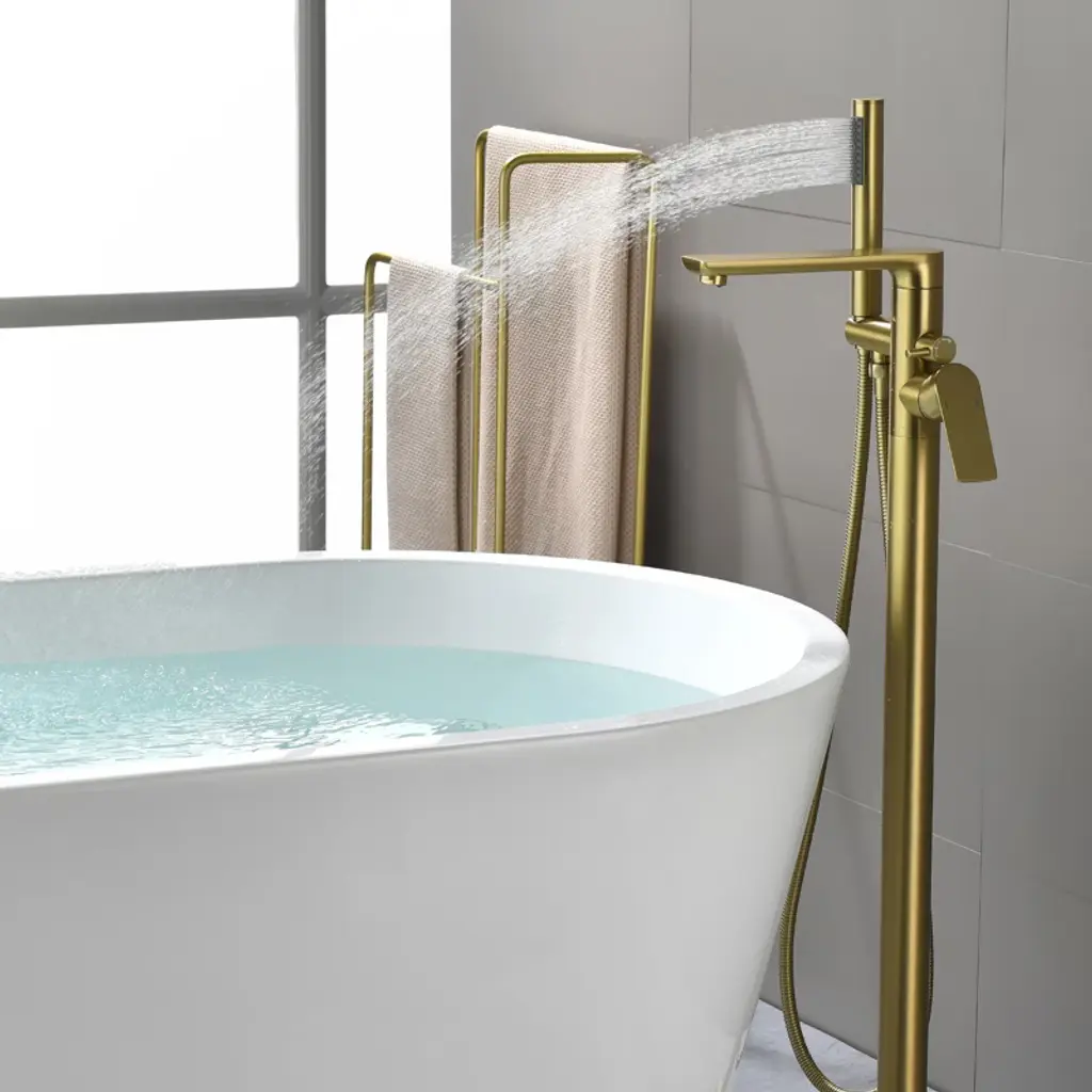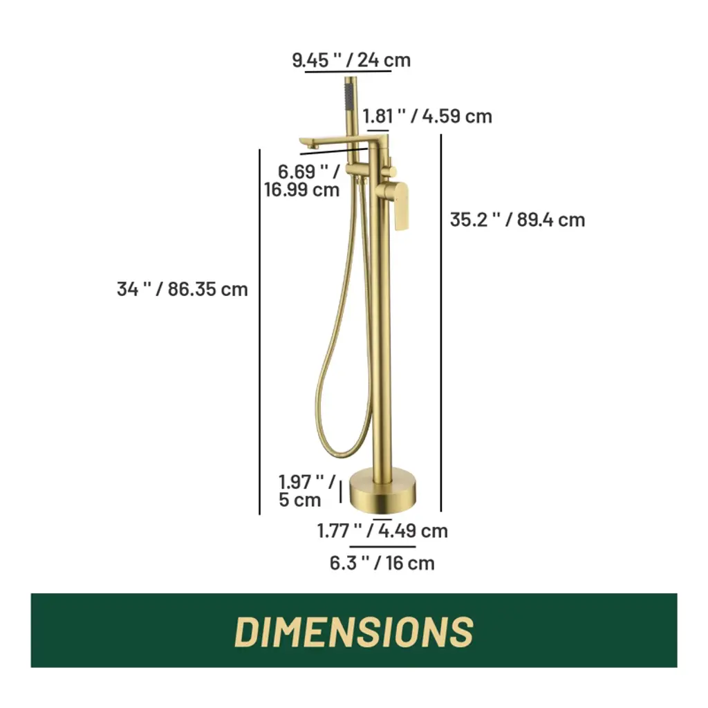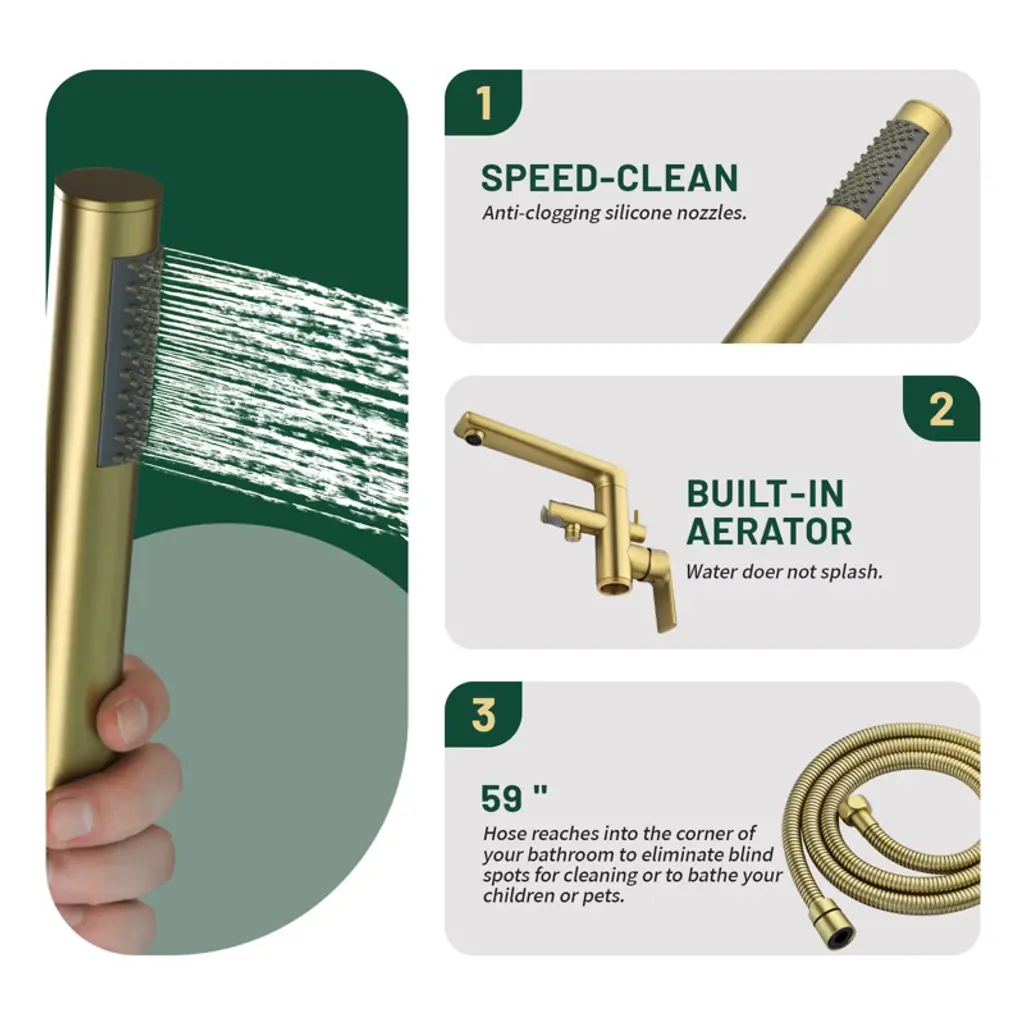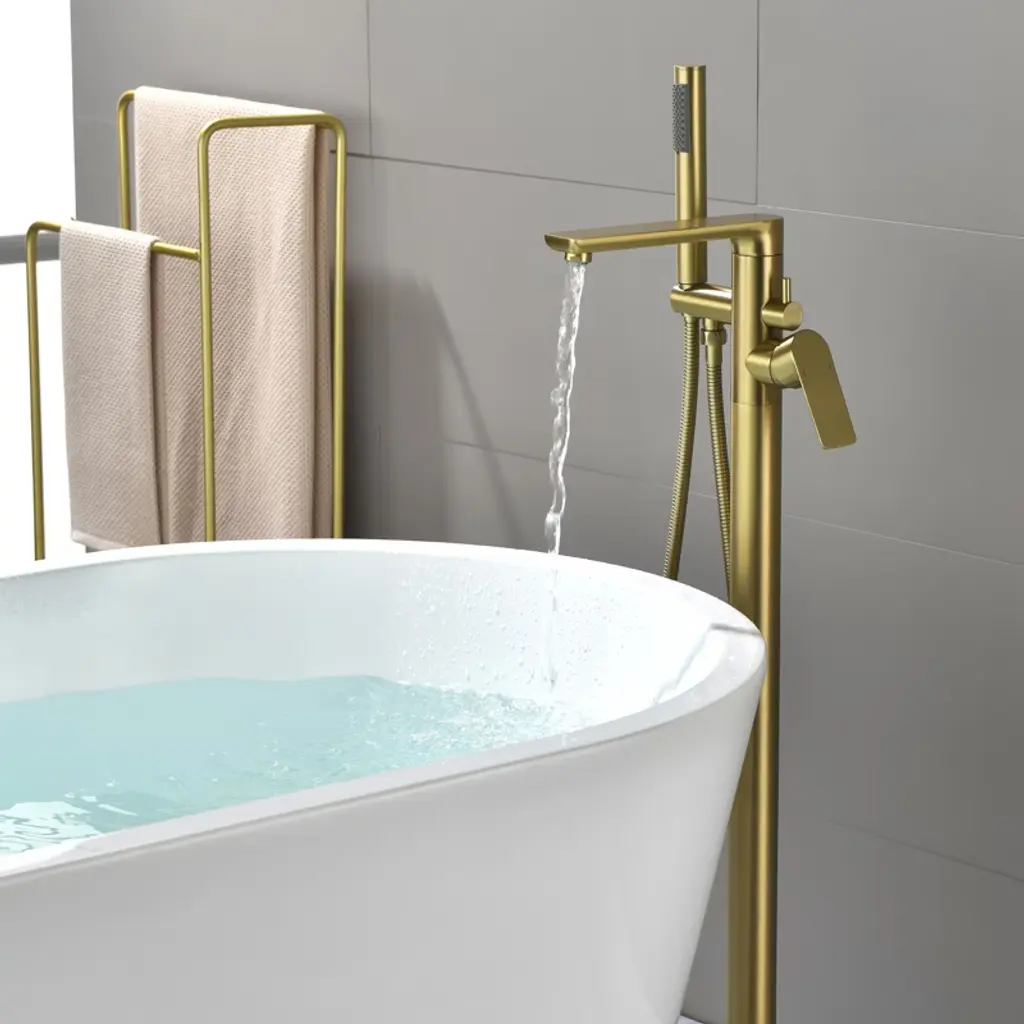Cobbe Single Handle Freestanding Floor Standing Tub Faucet With Swivel Spout, Handheld Showerhead And 59-inch Hose Shower Faucet Brushed Gold