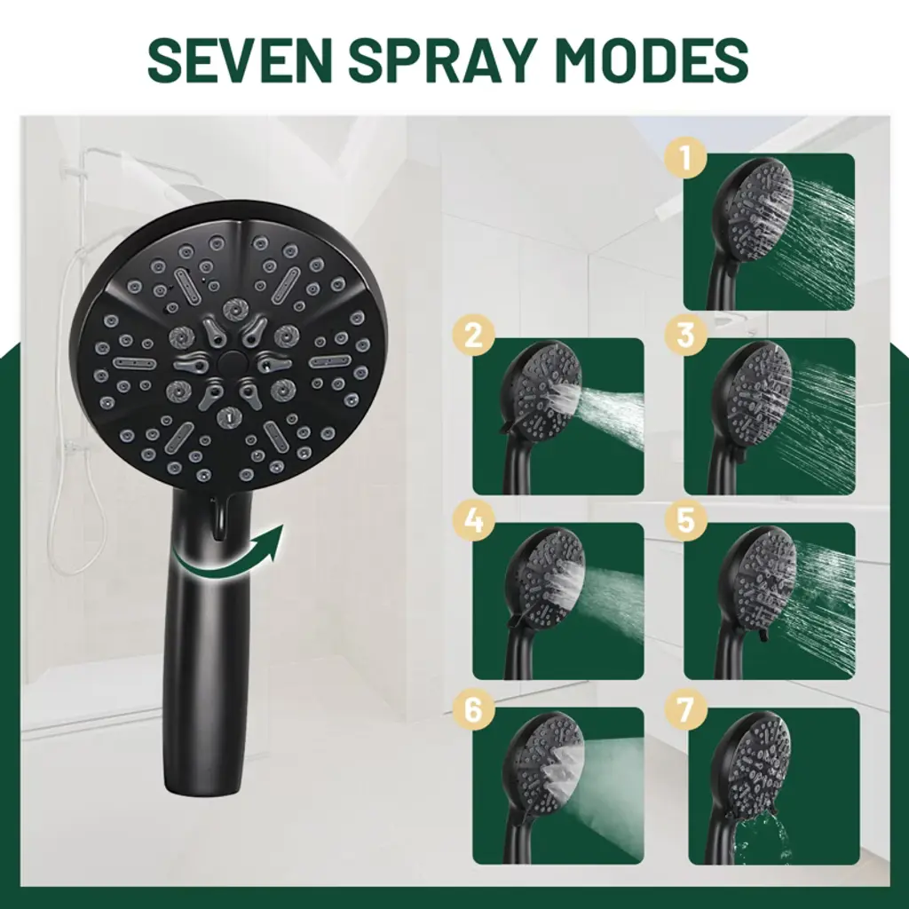 Cobbe Single Handle Rainfall Shower Faucet Set With Handheld 7 Settings Shower Tub Spout Single Handle And 59-inch Hose Matte Black Include Valve