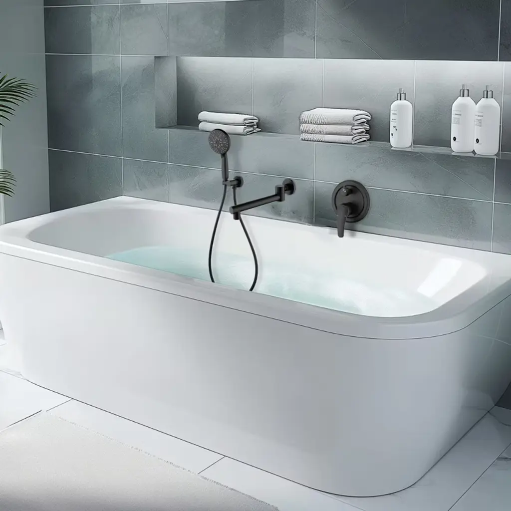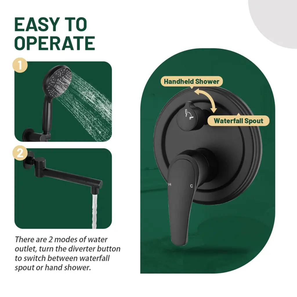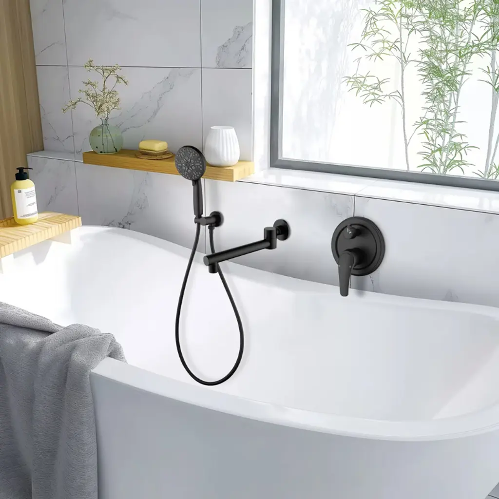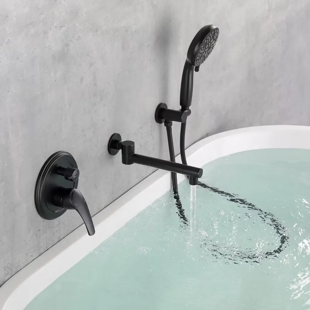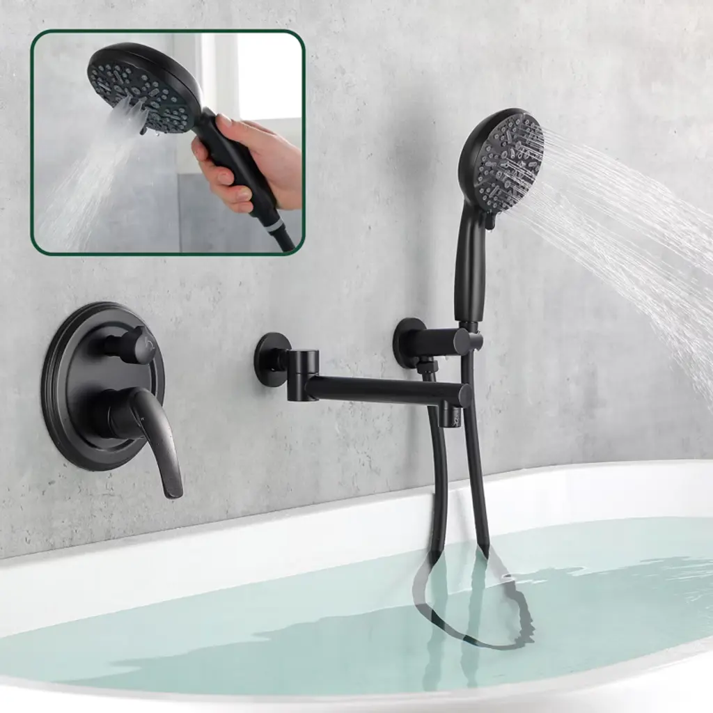 Reliable Design: This wall-mounted bathtub faucet with handheld shower not only adds an elegant texture to the bathroom, but also provides convenient and practical functions to meet the diverse needs of daily use.