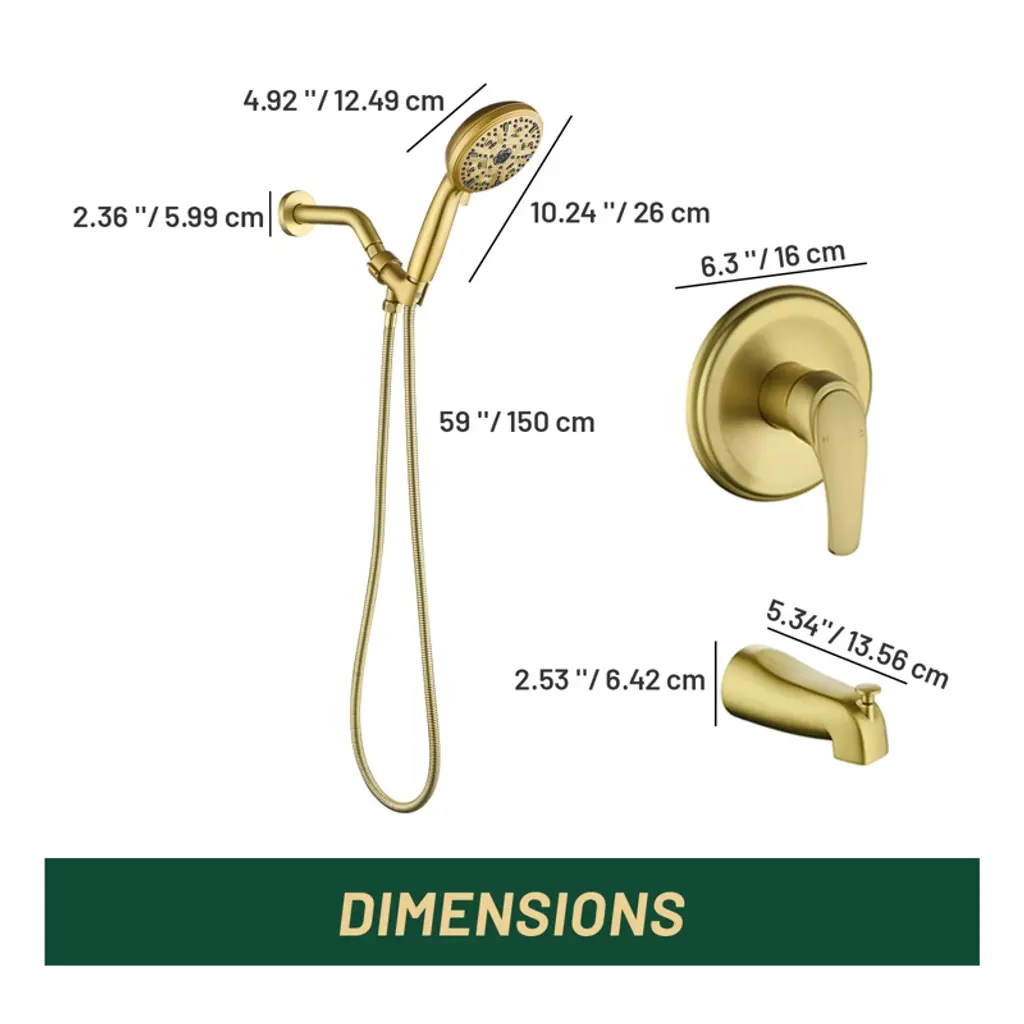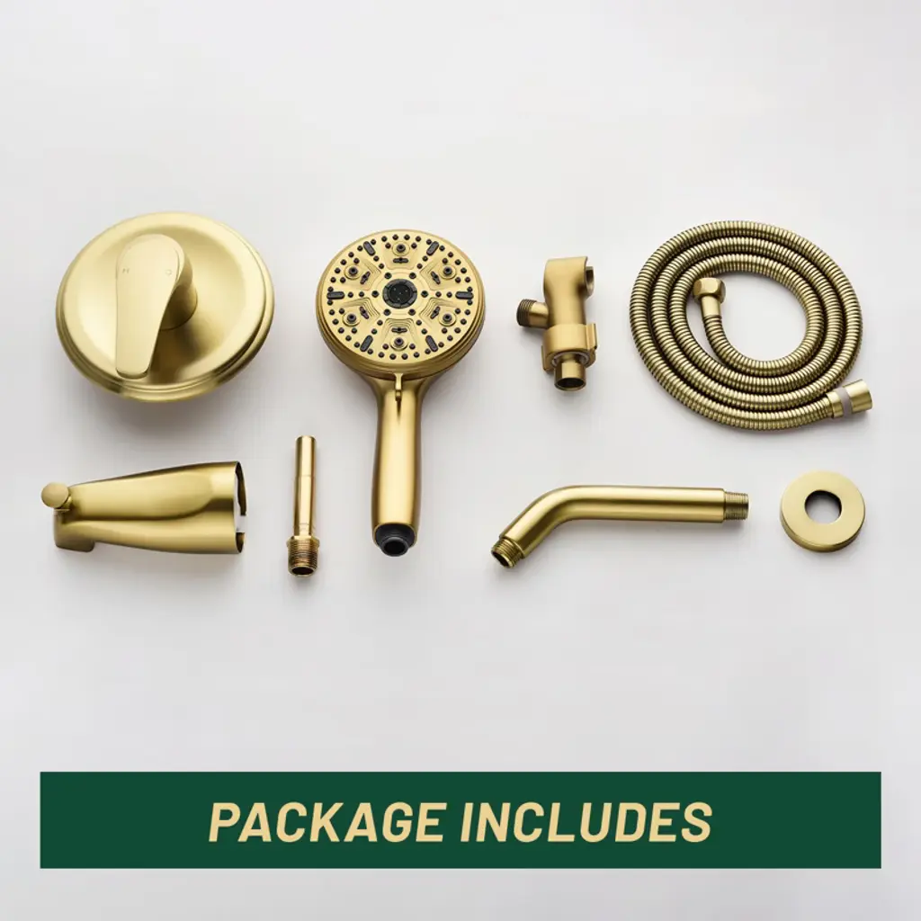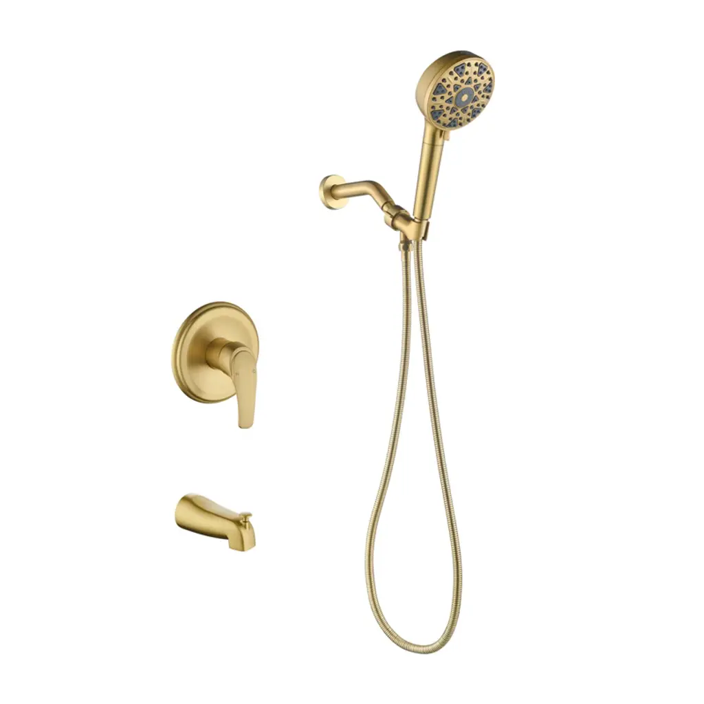 Cobbe Single Handle Wall Mount Bathroom Shower Set With 10 Settings Handheld Shower And Tub Spout Brushed Gold With Valve And 59-inch Hose