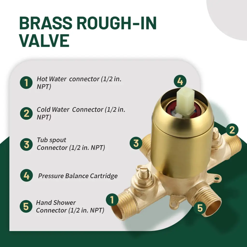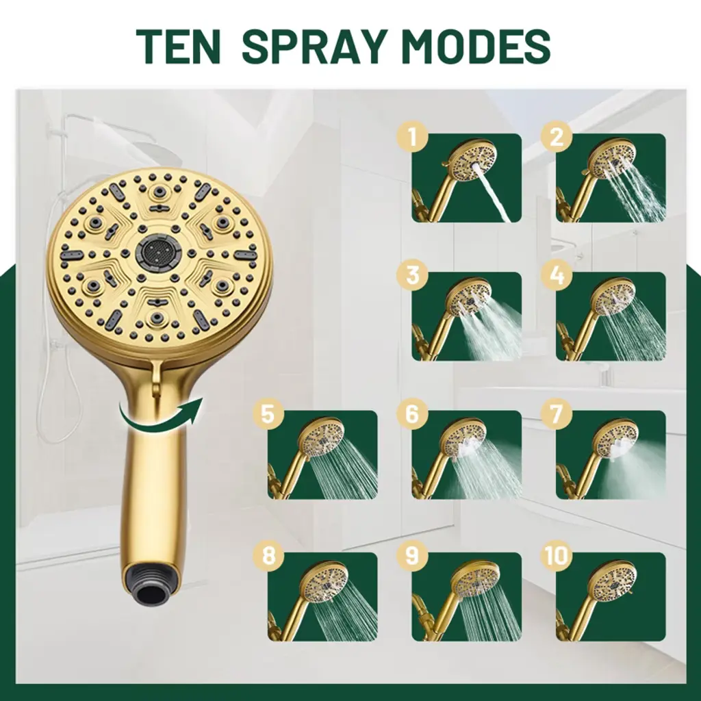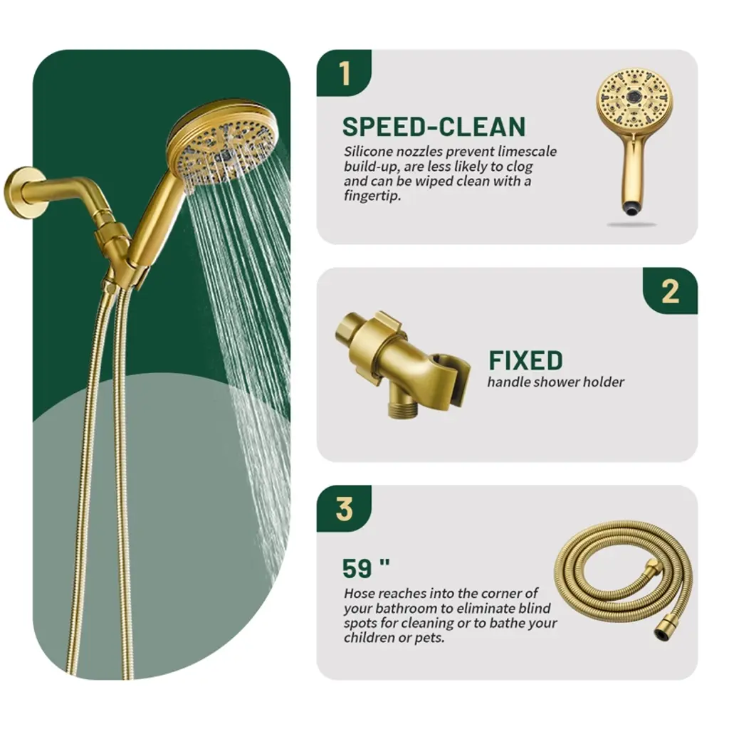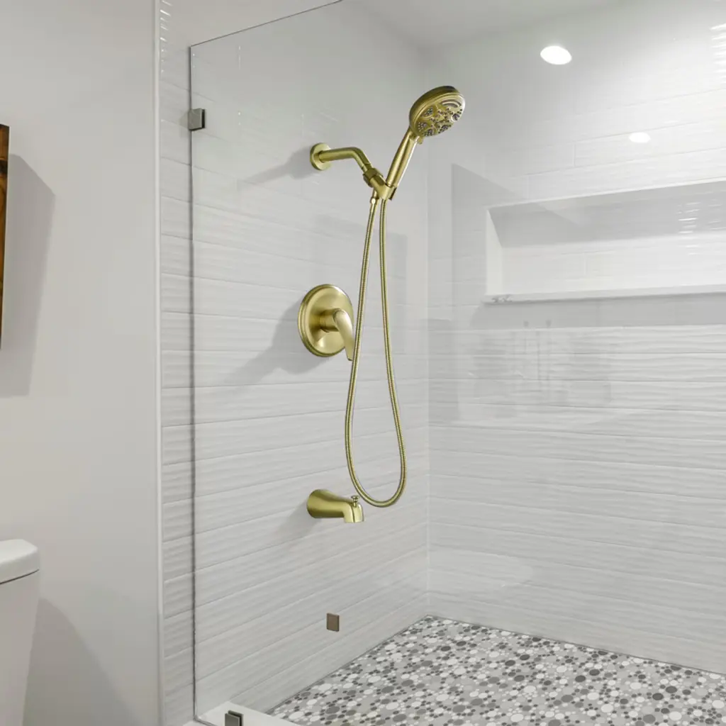 Cobbe Single Handle Wall Mount Bathroom Shower Set With 10 Settings Handheld Shower And Tub Spout Brushed Gold With Valve And 59-inch Hose