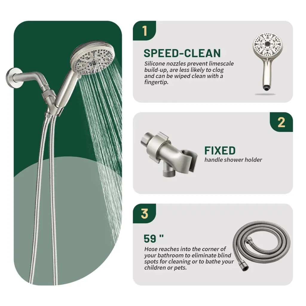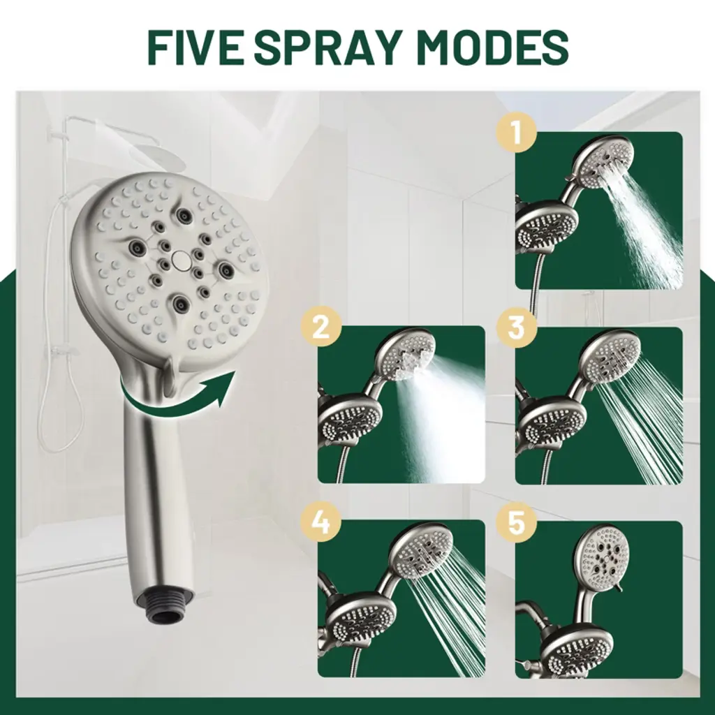 Cobbe Single Handle Wall Mounted Dual Shower Head With 5 Settings Hand Shower And Rain Shower Head And Tub Spout Shower Set Brushed Nickel