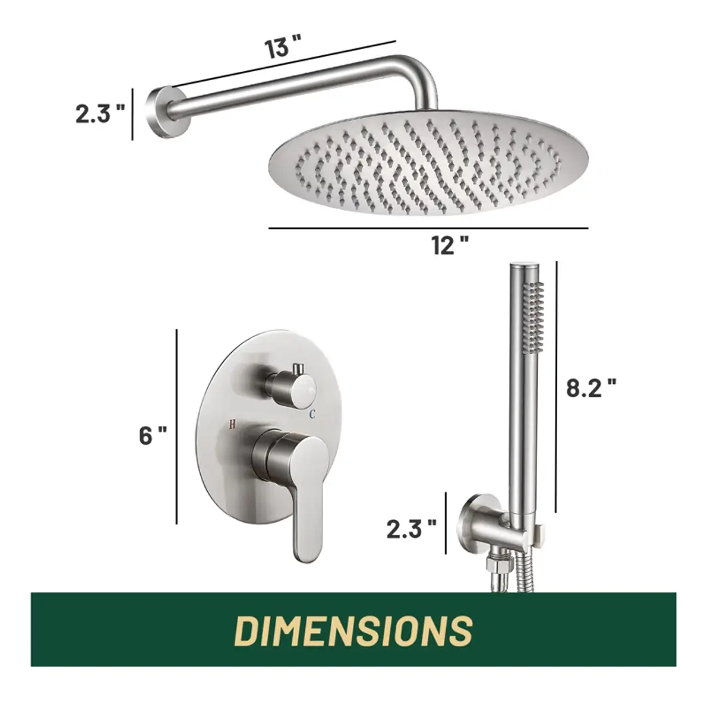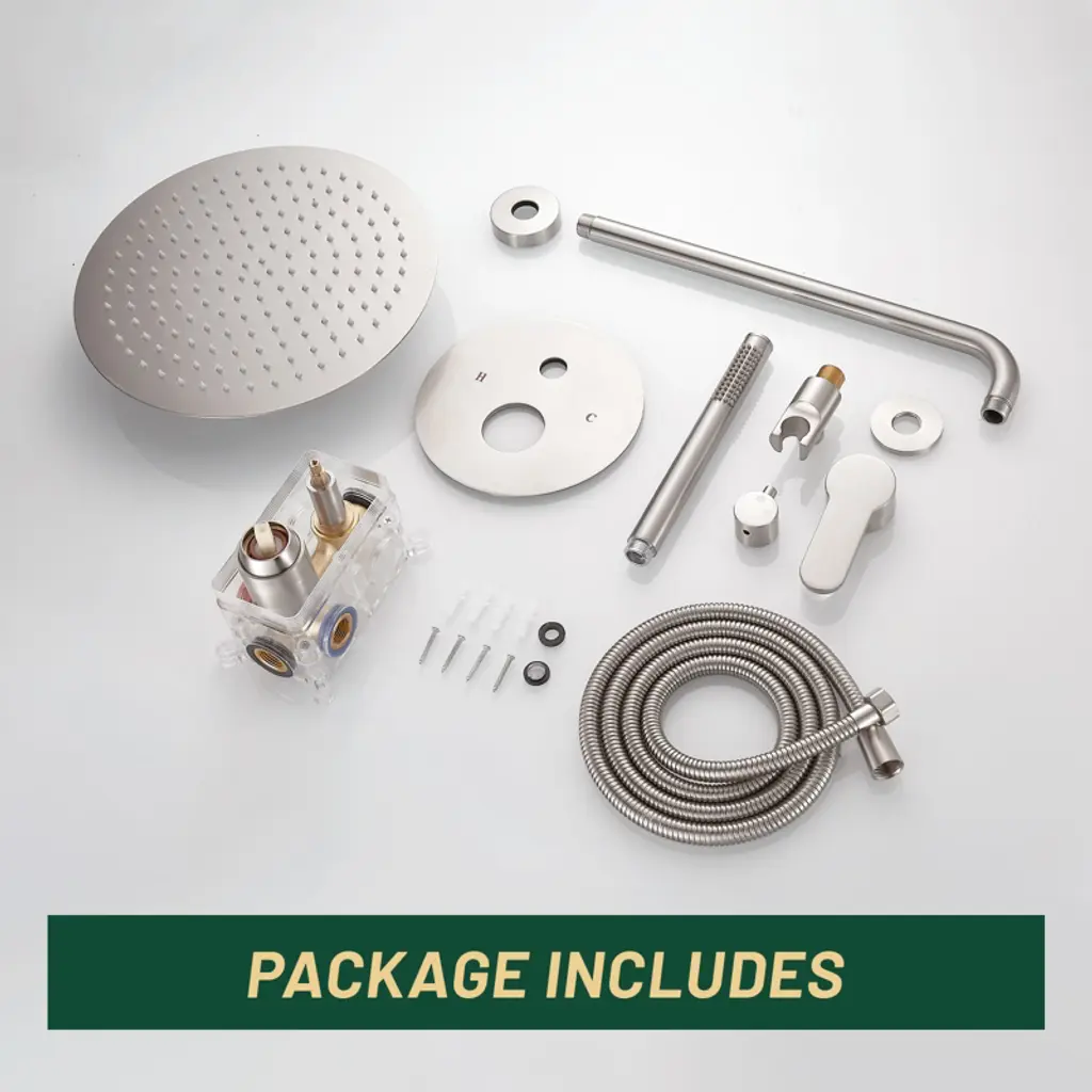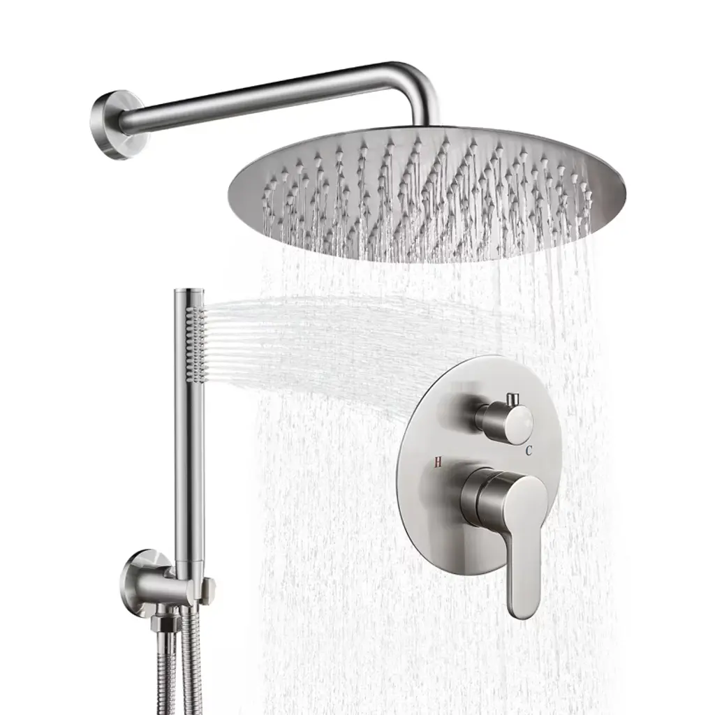 Cobbe Stylish High-pressure Stainless Steel Round Shower System With Ultra-thin 12-inch Overhead Rainfall,handheld Spray And Rough In-valve