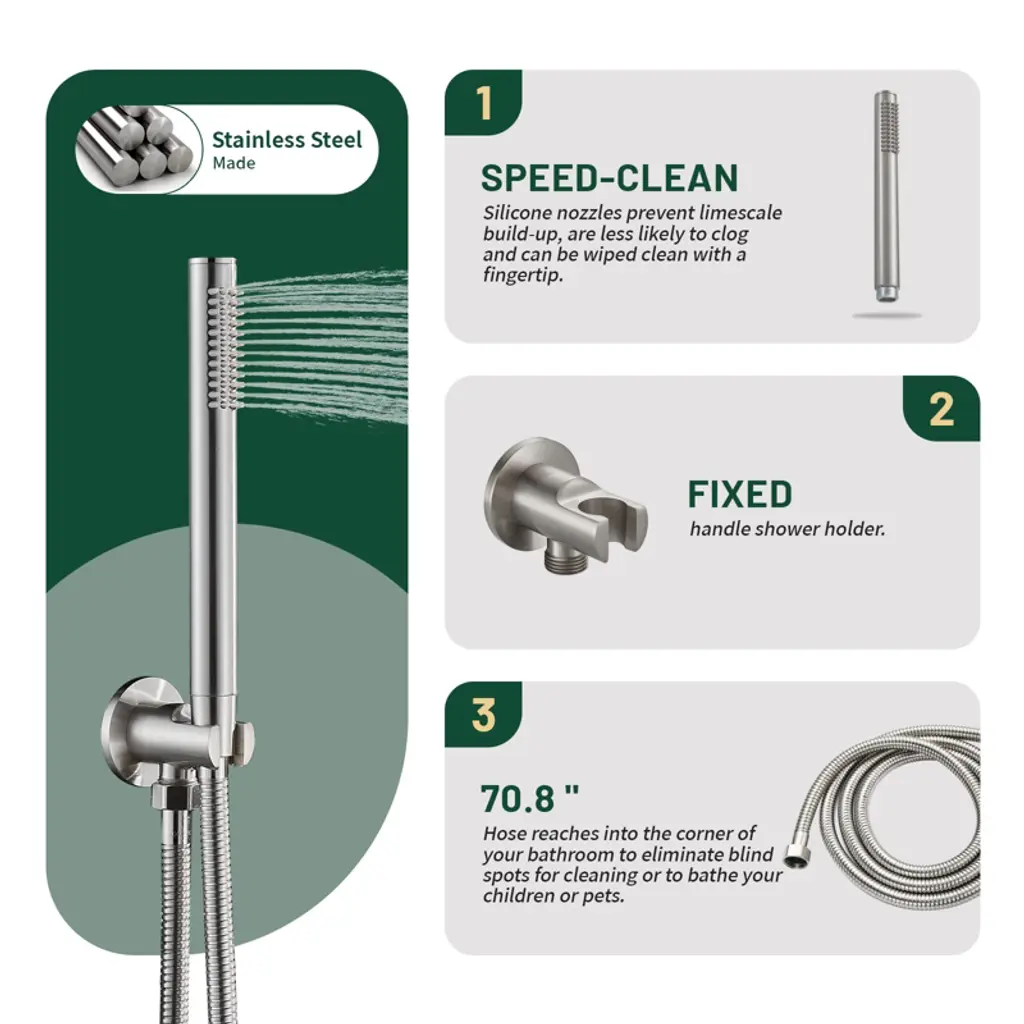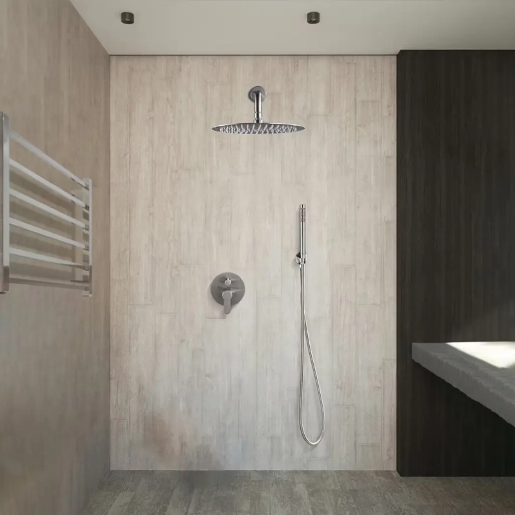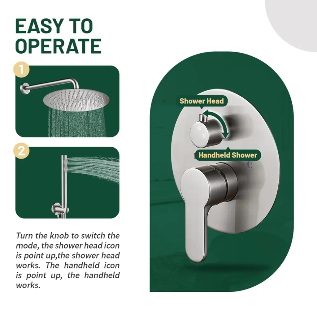 Cobbe Stylish High-pressure Stainless Steel Round Shower System With Ultra-thin 12-inch Overhead Rainfall,handheld Spray And Rough In-valve
