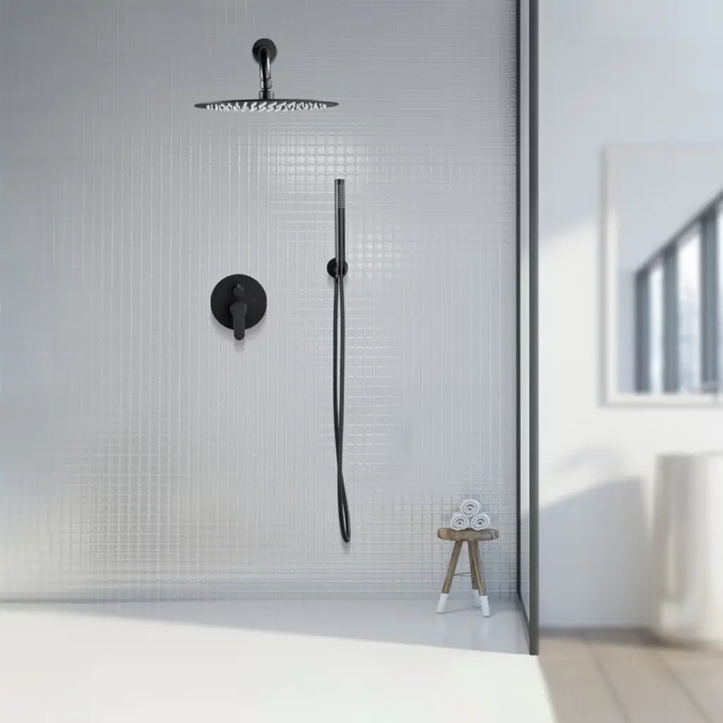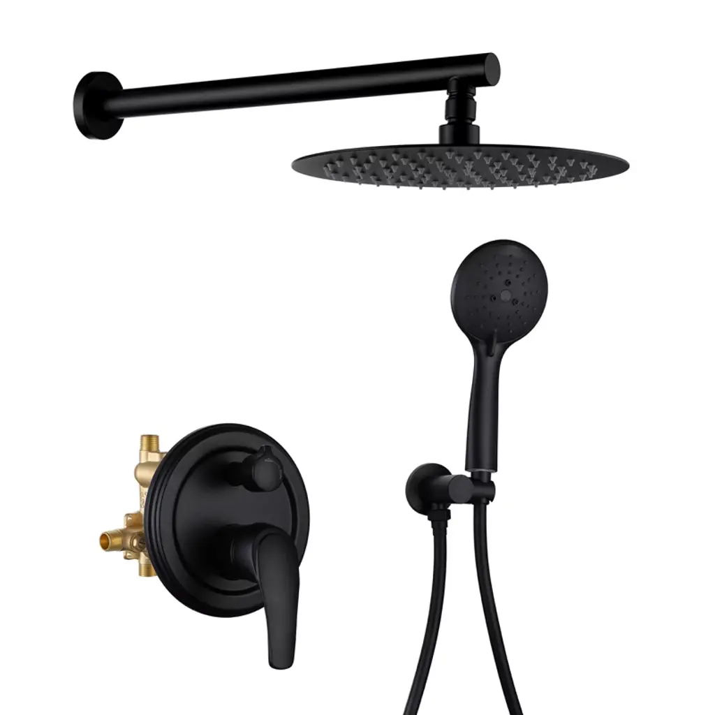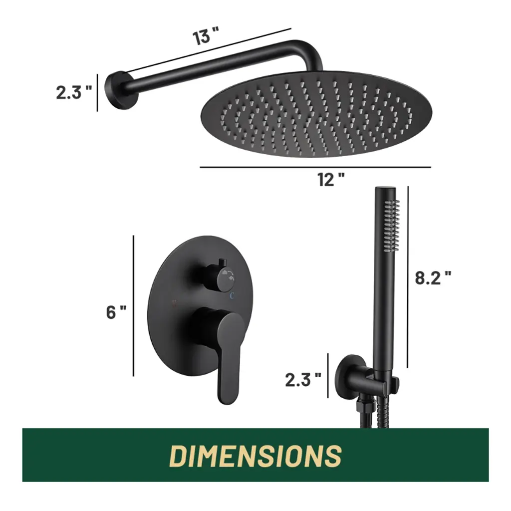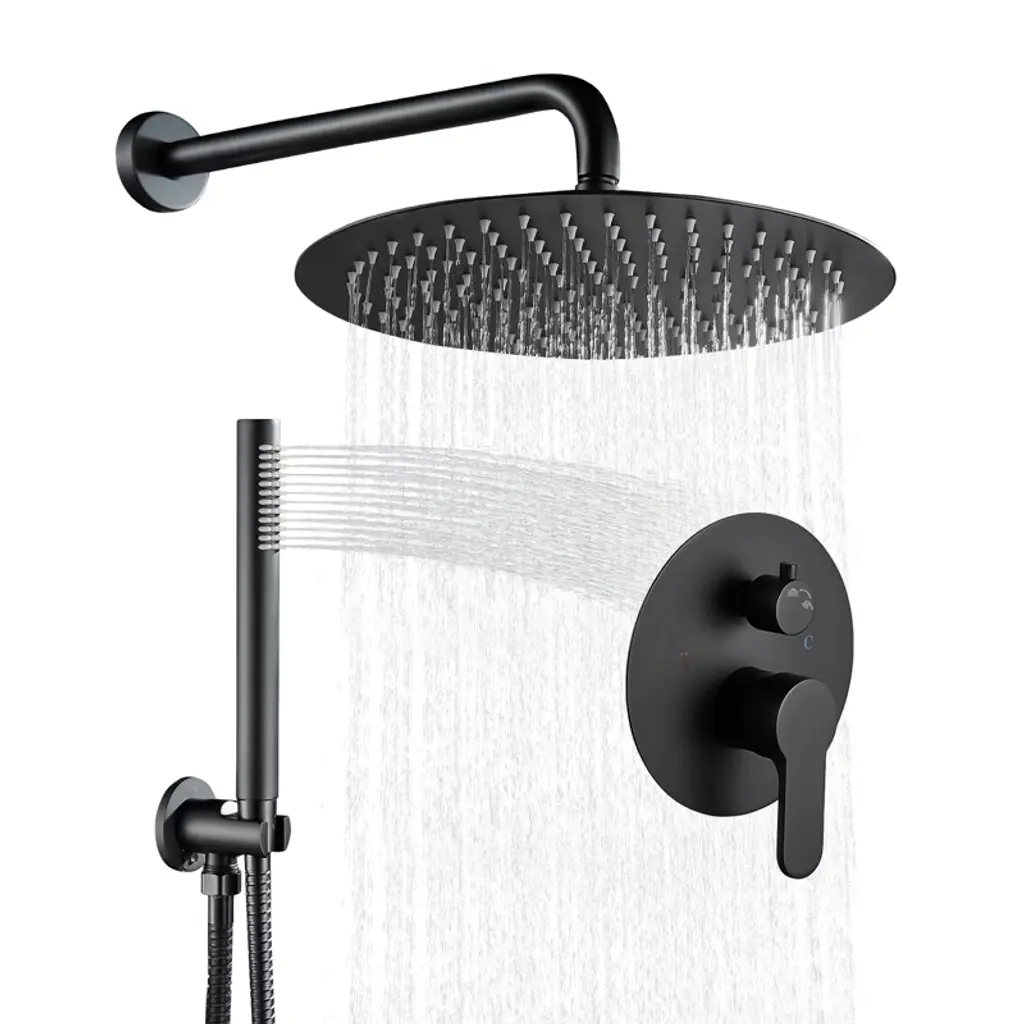 Cobbe Stylish High-pressure Stainless Steel Round Shower System With Ultra-thin 12-inch Overhead Rainfall,handheld Spray And Rough In-valve