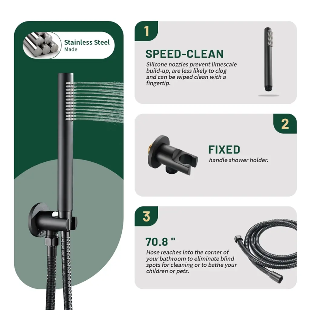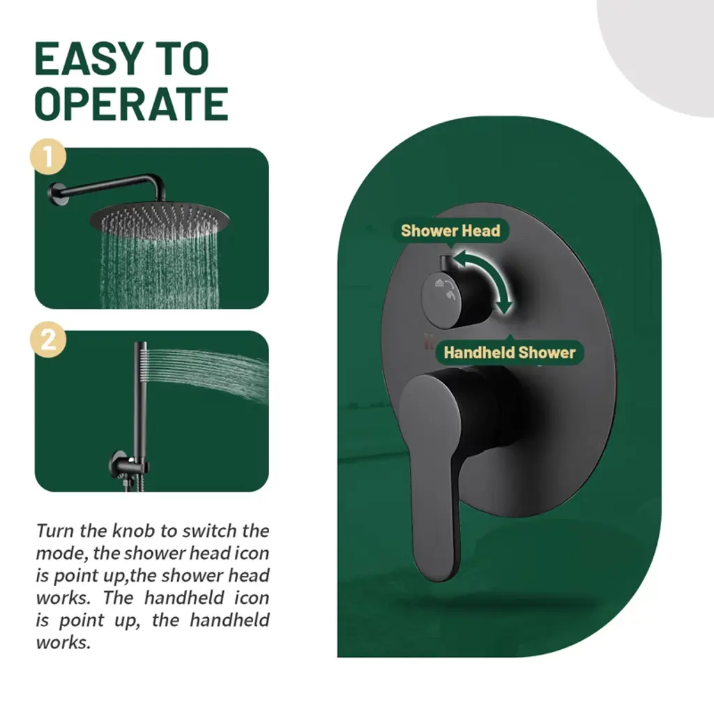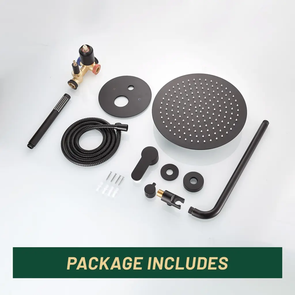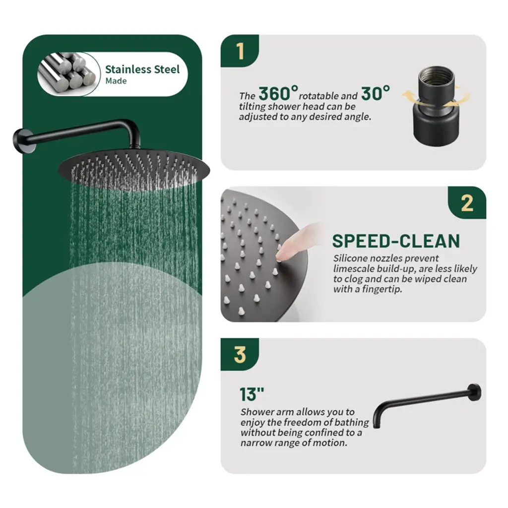Cobbe Stylish High-pressure Stainless Steel Round Shower System With Ultra-thin 12-inch Overhead Rainfall,handheld Spray And Rough In-valve
