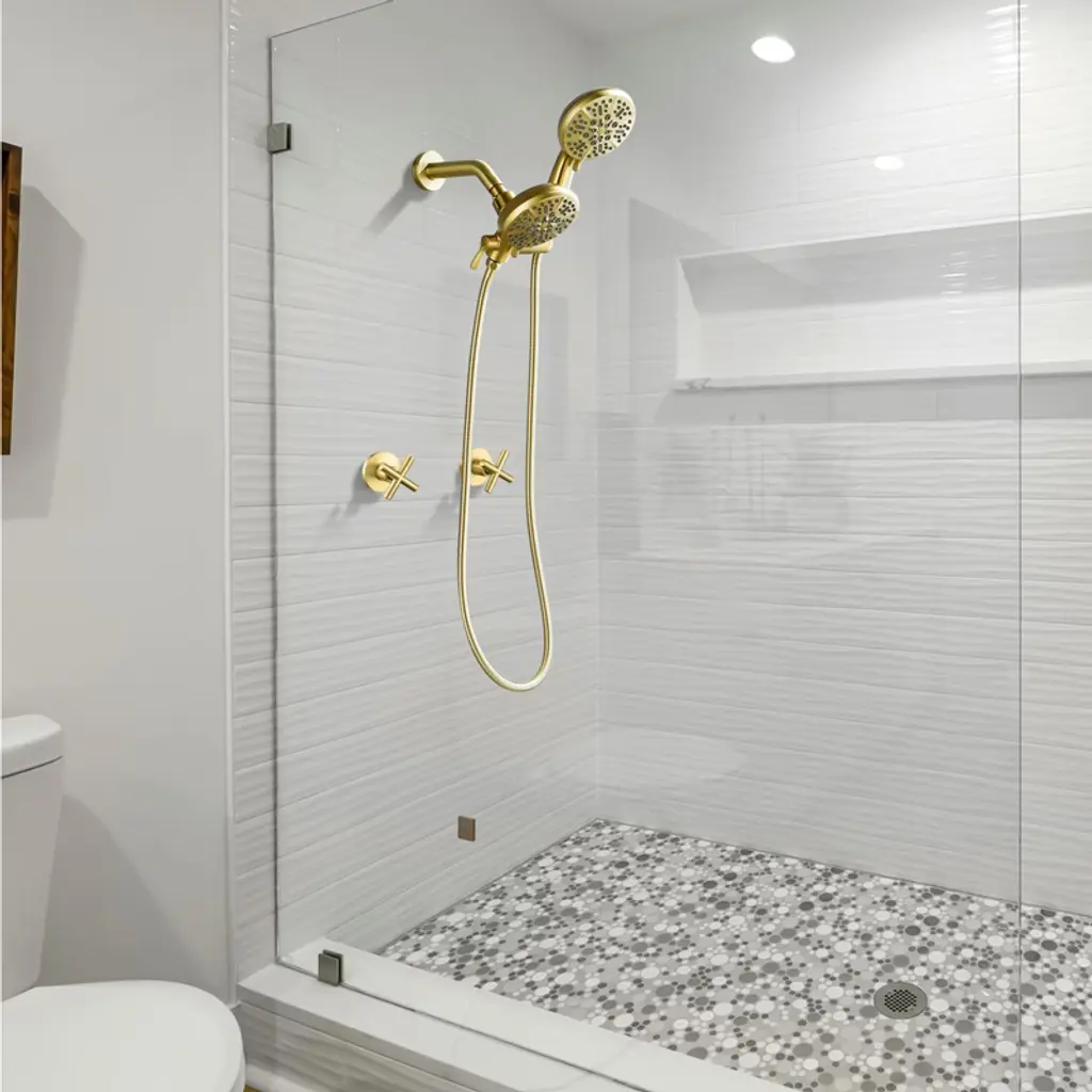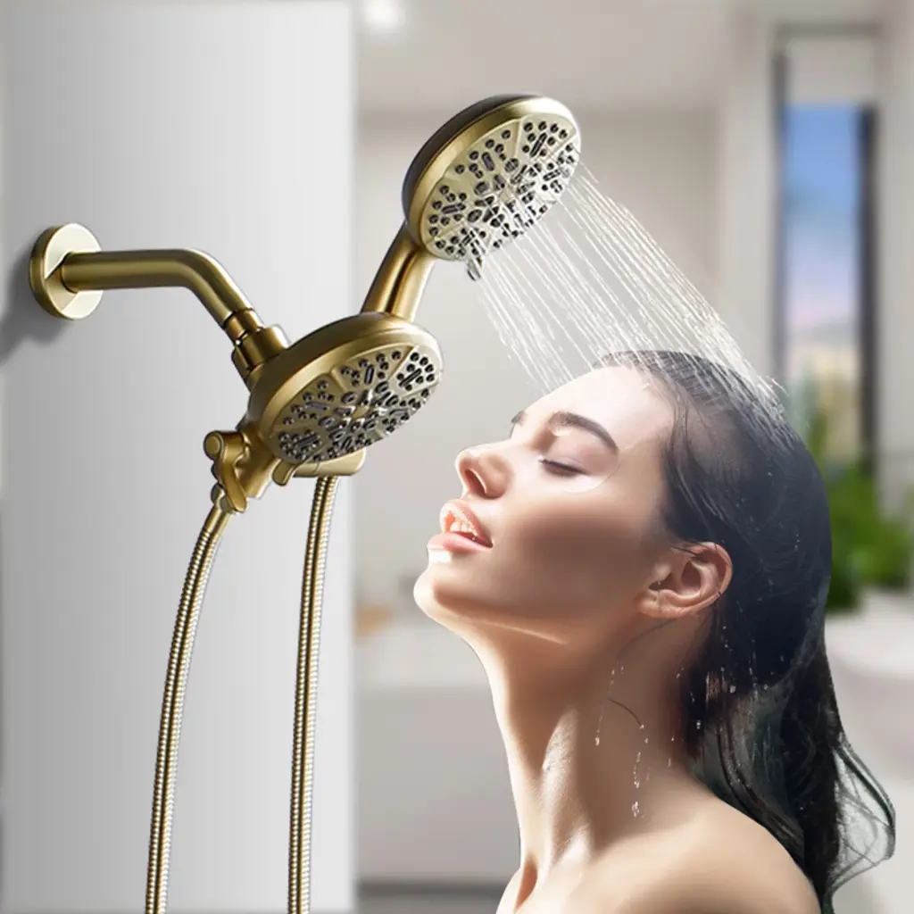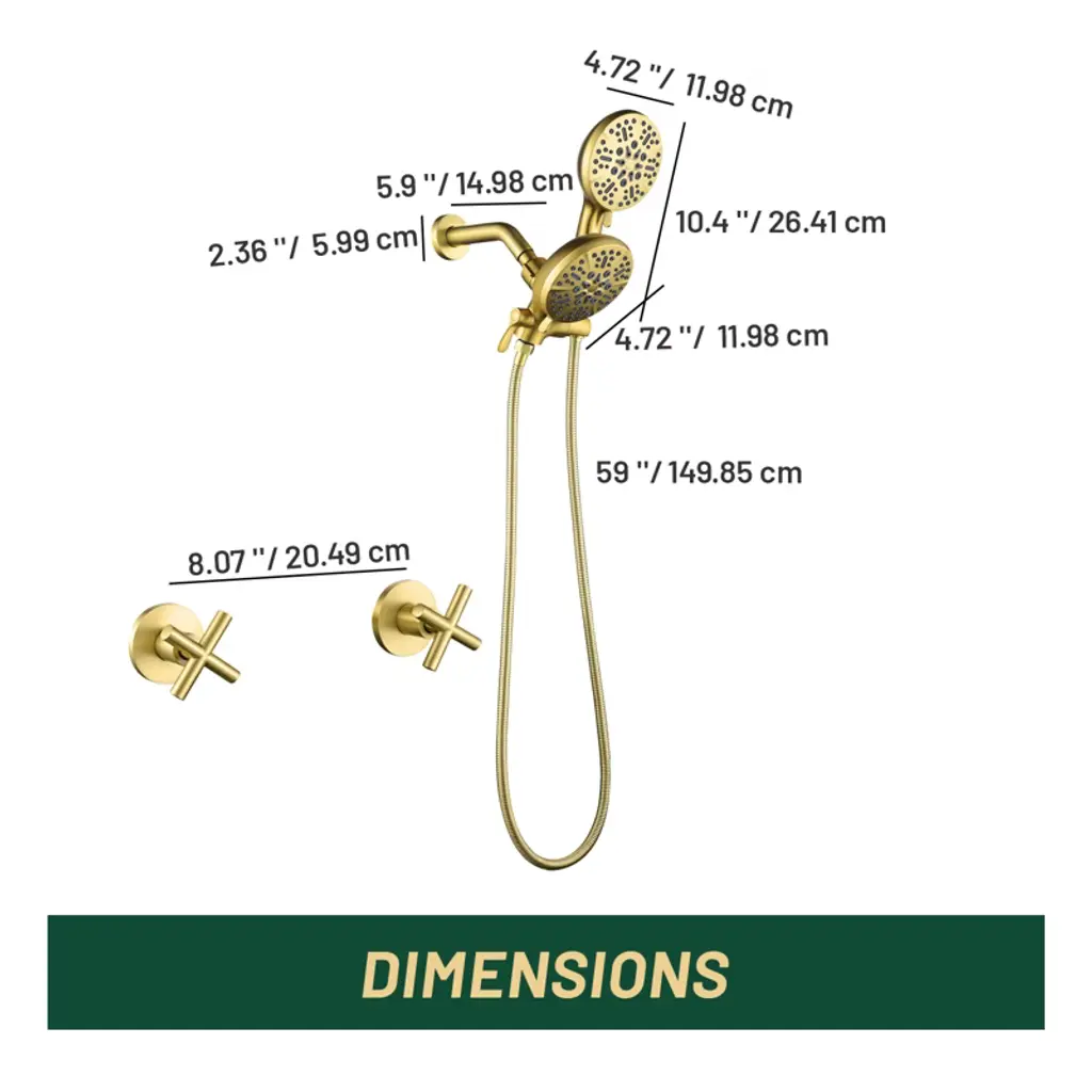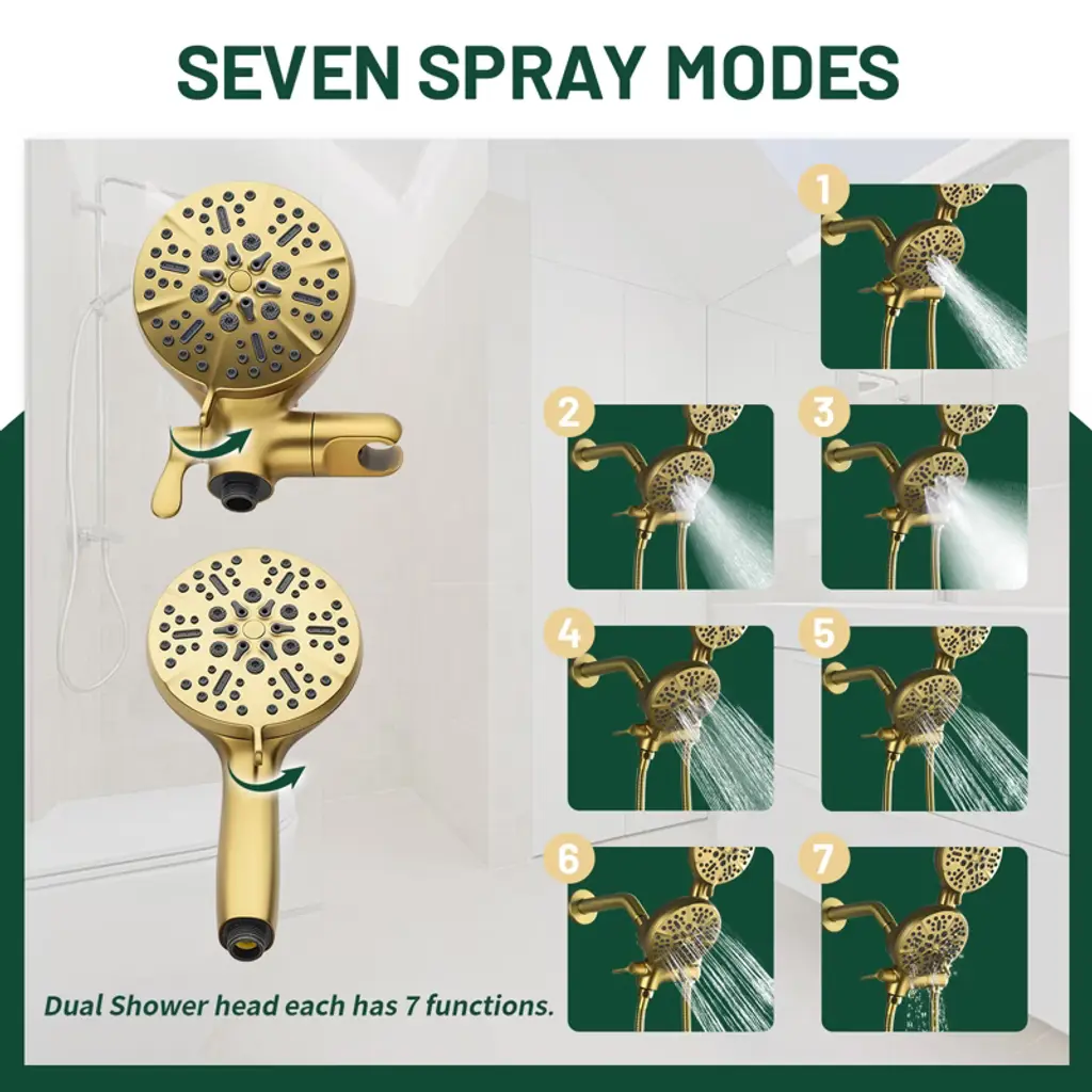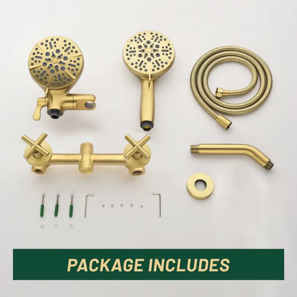 Cobbe Wall Mounted Dual Handle Shower Set With 7 Settings Abs Dual Head 2-in-1 Hand Shower And 59-inch Hose Brushed Gold