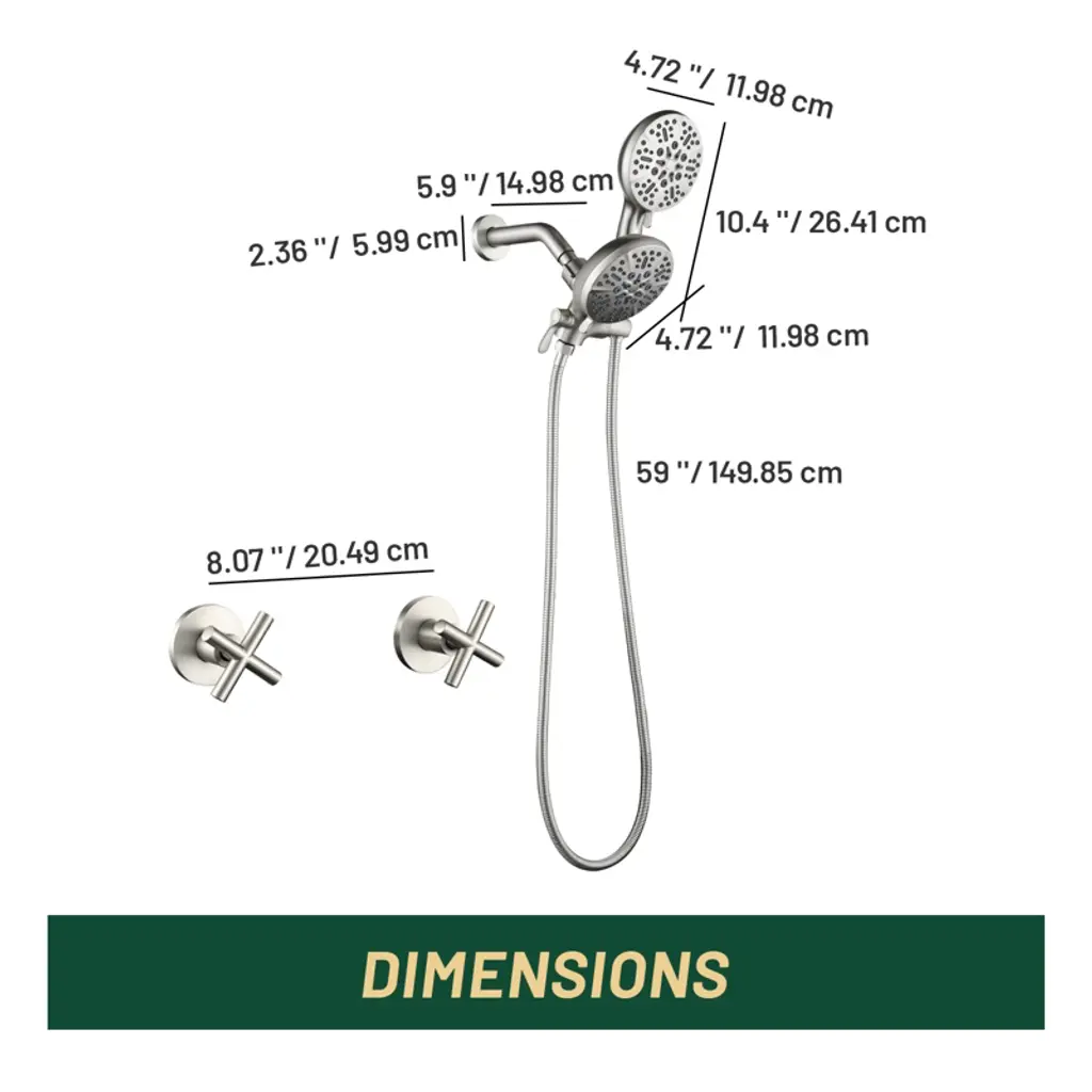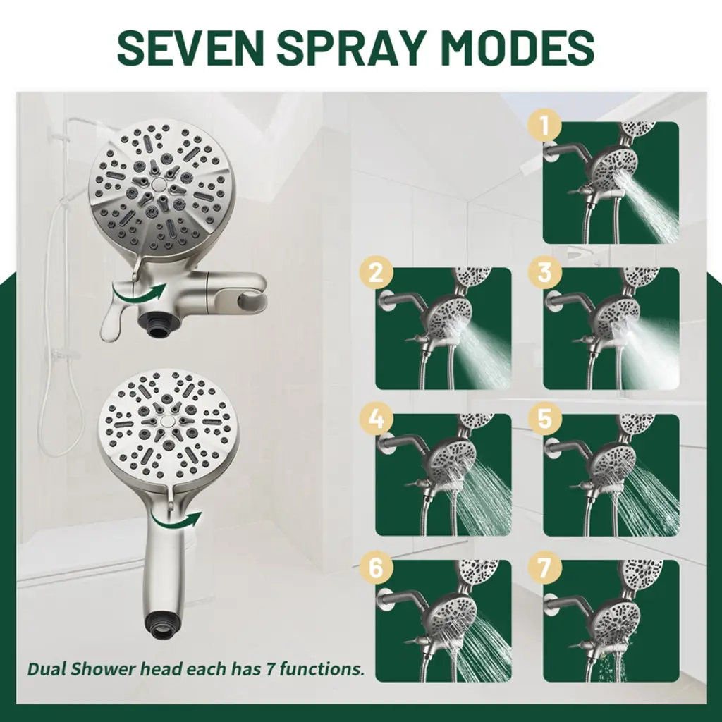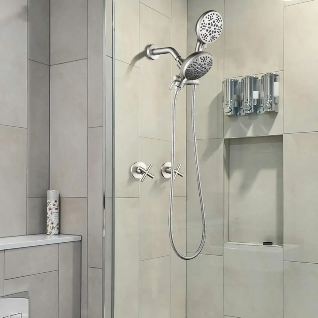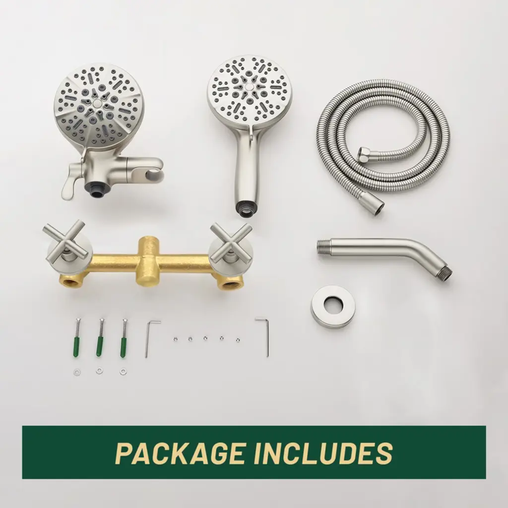 Cobbe Wall Mounted Dual Handle Shower Set With 7 Settings Abs Dual Head 2-in-1 Hand Shower And 59-inch Hose Brushed Nickel