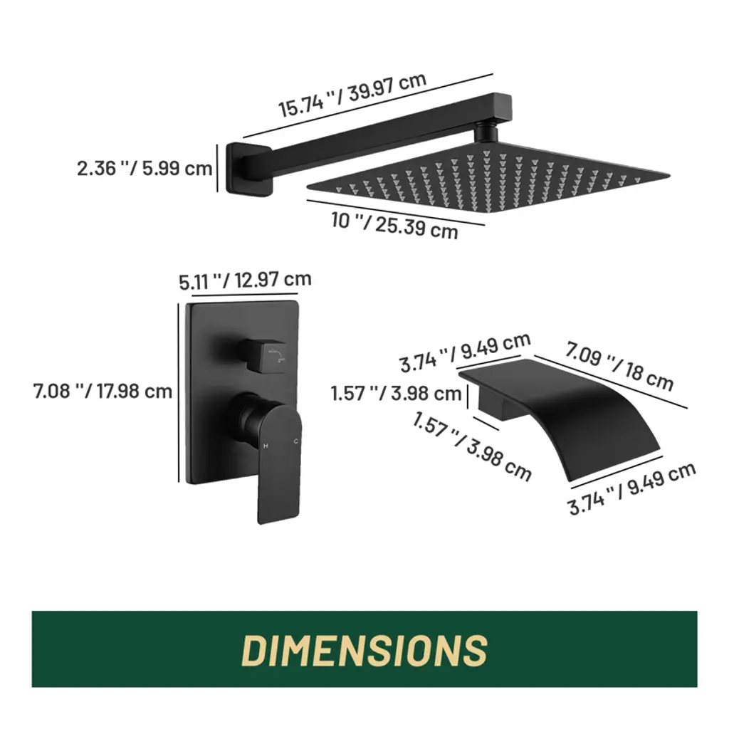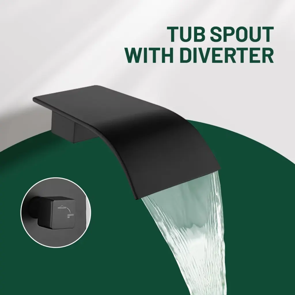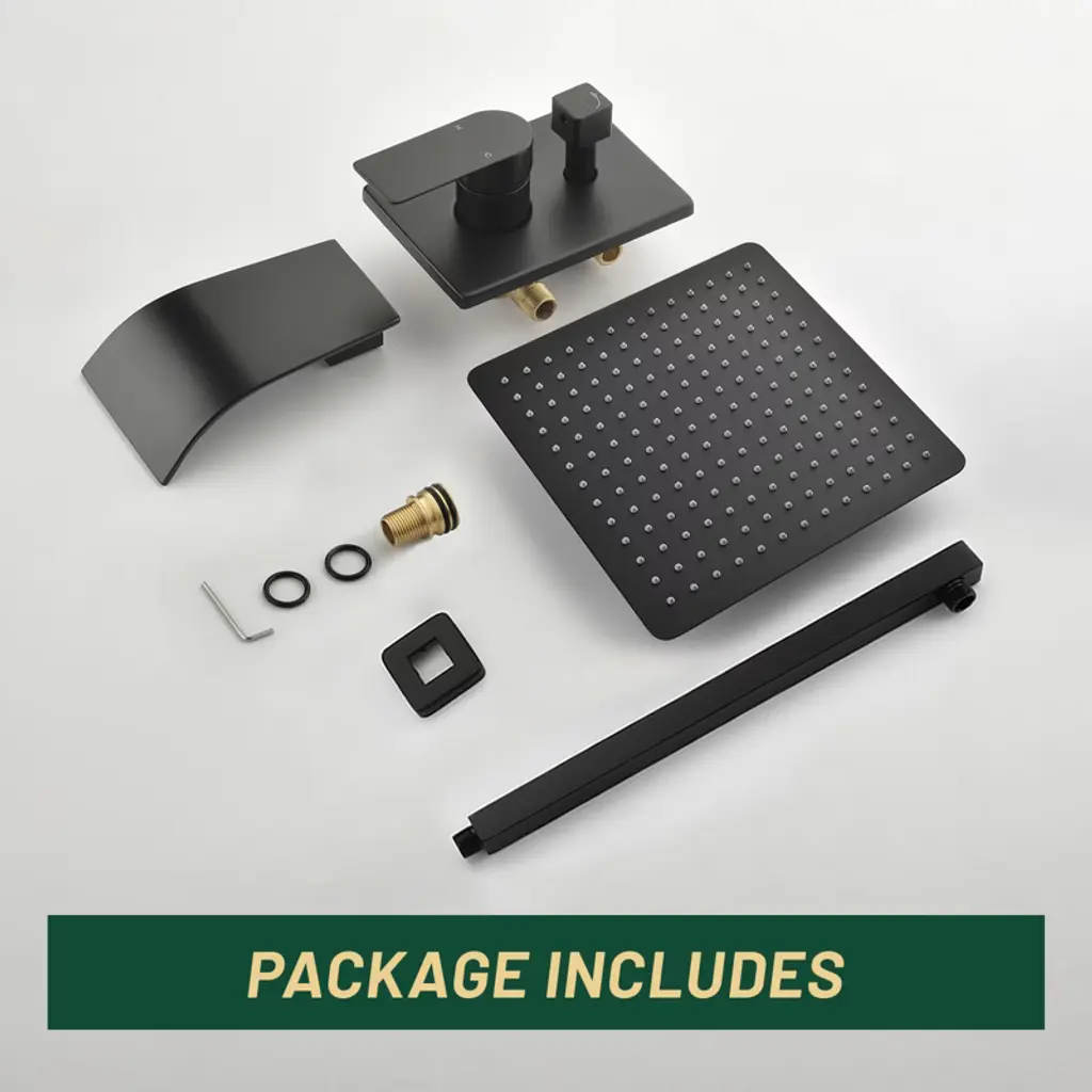 Cobbe With 10-inch Square Shower Head, Tub Spout, 15.74-inch Shower Arm Shower Faucet Set Single Handle Wall Mount Matte Black With Valve