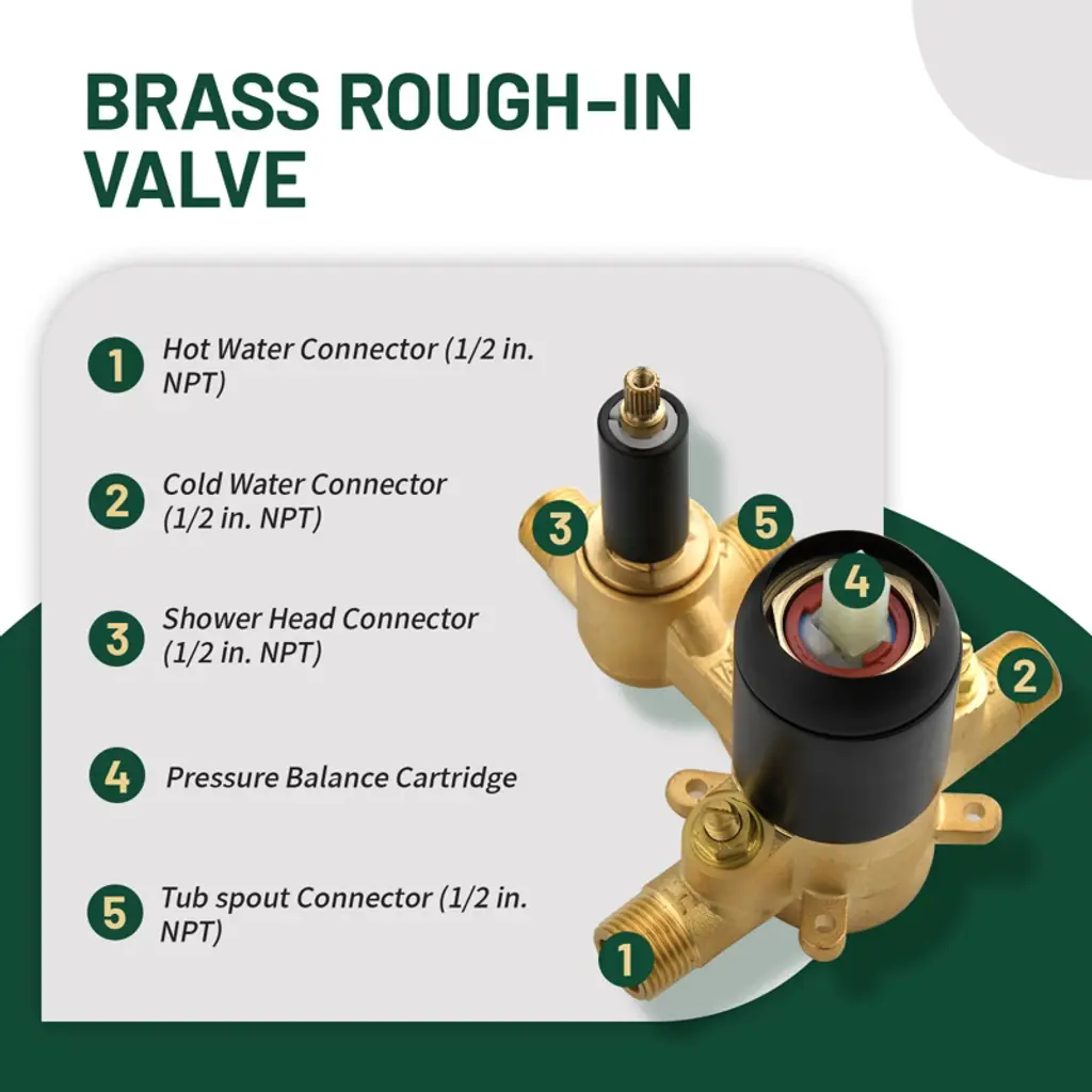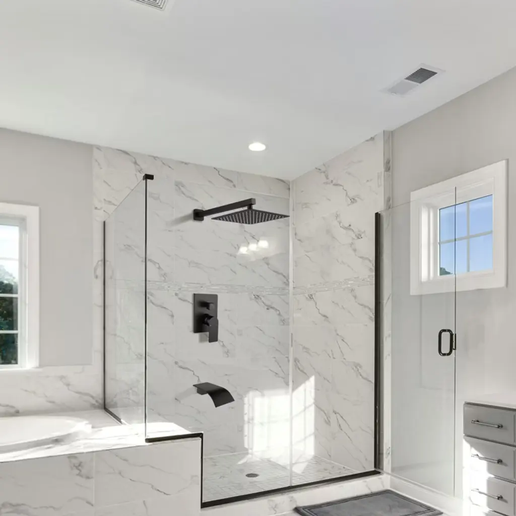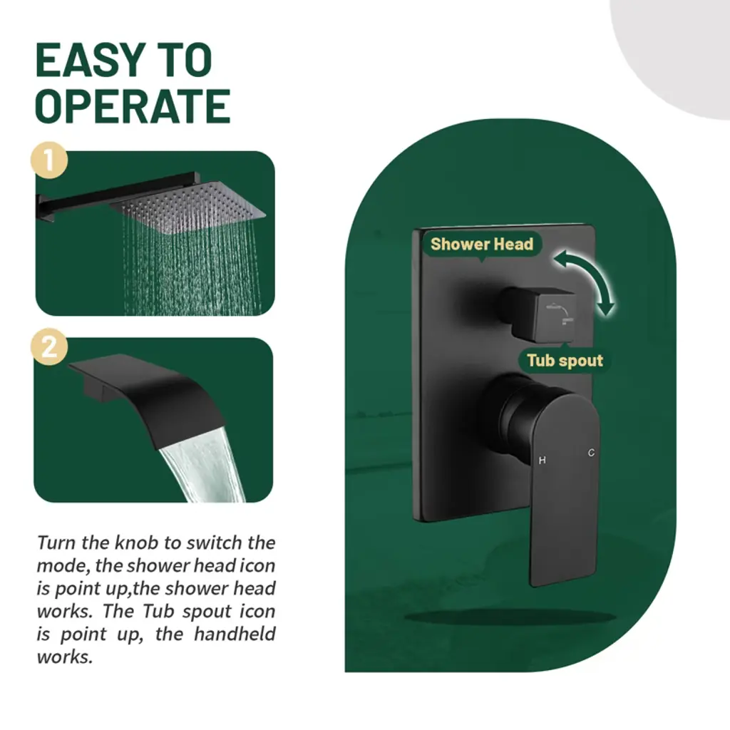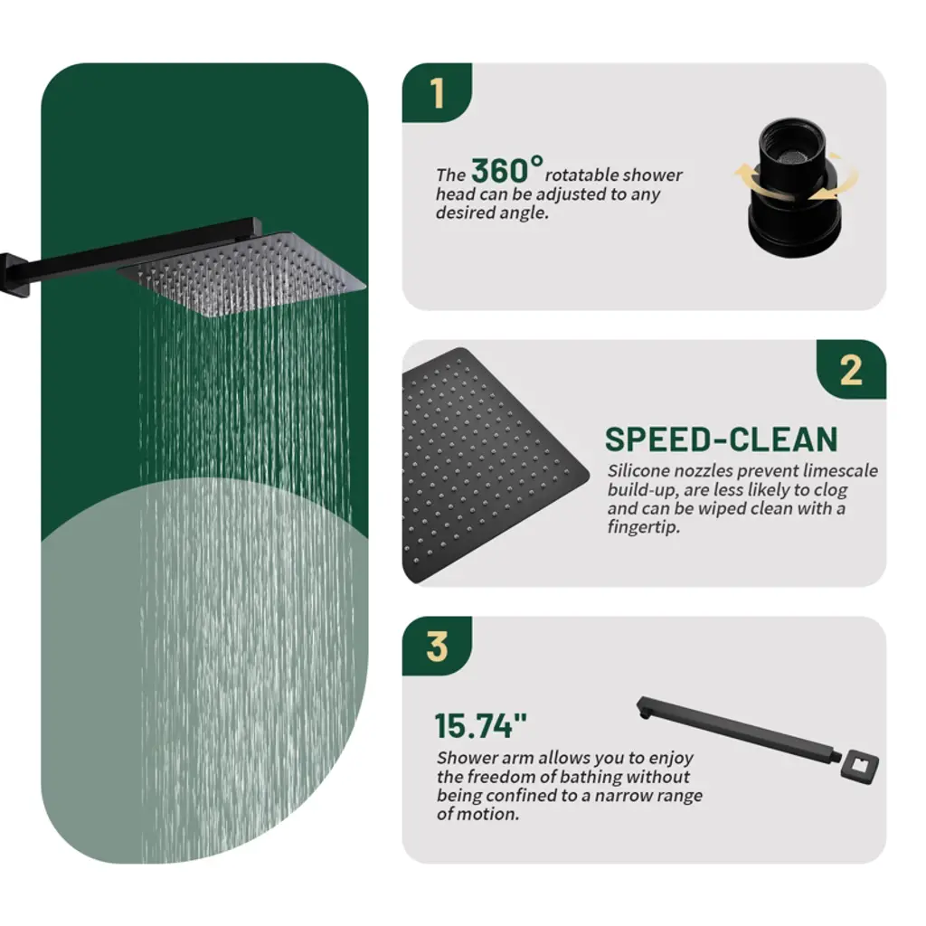 Cobbe With 10-inch Square Shower Head, Tub Spout, 15.74-inch Shower Arm Shower Faucet Set Single Handle Wall Mount Matte Black With Valve