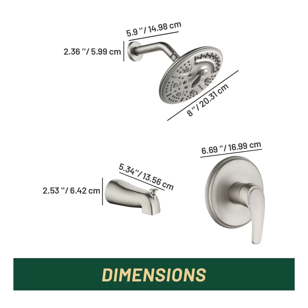 Cobbe With 6 Settings Showerhead And Tub Sprayer Shower Faucet Set Single Handle Wall Mounted Shower System With Valve Brushed Nickel