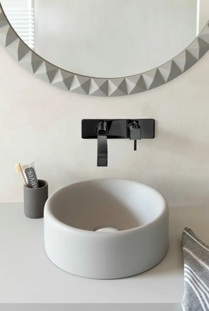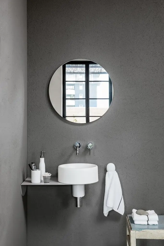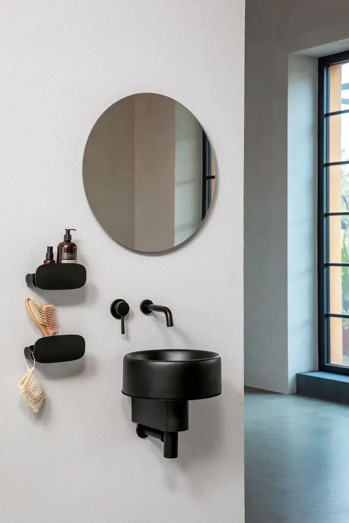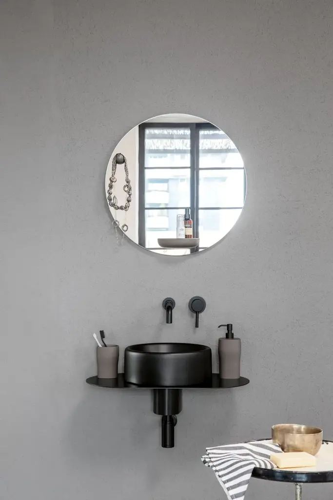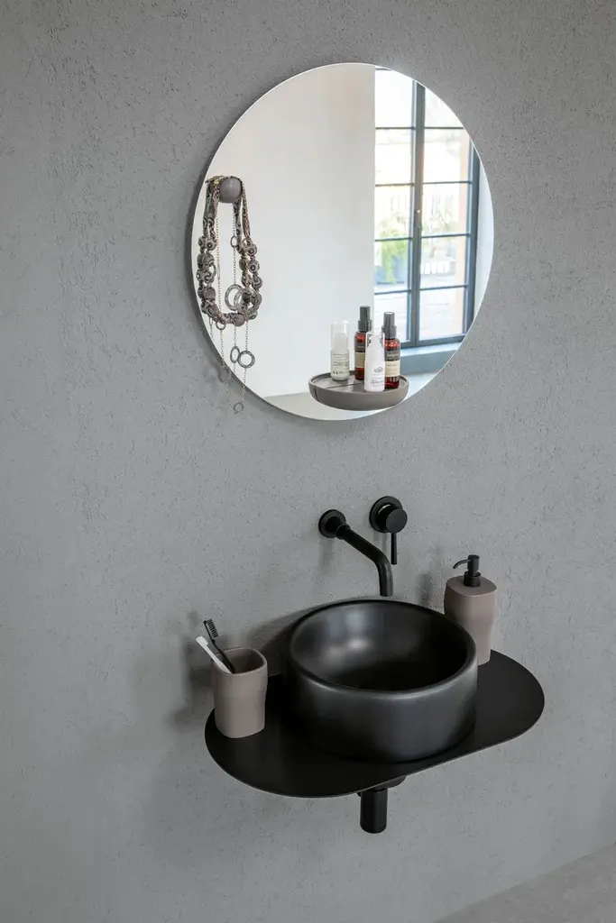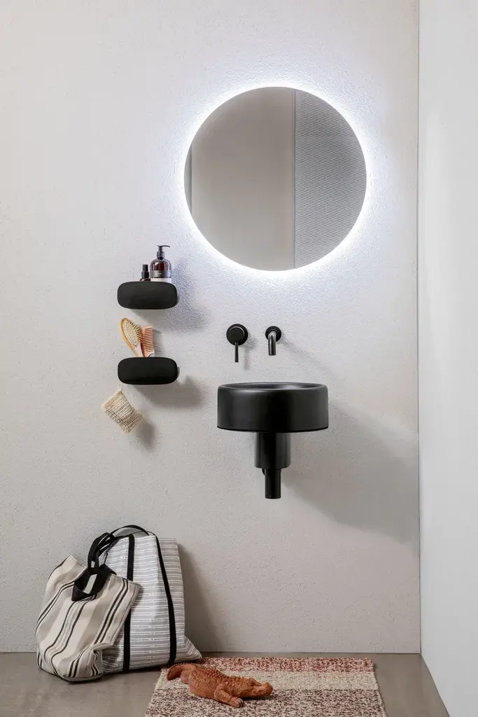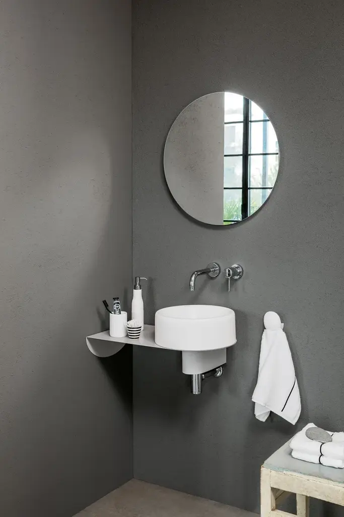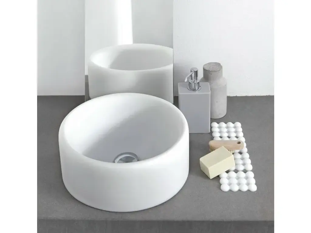 Coccola is sit-on wash basin in Stone material with chrome plated plug. The round shape and the soft sides reflects visually the planning philosophy of Geelli, that is creating items at the same time functional and pleasant to the touch, reliable and safe for the user.
