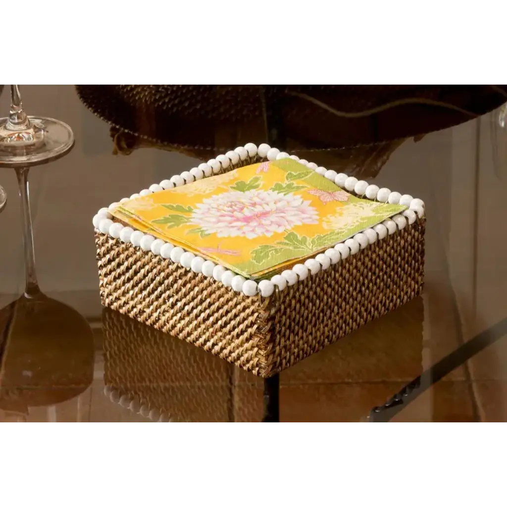 Cocktail Napkin Holder, With Beads, White, 5.5" Sq X 2.25"h