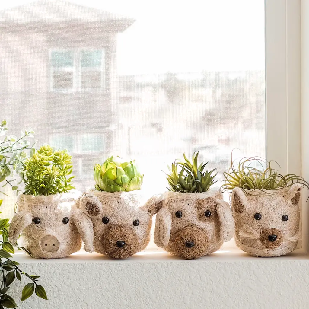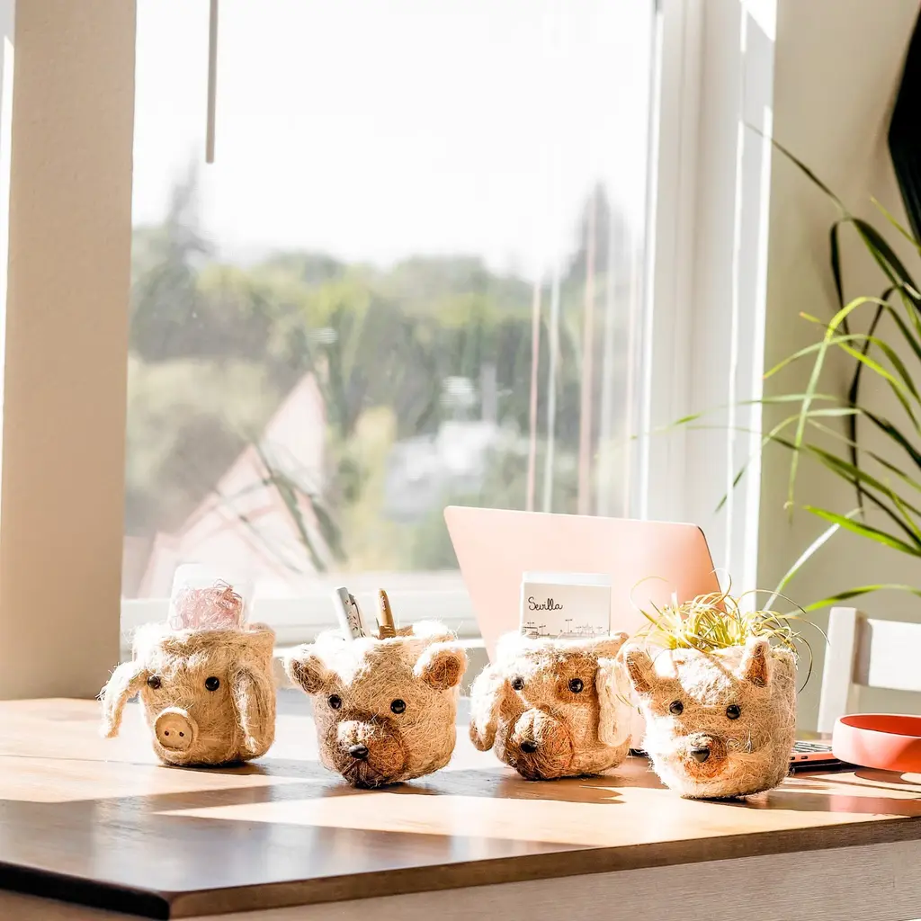 Pig Head Mini Succulent Planter - Natural Coco Coir Mini Pot