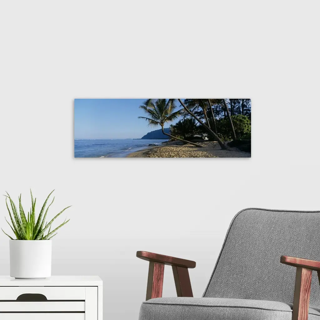 Coconut palm trees on the beach, Hawaii wall art for home and office decor. Discover canvas art prints, photos, mural, big canvas art and framed wall art in GreatBigCanvas.com's varied collections.