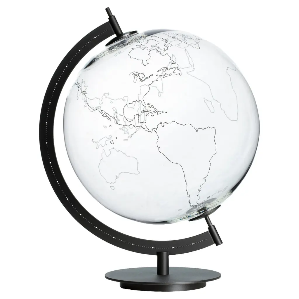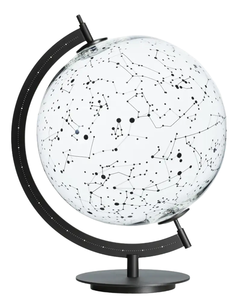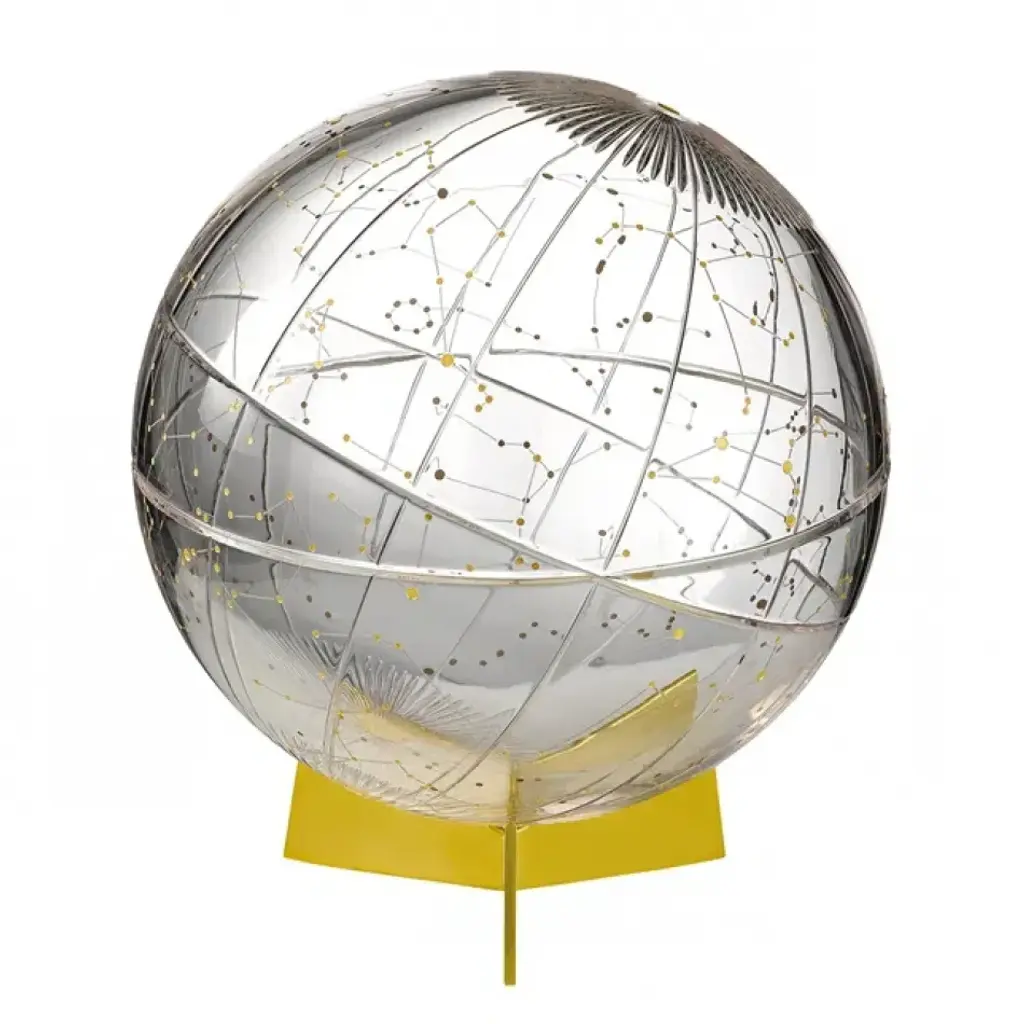 Ground globe and the Mod. Sky stellar map, two objects complementary as only Sky and Heart can be, where the transparent glass allows looking at the world and the stars in their entirety, overlapping far places close in the blink of an eye, underlining both their similarities and differences. Gio Tirotto challenges the geographic logic through these objects in which distances are nullified and infinite points of view coexist creating a whole new imagination.