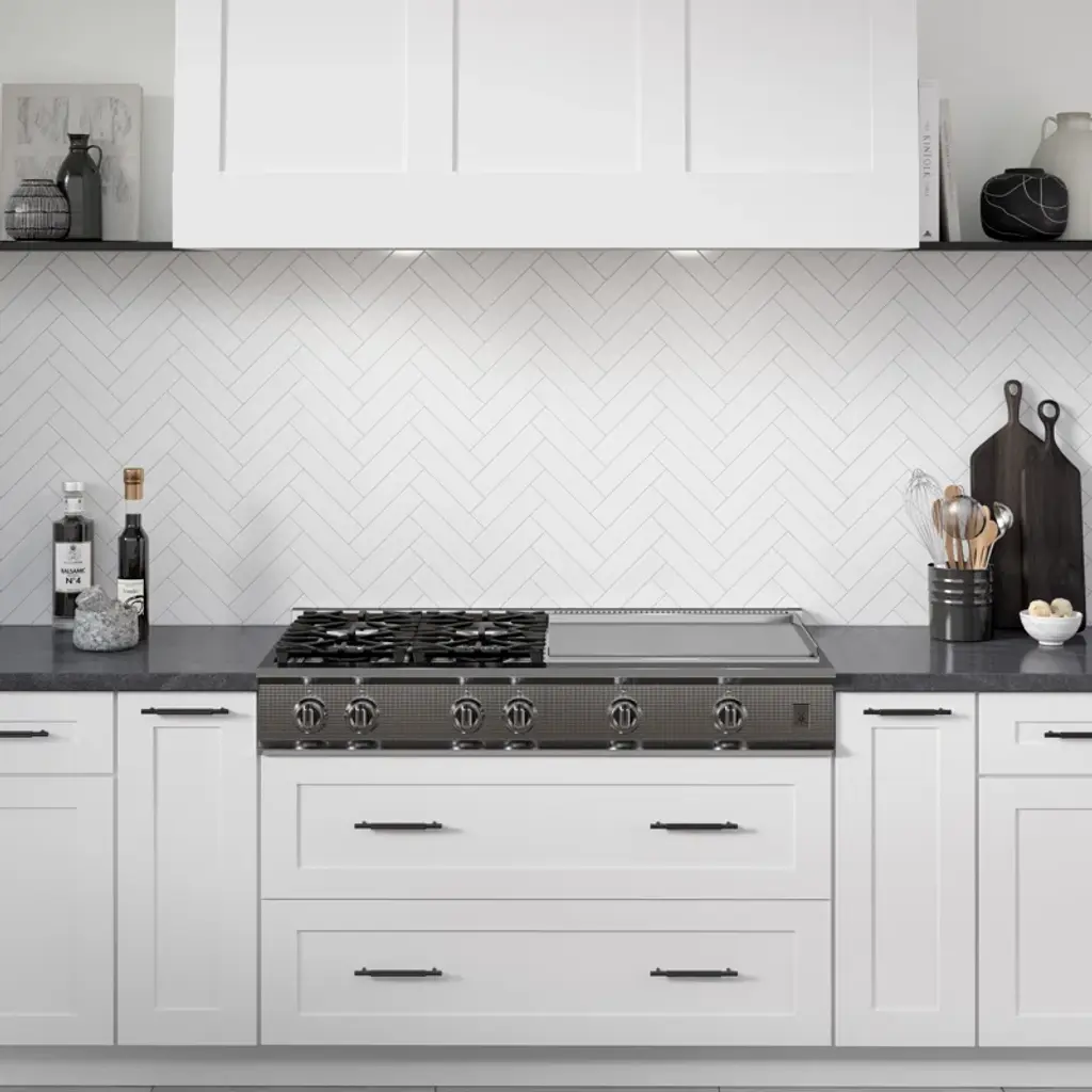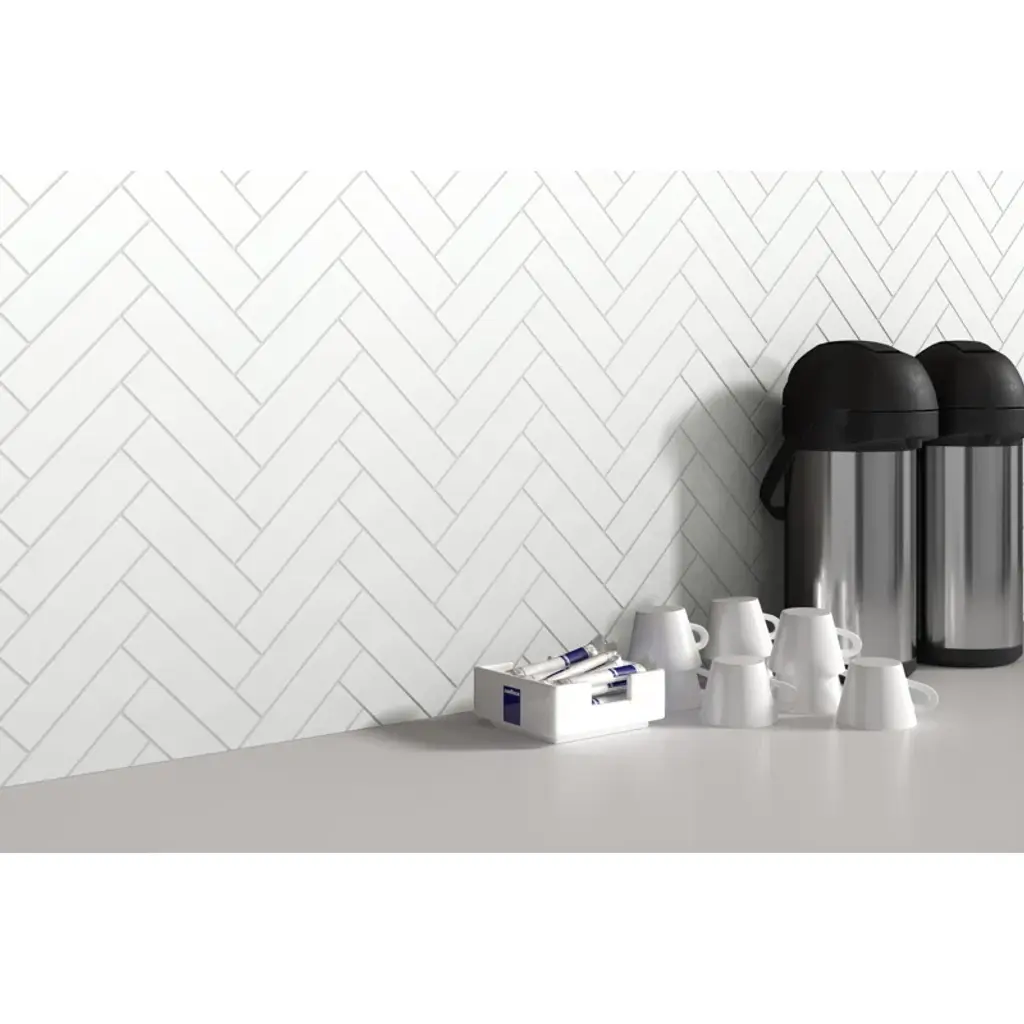 Connectivity is at the heart of Cognito decorative ceramic mosaic tile. Smooth and versatile, the slim take on classic subway tile offers a familiar shape elevated to offer design options that deliver backsplashes that feel like focal points. Whether tiles connect in a classic offset or stylish herringbone, it’s a design staple.