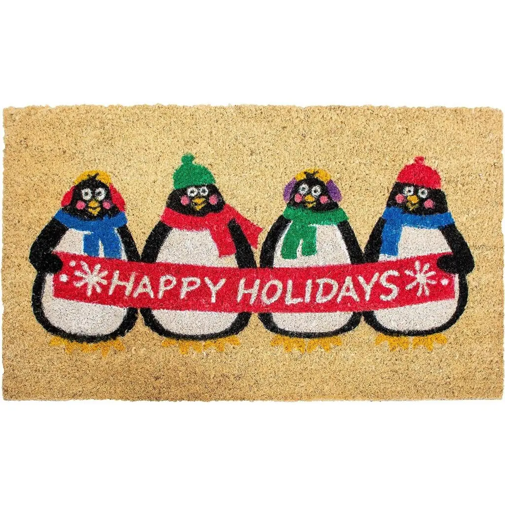 Featuring vibrant hues and lovely playful accents, the Quadruple Snowman - Joyeux Noel Coir Door Mat makes a classy and elegant addition to your living room. Crafted from coir, this Christmas door mat possesses a coarse nature and is naturally absorbent. You can place it at the center or side of your living room and brighten up your space during the festive season. This super-charming decorative door mat is sold on a per-piece basis. Design: Coir Door Mat with Quadruple Snowman - Joyeux Noel Material: Coir Dimension: 16 L x 48 H Use: Ideal for use in living room Care Tip: Clean with a carpet cleaner