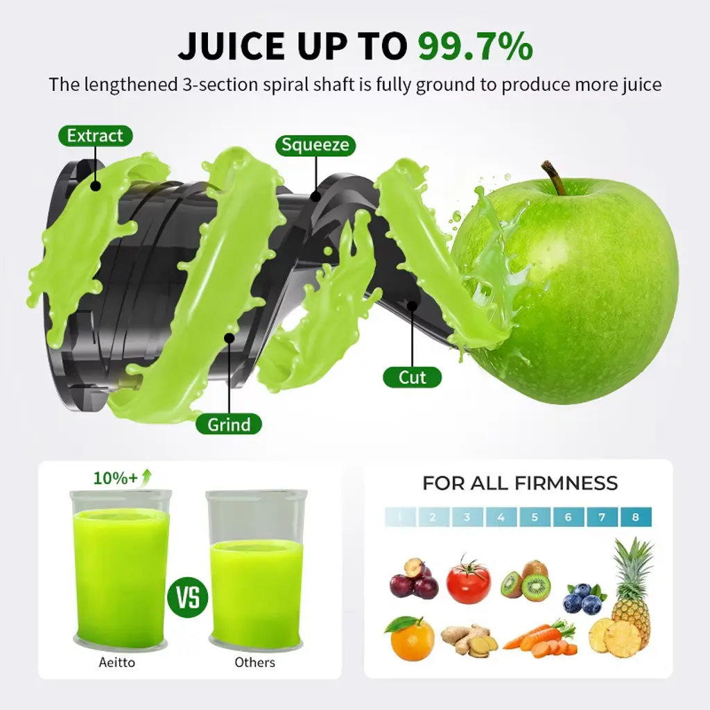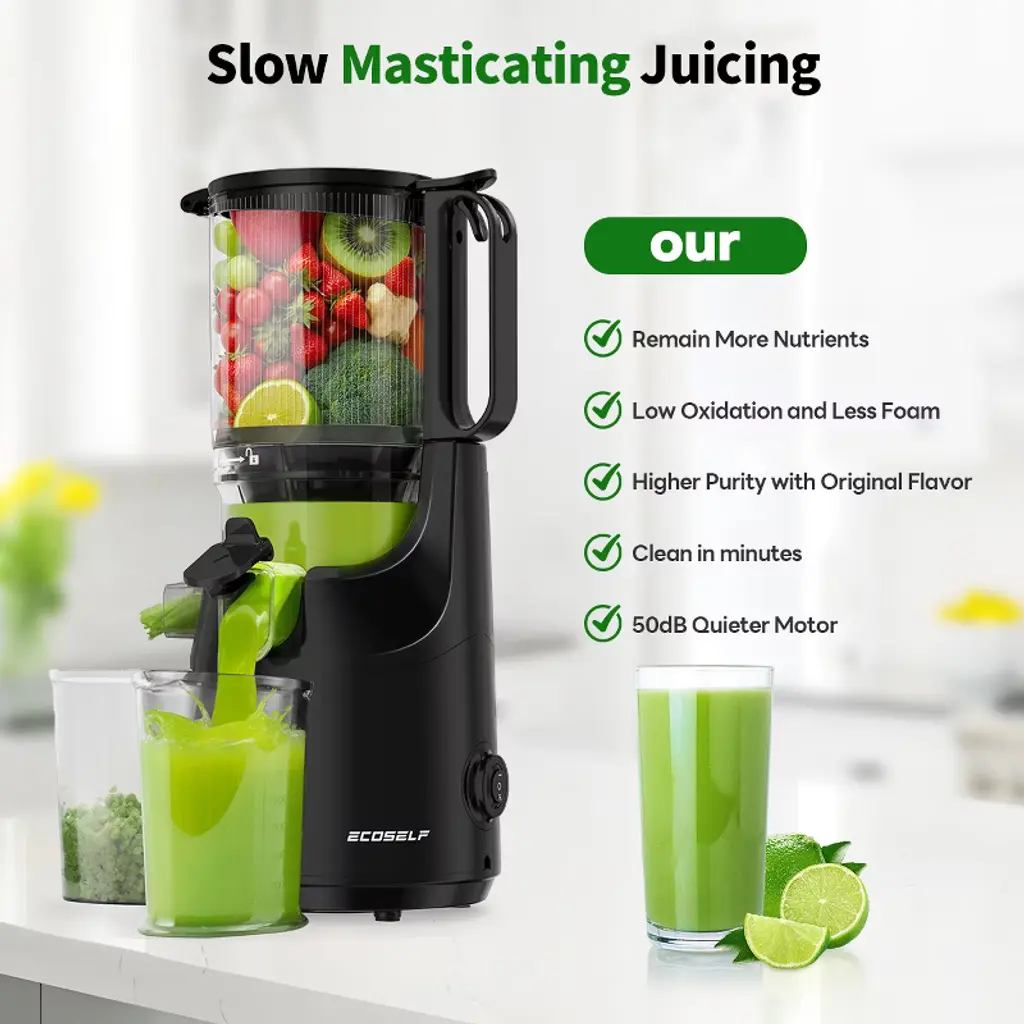 Enjoy Healthier, Fresher Juice with Less Effort! Upgrade your juicing routine with the Ecoself Cold Press Juicer, designed for maximum nutrient retention, ease of use, and powerful performance. Whether you're a health enthusiast or a busy family, this slow juicer delivers higher juice yield, richer flavor, and minimal prep time—all while preserving essential vitamins and enzymes.