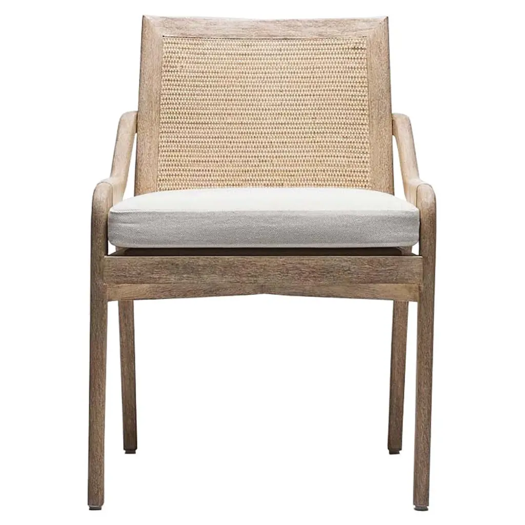 A blend of solid teak wood and woven wicker give this outdoor armchair a salt-of-the-earth or coastal style that's just right for your patio. This outdoor chair is made with a naturally weather-resistant solid teak wood frame. The back and sides are made from all-weather wicker in a textured brown finish. This patio chair is topped with a foam-filled seat cushion with a machine-washable zip cover in an easy-to-match, off-white color. To care for the teak wood, we recommend you oil it to maintain its natural color or let it weather into a classic Colden gray.