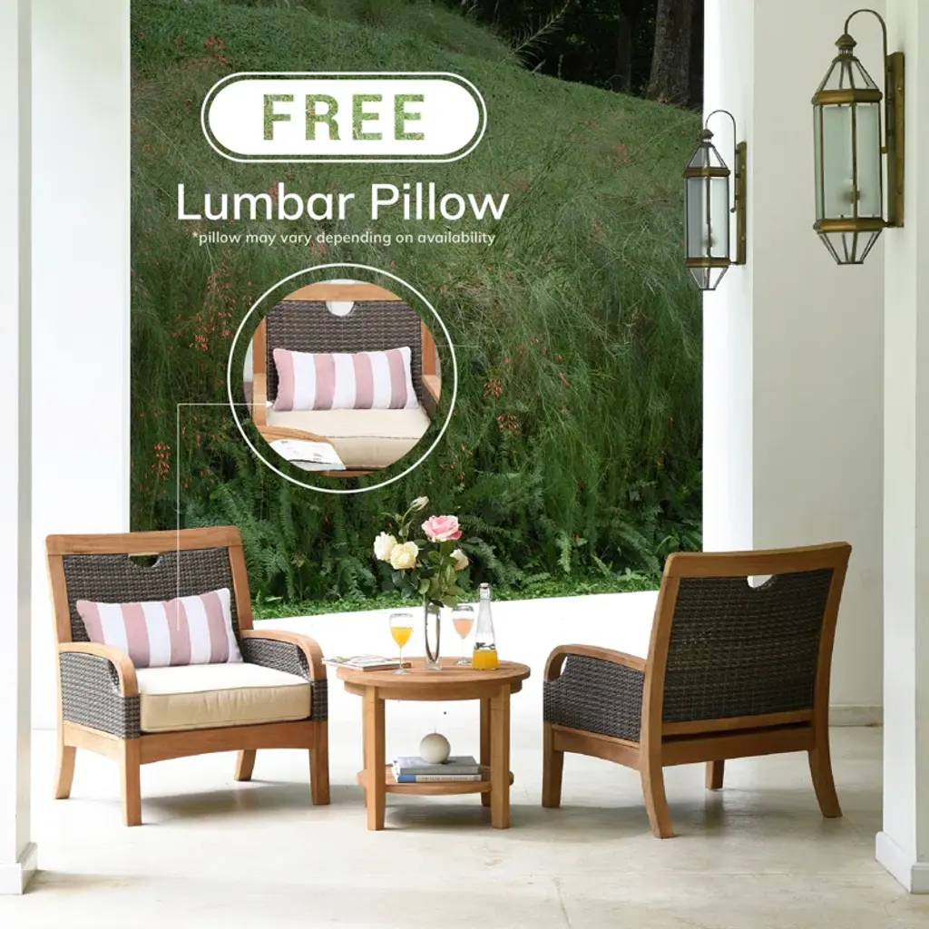 Create a cozy and inviting outdoor space with this two-seater conversation set. The chairs are designed with a comfortable lounge style, featuring weather-resistant wicker frames and plush foam-filled cushions upholstered in a polyester blend. The solid teak wood table adds a touch of natural elegance and provides a convenient storage spot for your favorite outdoor essentials. This set is perfect for intimate gatherings, weekend relaxation, or just enjoying a cup of coffee with a loved one. So, sit back and enjoy the great outdoors in style.