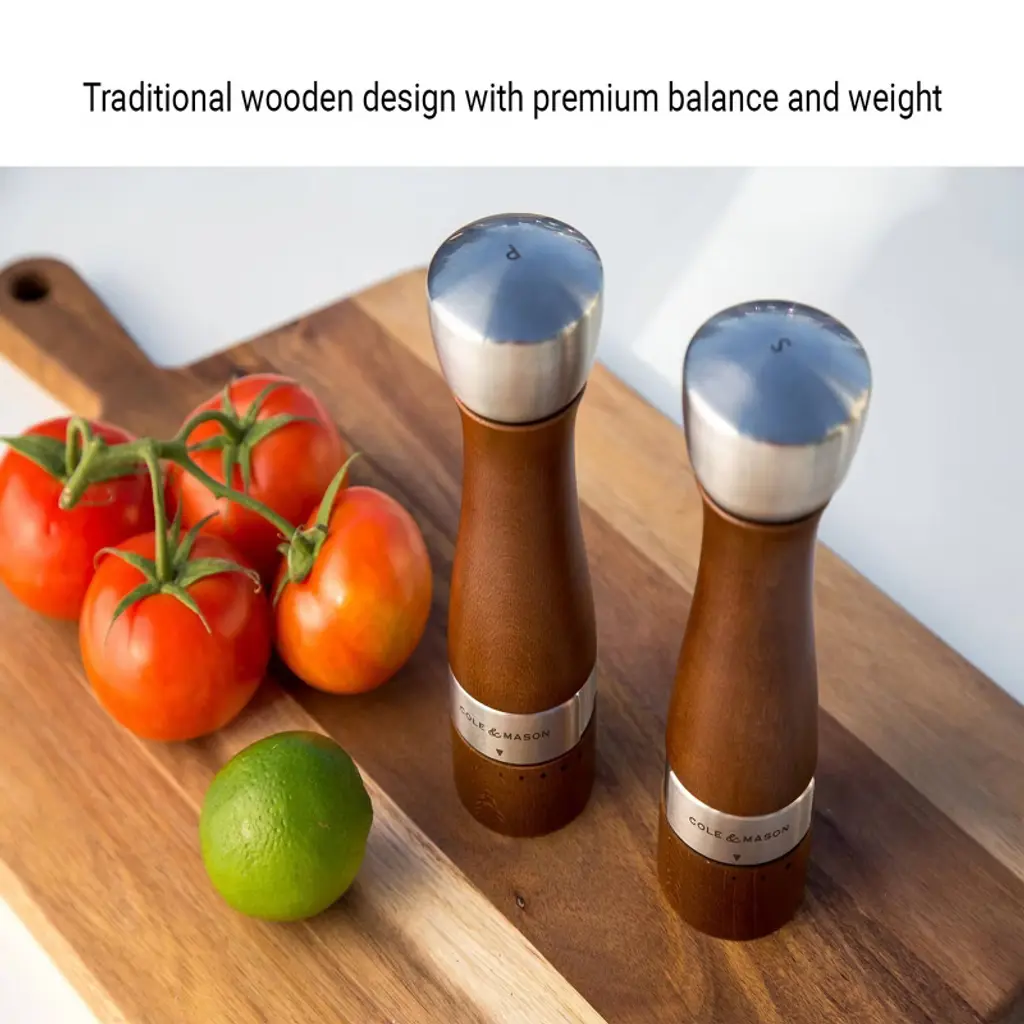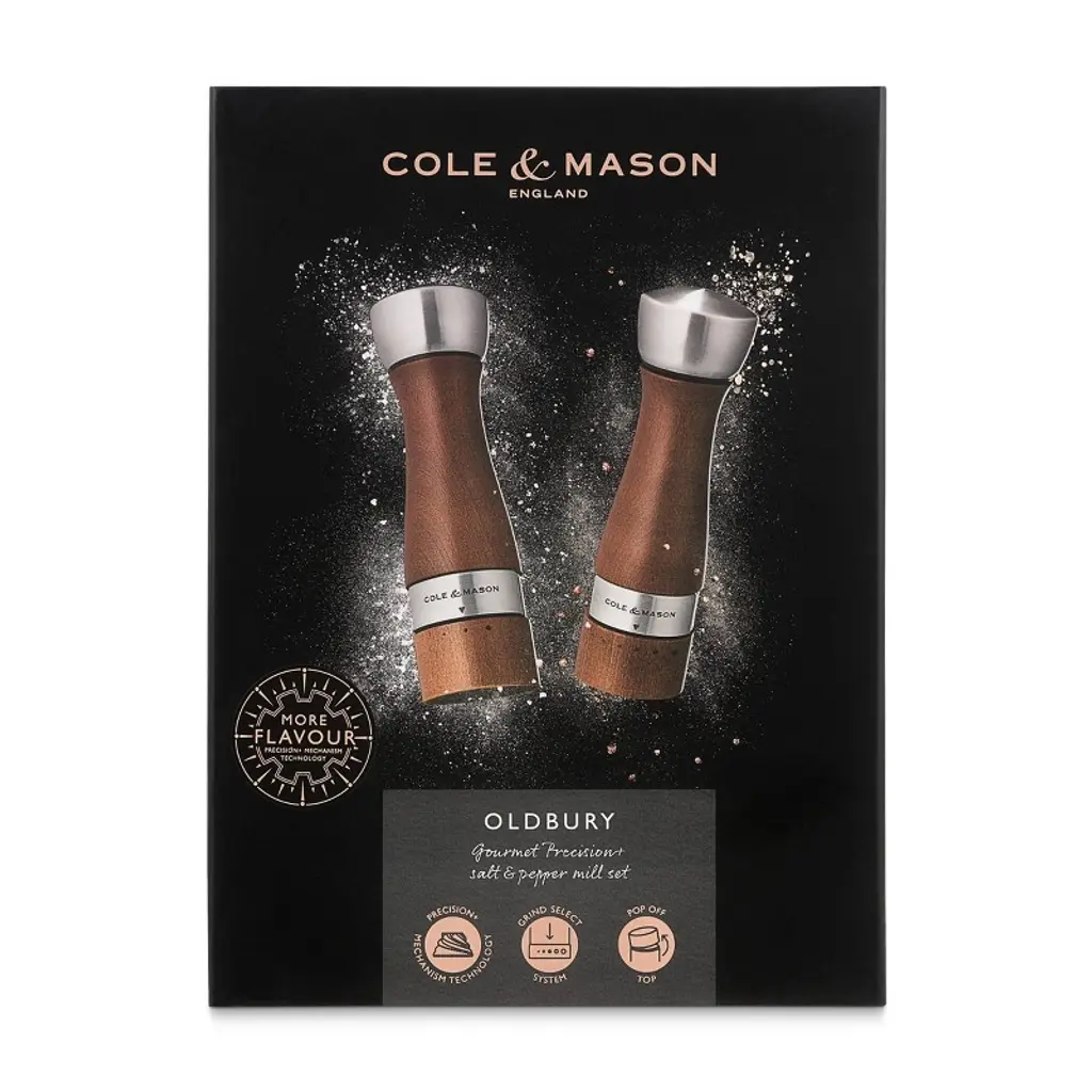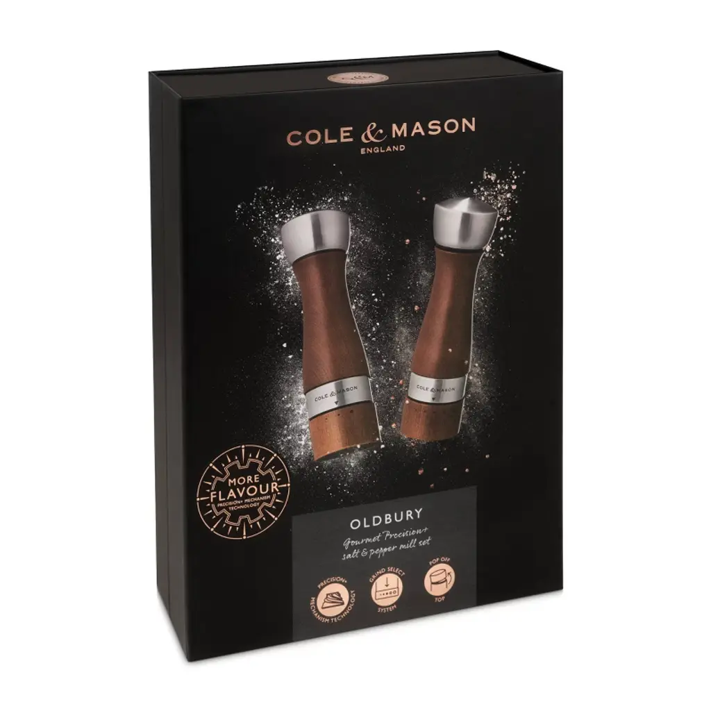 Cole & Mason 7.48" 2Pc Beechwood/ceramic/steel Oldbury Gift Set Brown/silver: Pepper Grinder, Spice Mills