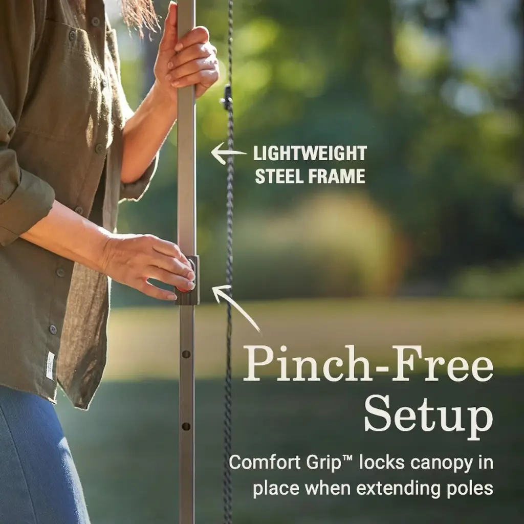 Introducing the lightweight, portable designs of OASIS Lite canopies—perfect for kicking back at the campsite or tossing the frisbee in the park. The OASIS Lite 10 x 10 Canopy with Sun Wall sets up easy using a one-push center hub with OnePeak technology for wherever the adventure takes you. Sometimes a little extra shade or wind protection is just what you need, so we made the sun wall easy to clip on any side. When it's time to pack up, the lightweight steel frame makes pulling the canopy to and from the car a breeze using the wheeled carry bag.