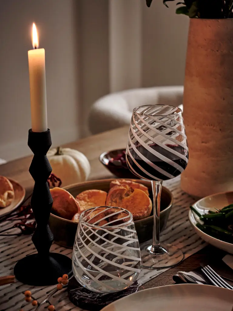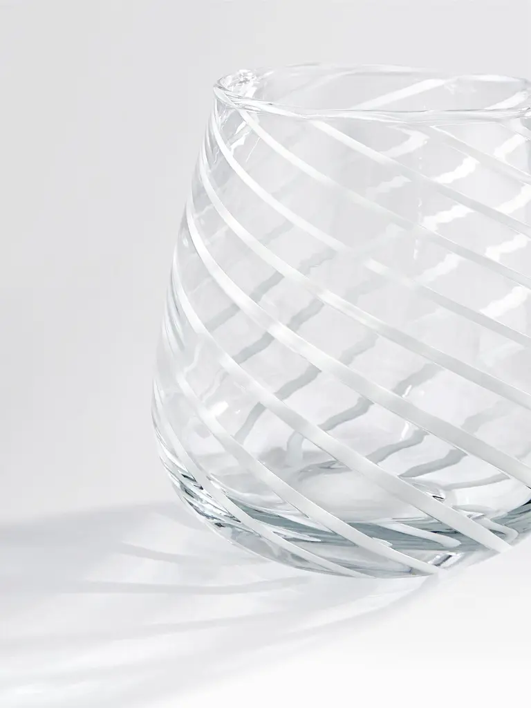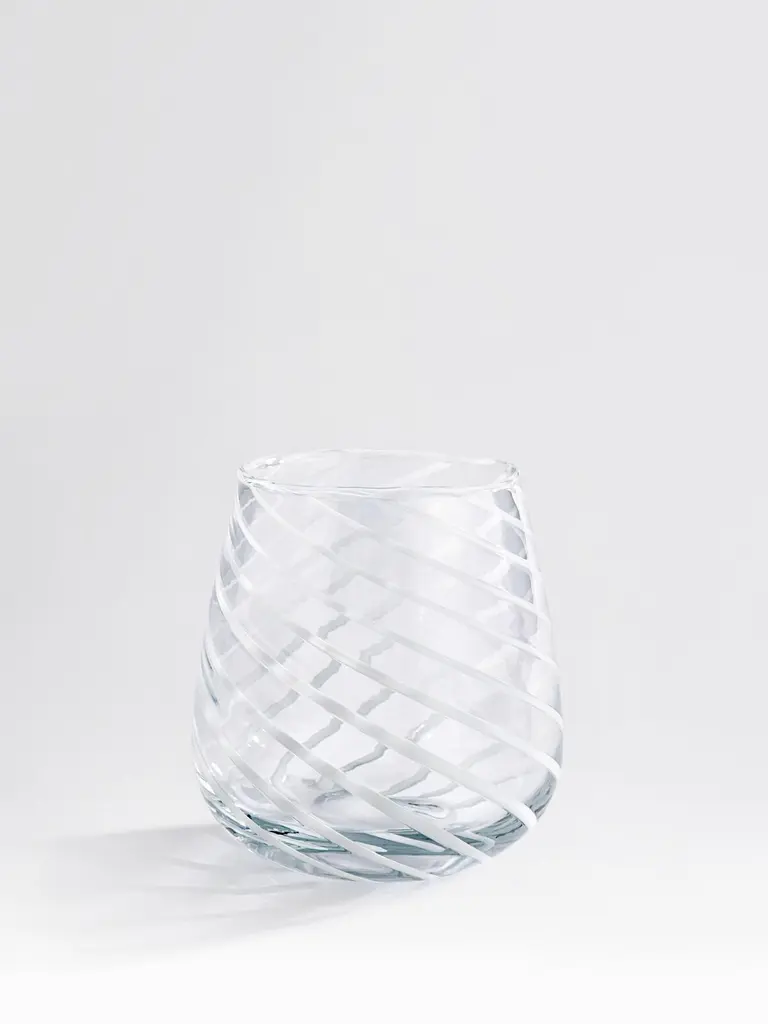 Our Coletta lowball tumblers are made for enjoying a long refreshing soft drink or cocktail with friends, the Soho House way. Inspired by the traditional 1960s white swirled glass lighting fixtures found in Soho House Rome and crafted from blown glass, the Coletta glassware adds a fun twist to the traditional dining tablescape.