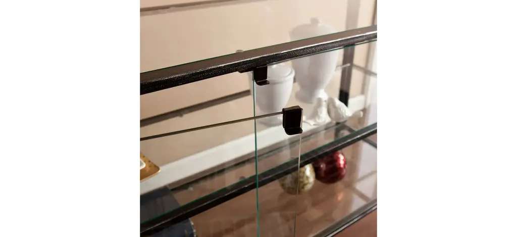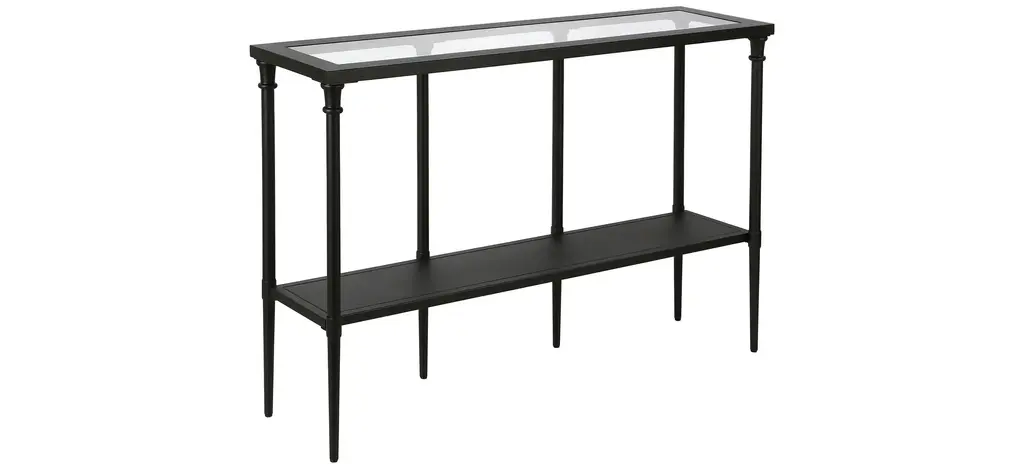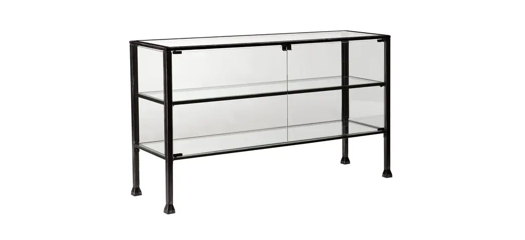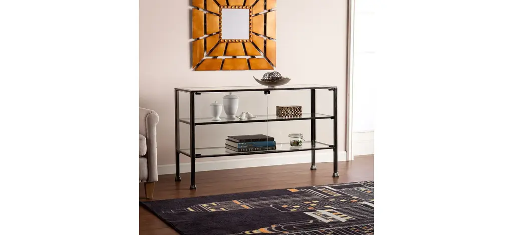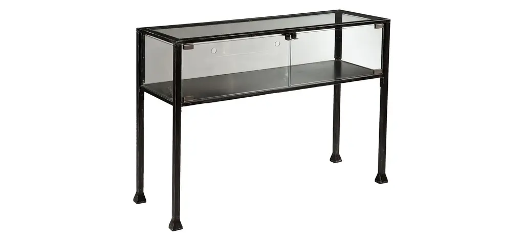 Sleek is as sleek does with the Colgan Terrarium console table. Black frame with silver distressing and glass panels evoke minimalist design, complementing every style of dcor. Showcase a green thumb sans heat and outdoor mess and display indoor gardens, or strut your memorabilia and mementos for all to see.