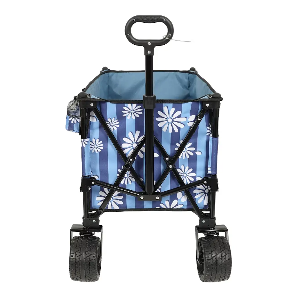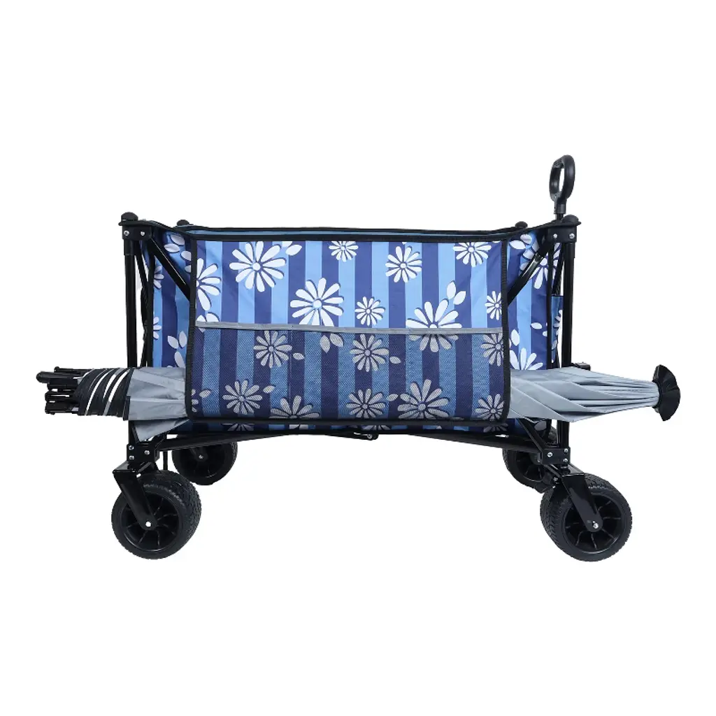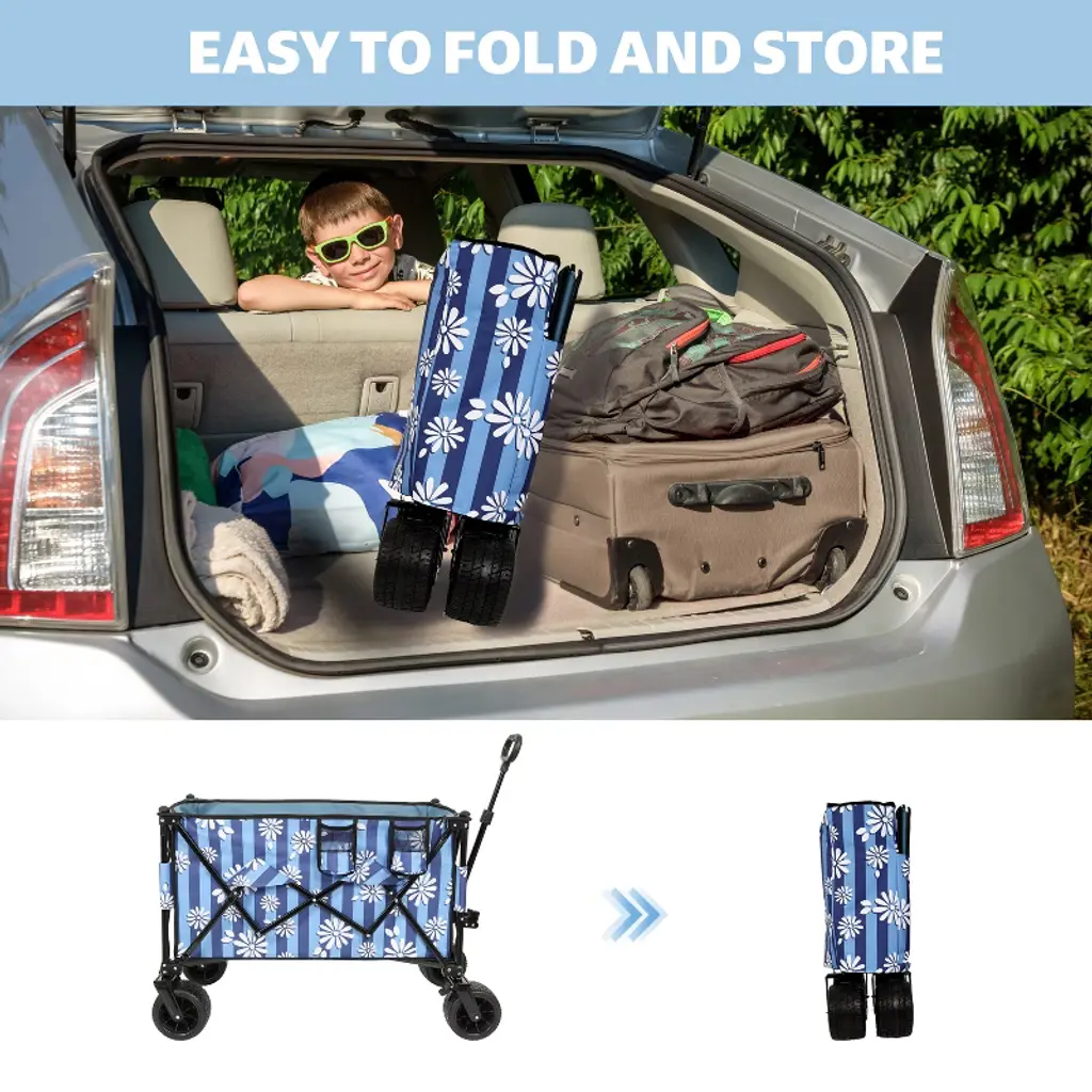 Collapsible Foldable Extended Wagon, 480lbs Weight Capacity, W/ Big All-terrain Beach Wheels & Drink Holders, Side Pocket And Brakes, Mosquito Net