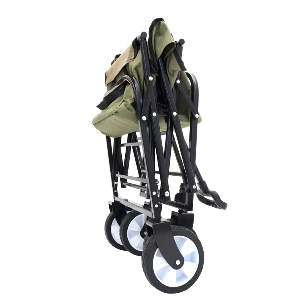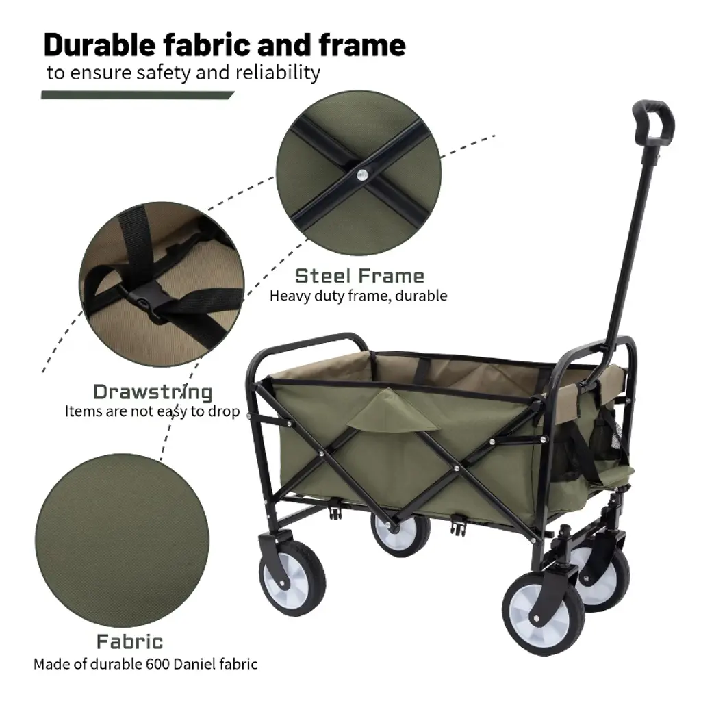 Collapsible Foldable Wagon Cart Beach Wagon Heavy Duty Utility Cart For For Camping With 3Pcs Plastic Liner Bag Green