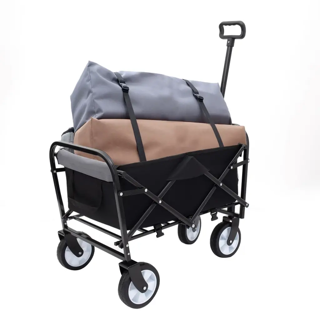 Add 100% Extra Space, Exclusive Dual-Layer Design, Our innovative cart features a unique dual-layer fabric pocket that can be opened to expand storage capacity, while the drawstring closure keeps small items secure and prevents them from falling out.Lightweight and Compact: Weighing only 13.5 lbs, this wagon is incredibly lightweight, making it easy to carry and transport. When folded 17.0 "x6.69" x 24.8", it takes up minimal space, perfect for easy storage and travel.Heavy-Duty Frame: Built with a reinforced, thickened frame, this wagon is designed for durability and stability, complete with a rust-resistant powder-coated finish for long-lasting use.All-Terrain 360-Degree Swivel Wheels: Equipped with 6-inch wheels that can rotate 360 degrees, this cart is perfect for navigating various terrains, making it easy to maneuver on any surface.Versatile Utility: Ideal for a wide range of activities, from gardening and picnics to shopping and beach outings, this collapsible wagon cart adapts to your needs, providing convenience and efficiency.