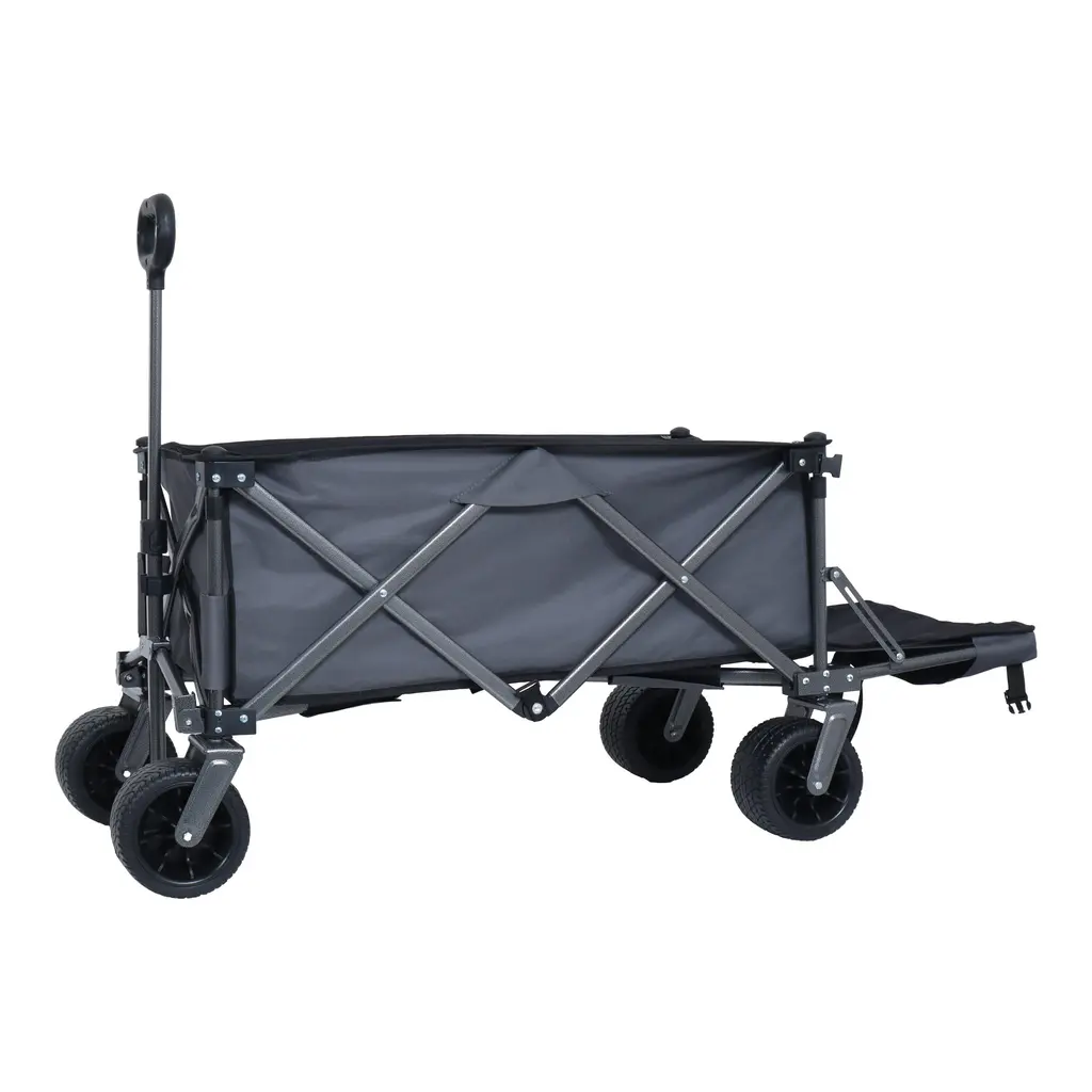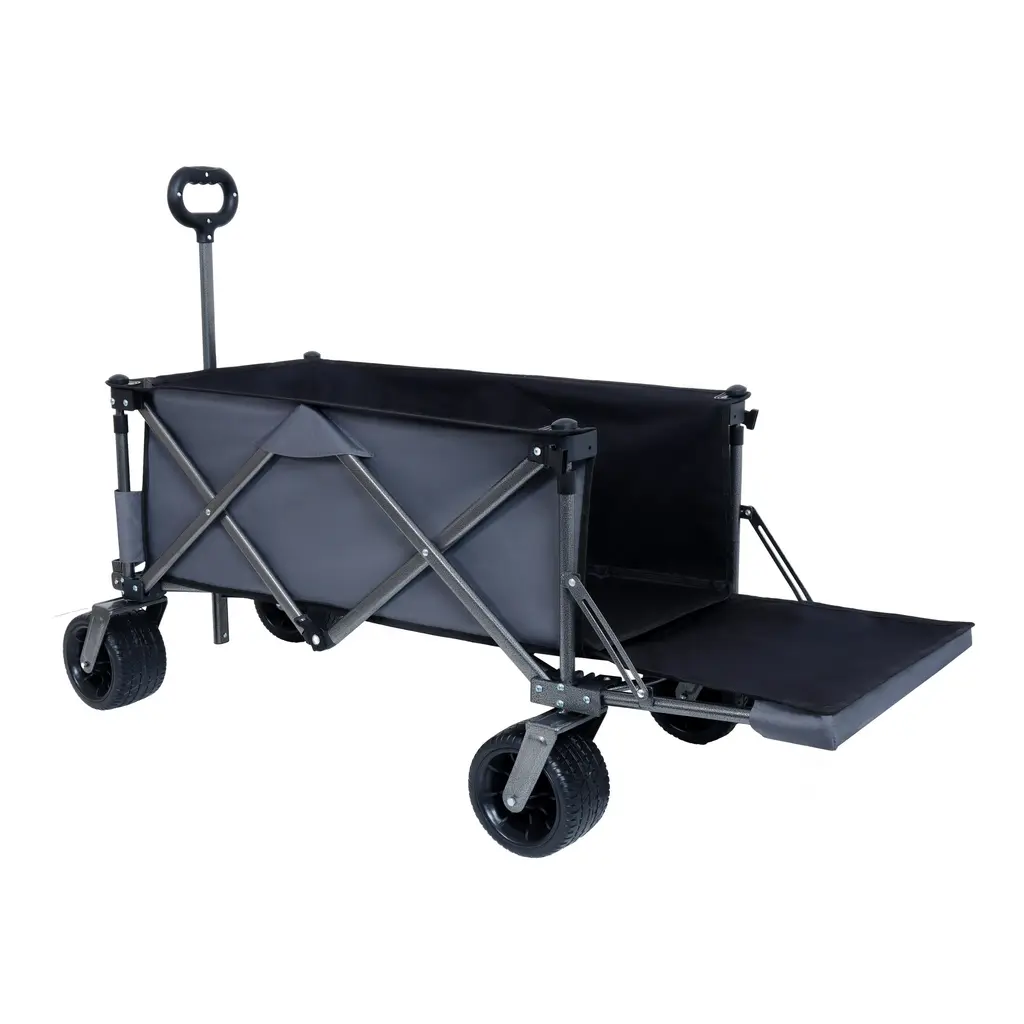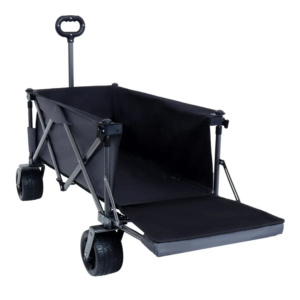 Spacious & Versatile DesignWith a generous 300L capacity and an extended length of up to 49 inches, this collapsible wagon cart easily accommodates bulky items—from heavy outdoor gear and camping essentials to household goods and groceries.Its flexible design, including an extra-wide 14-inch extendable tailgate, adapts effortlessly to your various transportation needs.