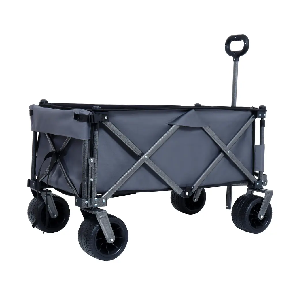 Collapsible Folding Wagon 300l,49" Extra Long Collapsible Wagon, All-Terrain Wheels,beach Wagon Cart Heavy Duty 400lbs Foldable - Black